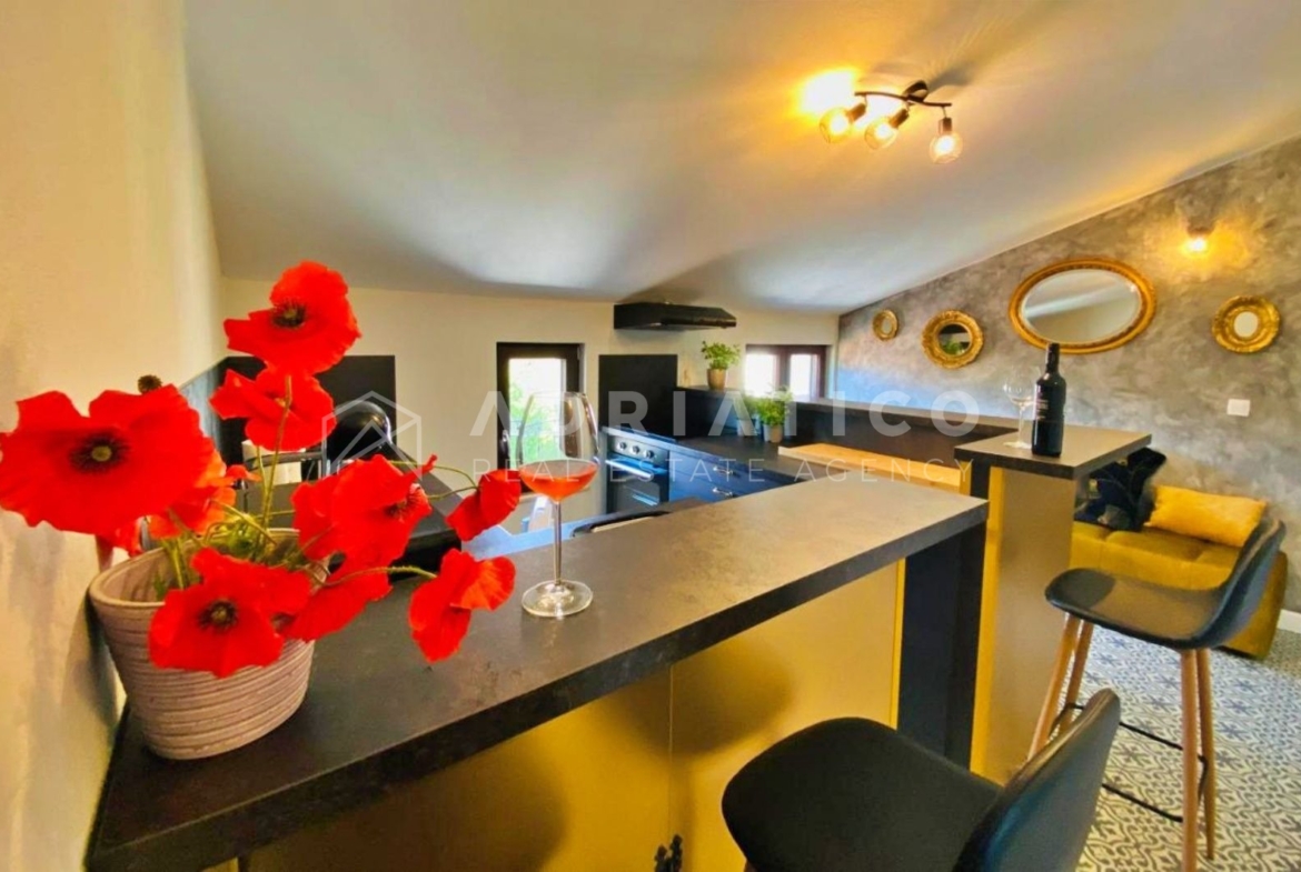 Diese neu renovierte und moderne Dreizimmerwohnung mit 75 m² befindet sich im zweiten Stock des Hauses.