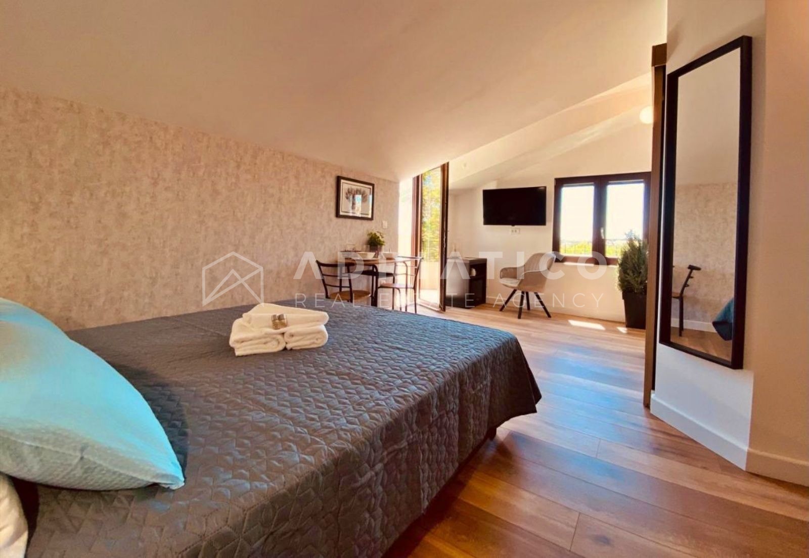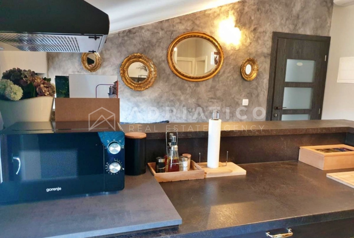 Die Wohnung wird komplett möbliert, mit sorgfältig ausgewählten Materialien und einer hochwertigen Ausstattung verkauft.