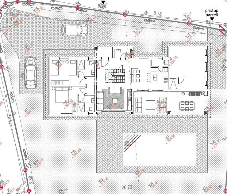 Diese moderne Villa steht auf einem Grundstück von 718 m² und hat eine Gesamtwohnfläche von 188 m², aufgeteilt in Erdgeschoss und erste Etage.