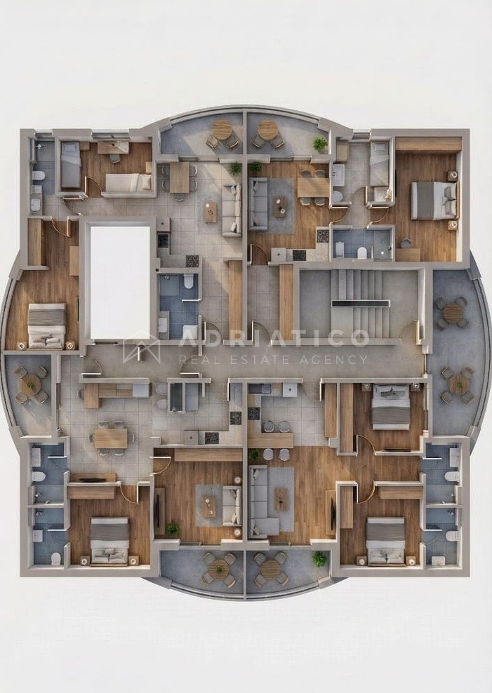 Die Wohnung befindet sich im zweiten Stock eines Wohn- und Geschäftsgebäudes und hat eine Fläche von 82,11 m². Sie besteht aus: