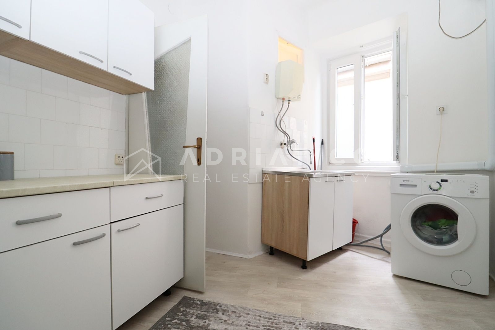 Die Wohnung befindet sich im ersten Stock des Gebäudes, der über eine hübsche Holztreppe mit Podest erreichbar ist, und da sie Fenster nach Nordosten und Südwesten hat, ist sie den ganzen Tag über lichtdurchflutet.