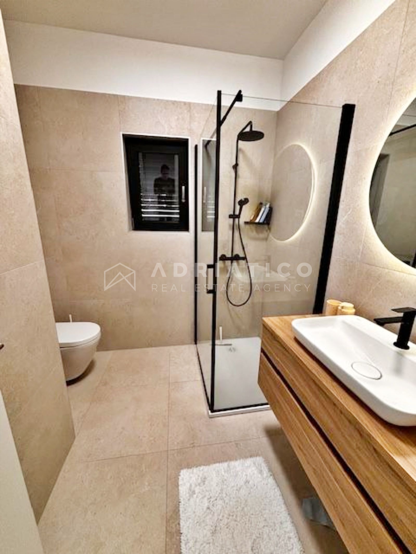 The house is equipped with underfloor heating, two Mitsubishi air conditioners, PVC windows with mosquito nets and aluminum shutters. The interior equipment includes oak wooden floors and Marazzi tiles. The building was built using high-quality materials and designed for year-round living.
