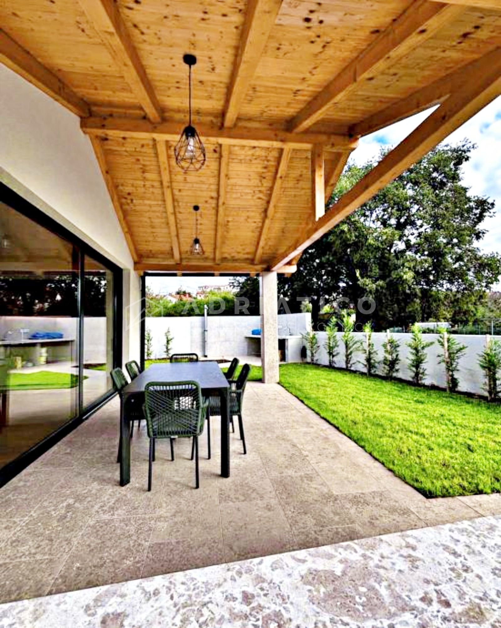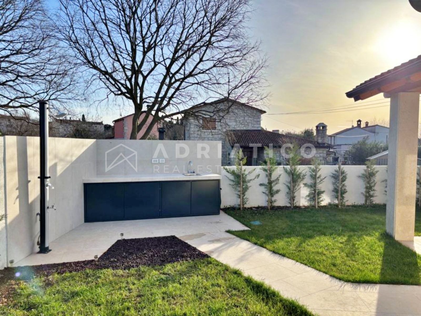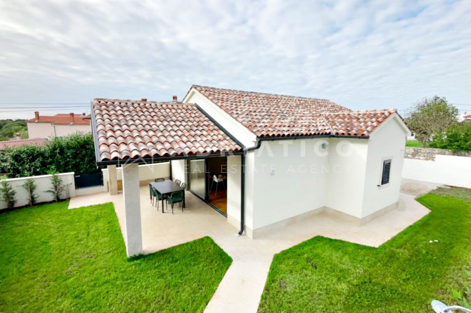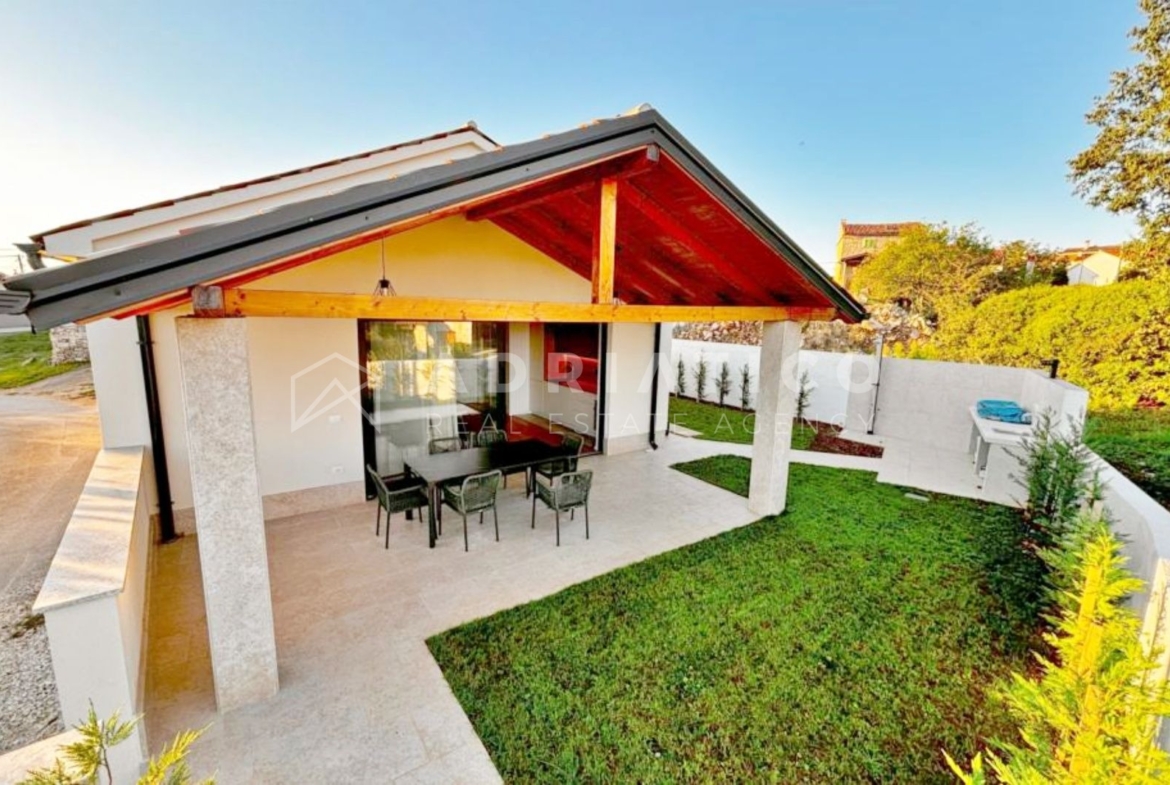 This modern detached house is located in a quiet one-way street in the center of Bale, surrounded by greenery and privacy. The house has 60 m² of living space, 22 m² of covered terrace and a 130 m² garden, ideal for easy maintenance.