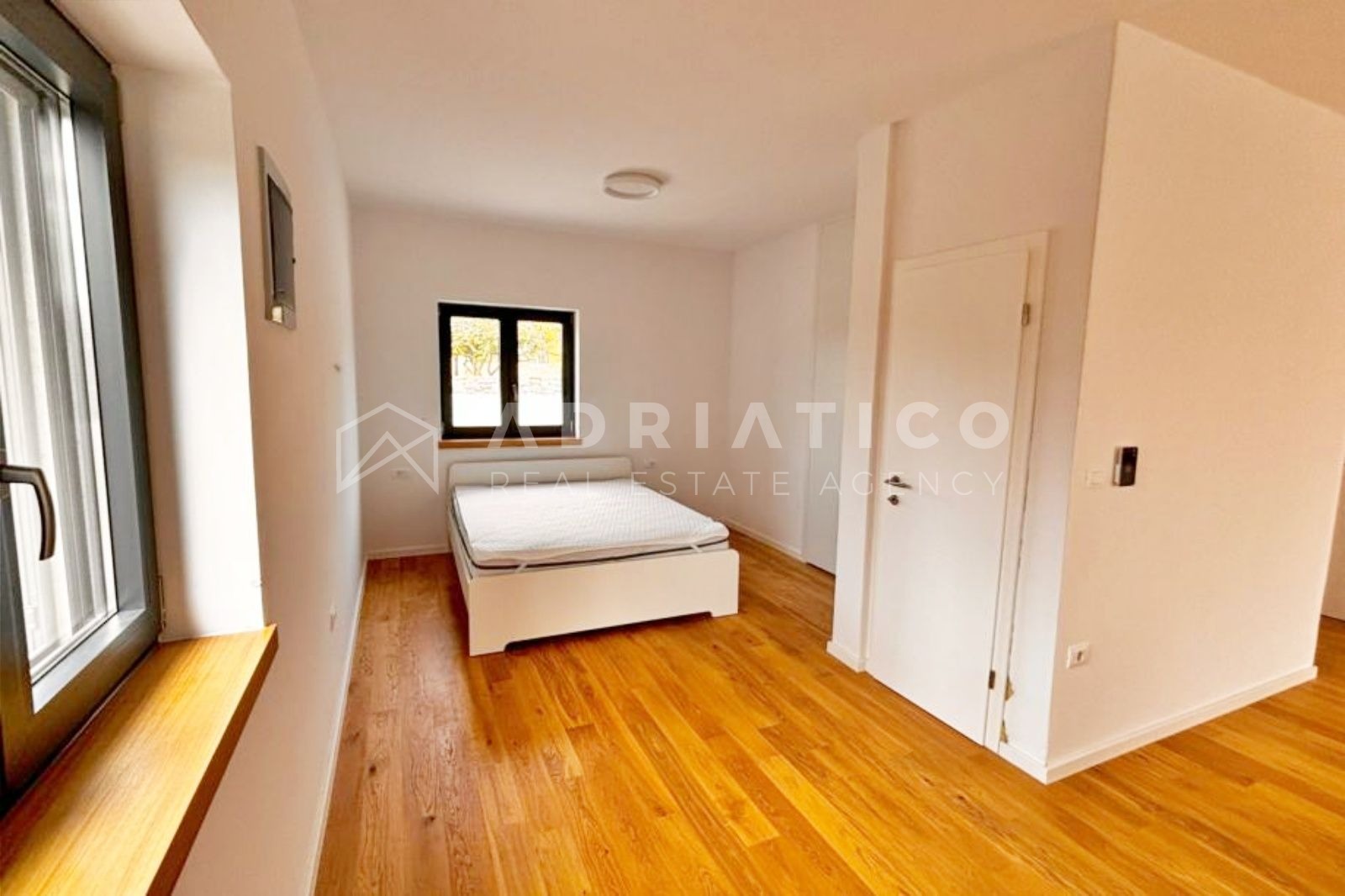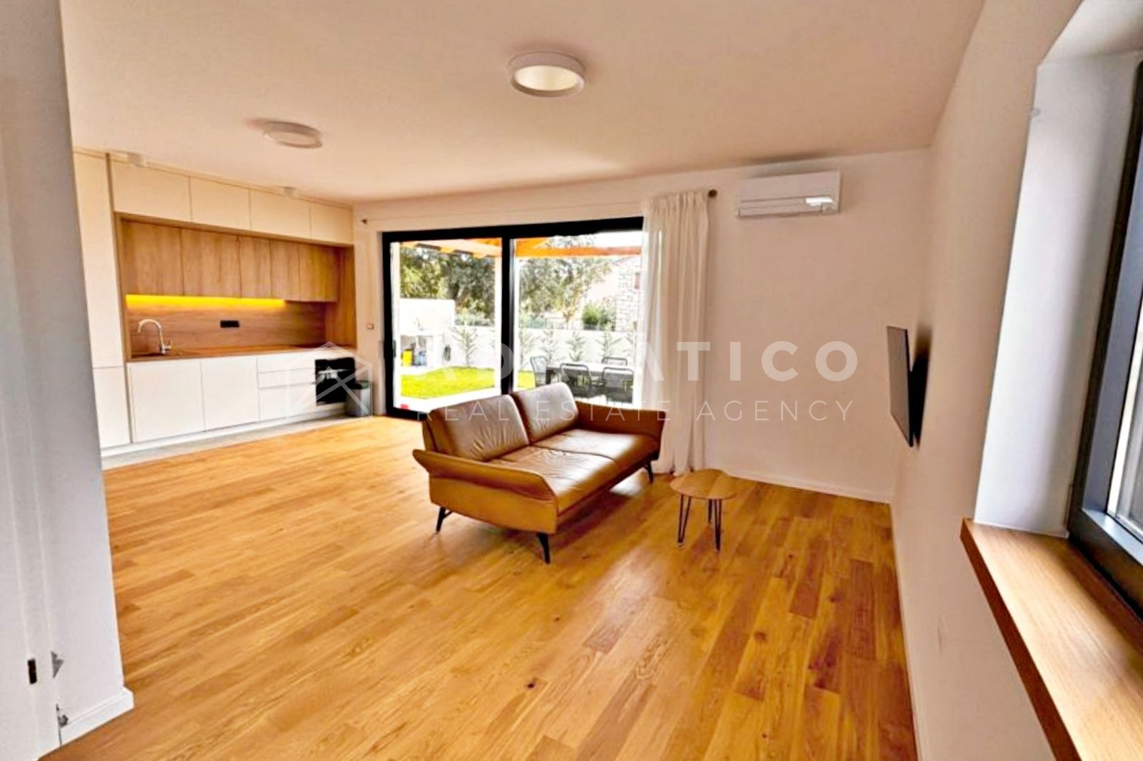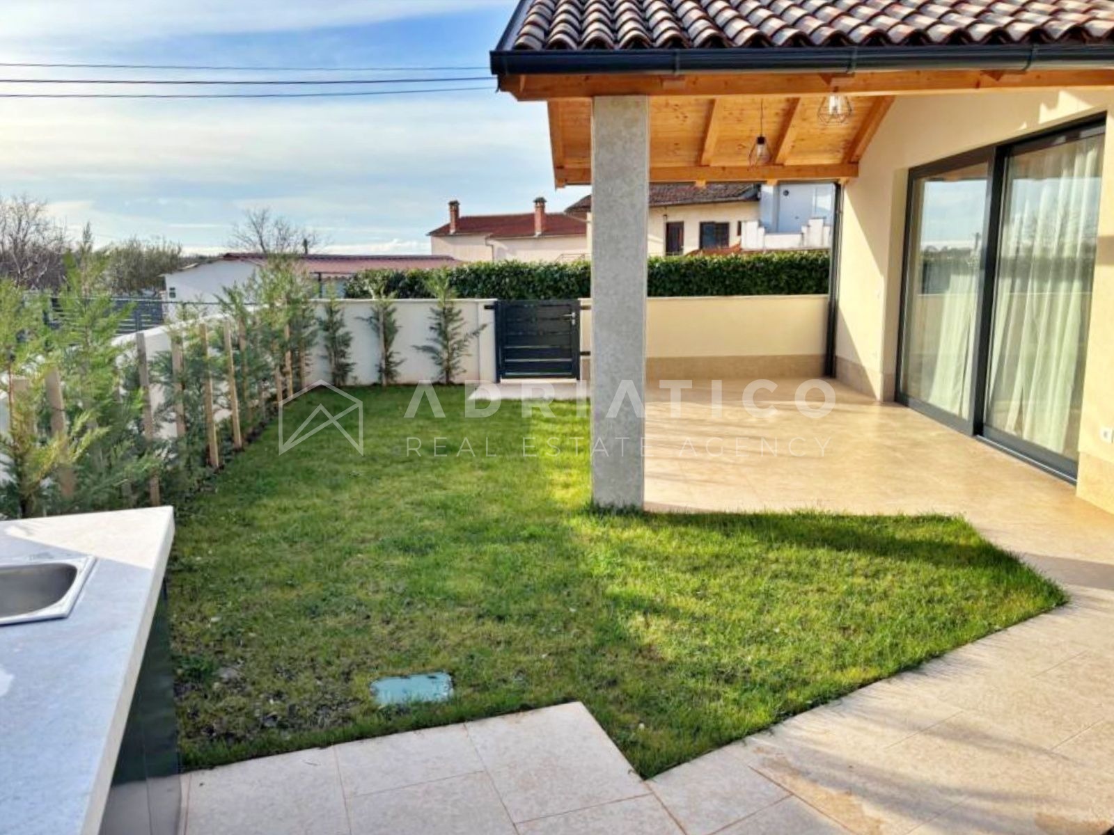 This modern detached house is located in a quiet one-way street in the center of Bale, surrounded by greenery and privacy. The house has 60 m² of living space, 22 m² of covered terrace and a 130 m² garden, ideal for easy maintenance.