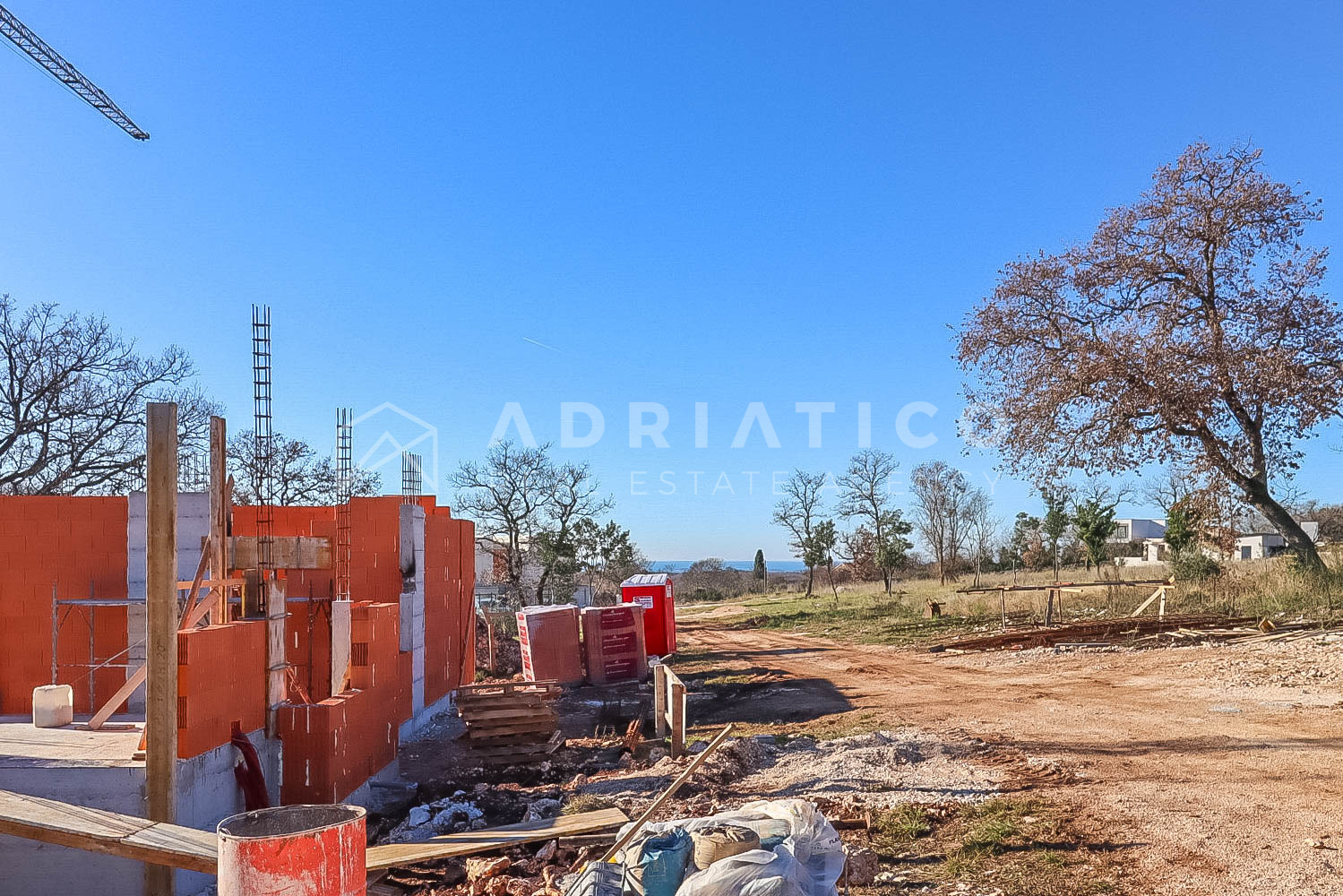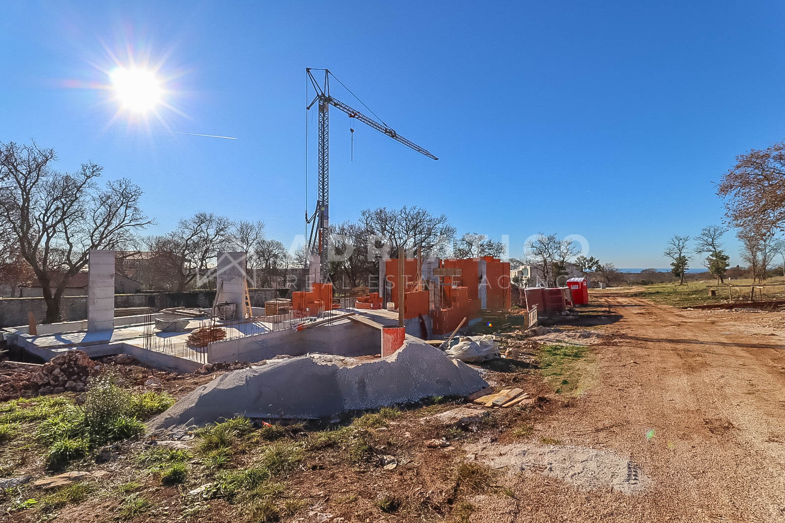 In the peaceful Istrian village of Golaš, near Bale, a modern villa under construction is for sale, combining contemporary architecture, natural materials, and complete privacy. The property is located in an exceptional position with panoramic sea views and unspoiled nature, making it ideal for comfortable living or a high-quality real estate investment.