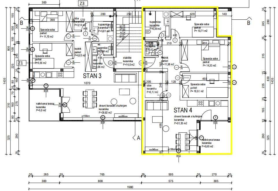 Kanfanar, first floor apartment with 3 bedrooms, under construction