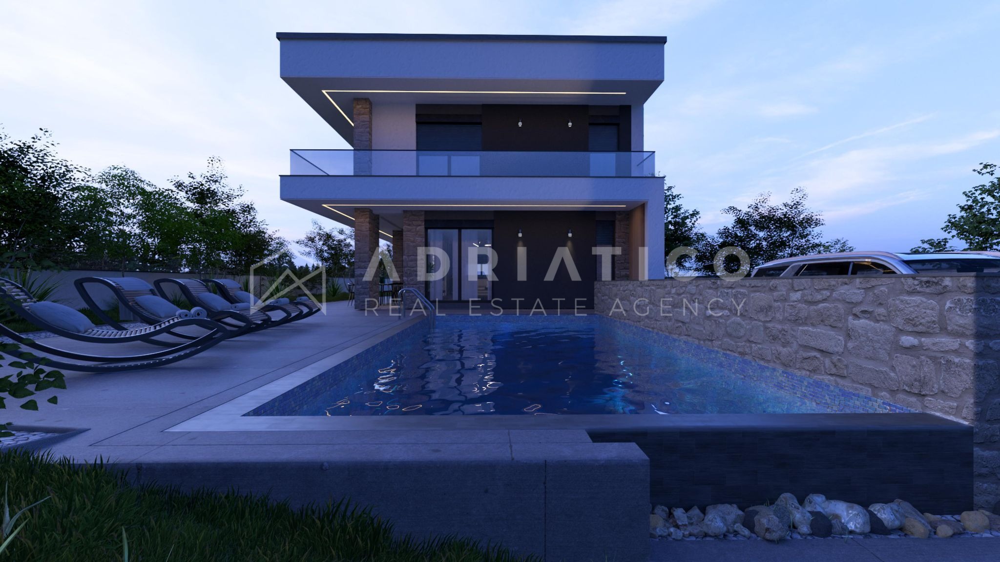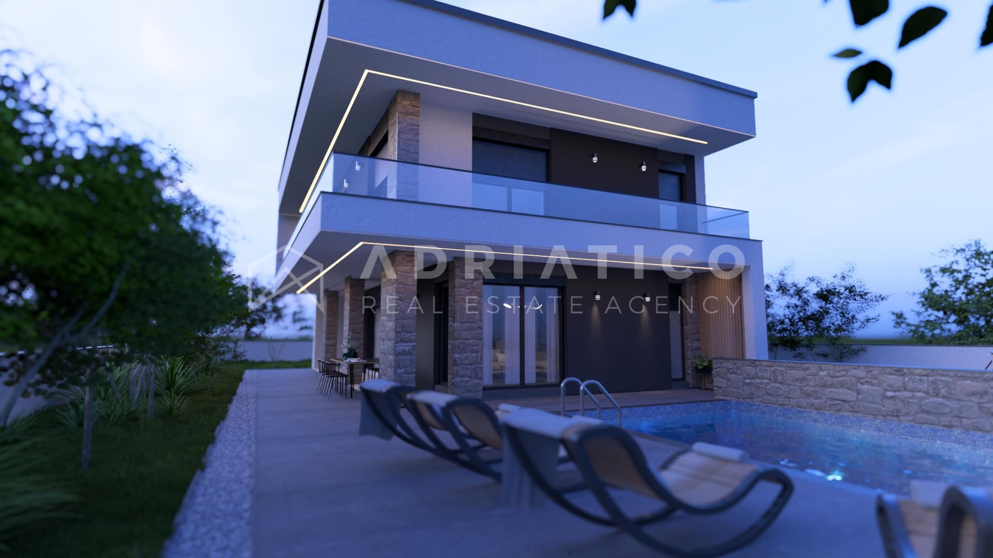 For sale is an exceptional house under construction, located in a quiet location in Kanfanar. This property covers a net area of 182 m² and offers the perfect blend of modern design, comfort and privacy. With large glass walls and a panoramic view of nature and the sea, the house provides a perfect environment for family life.