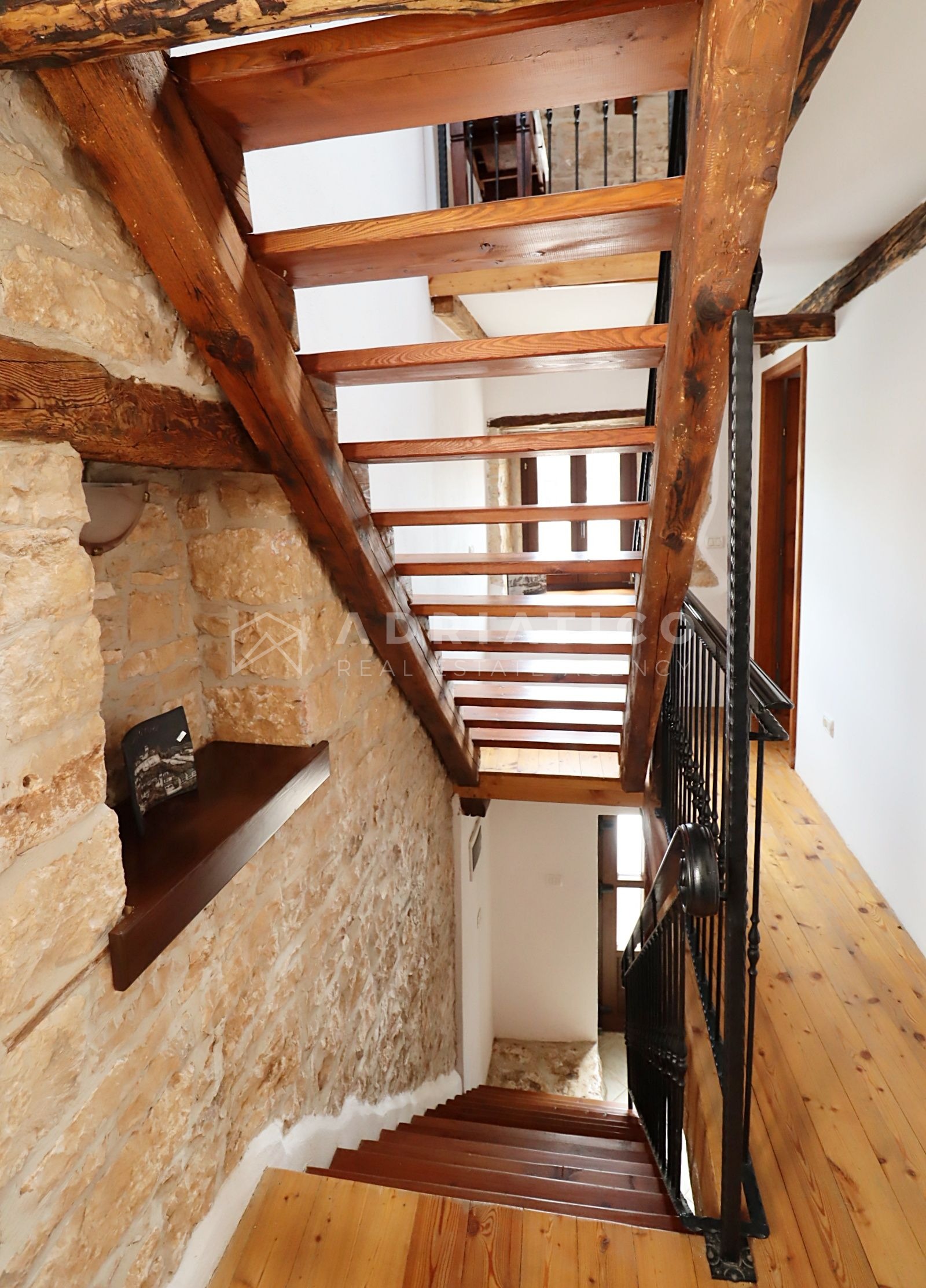 In a peaceful and picturesque village located between Kanfanar and Rovinj, this charming end-terrace stone house is situated. Thoroughly and tastefully renovated in 2020, it spans three floors and combines traditional Istrian charm with modern comfort.