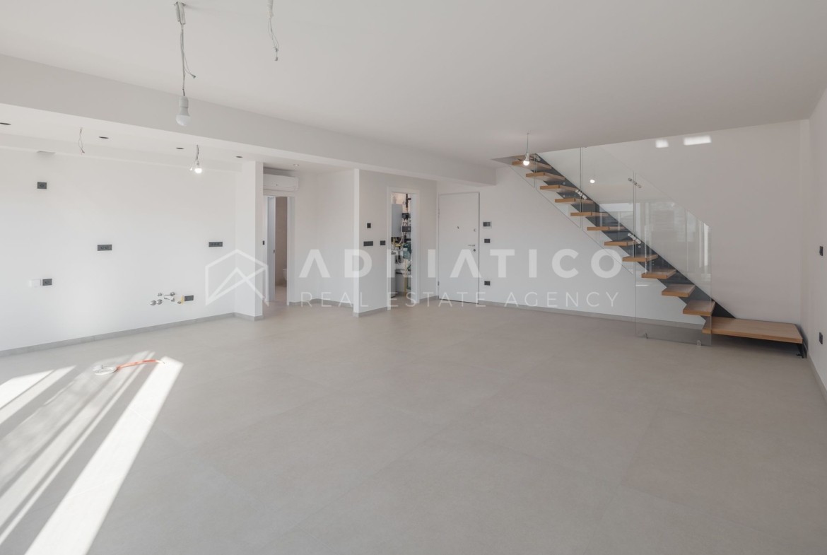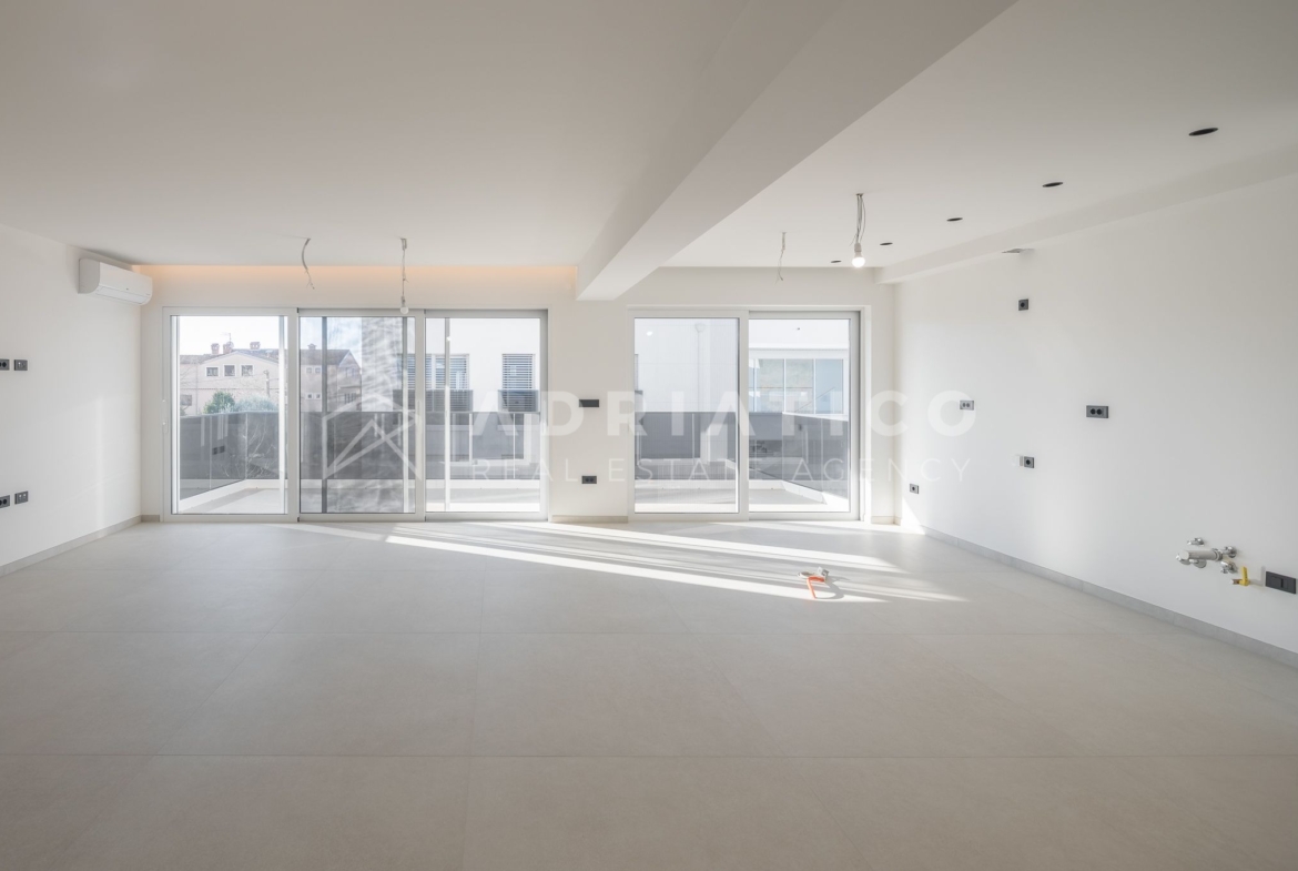 This spacious apartment is located on the 1st floor and attic of a building built to the highest standards and in one of the best locations offered by the Istrian pearl of Rovinj.