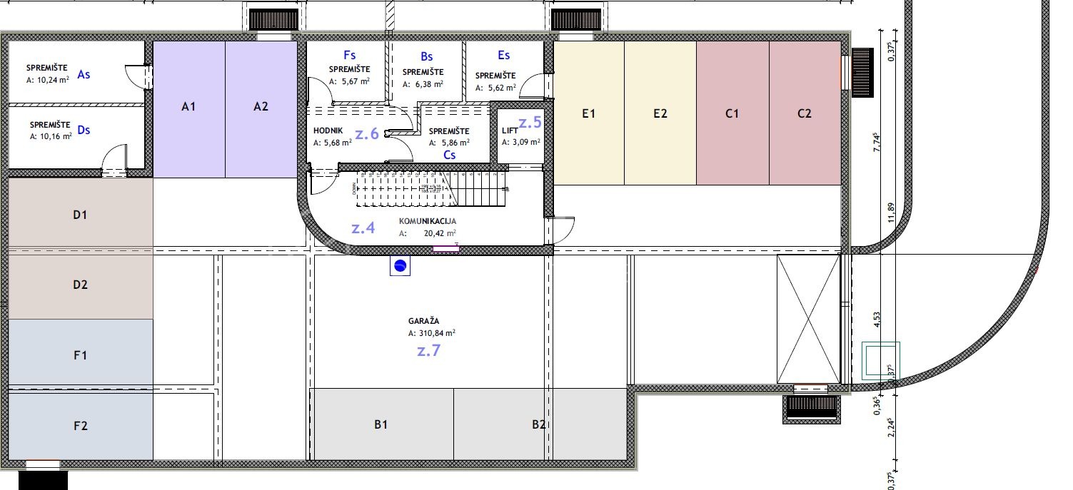 The apartment also includes a storage room and 2 garage spaces located in the basement of the building, from which the apartment can be reached by elevator.