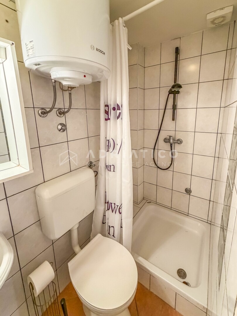 The 9 m² storage room has a private entrance and its own bathroom, making it suitable as a guest room, small studio apartment, or additional storage space.