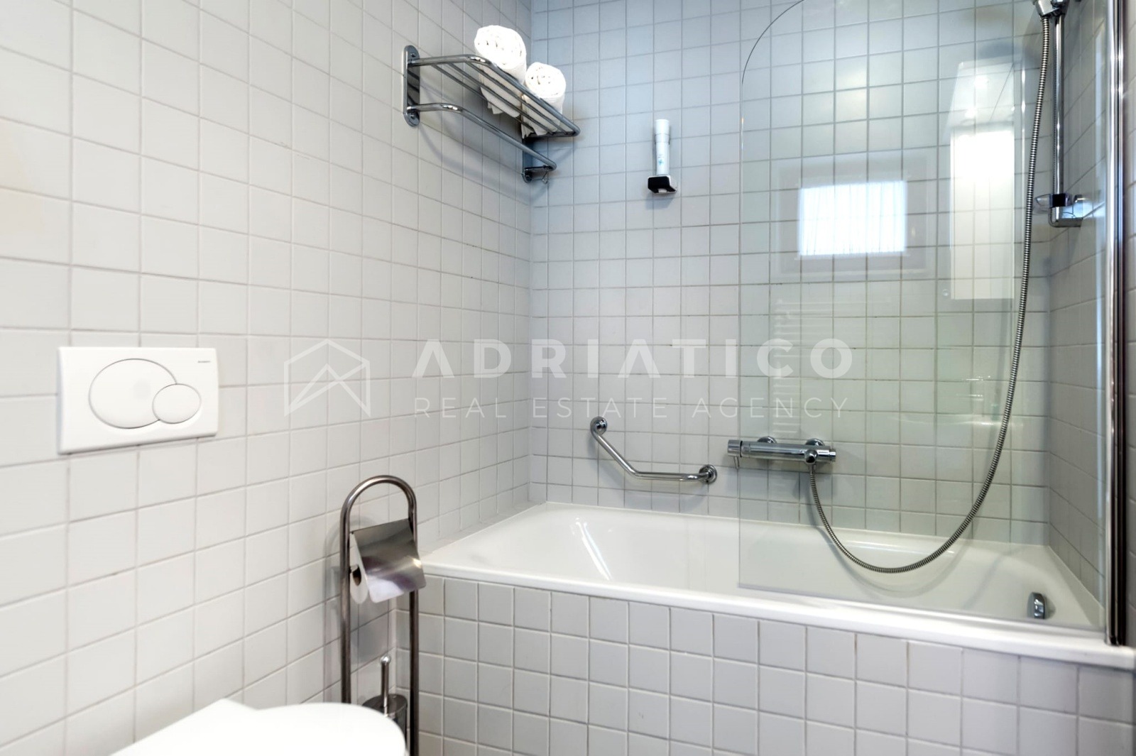 The apartment is fully furnished with high-quality custom-made furniture, while the kitchen is equipped with premium Bosch appliances. Heating and cooling are provided by three air conditioning units, ensuring year-round comfort.