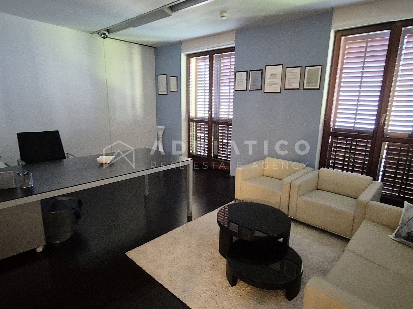 In a high-traffic location in the city center, there are two apartments on the first floor of a residential building, currently configured as a single spacious office space with a total area of 171 m².