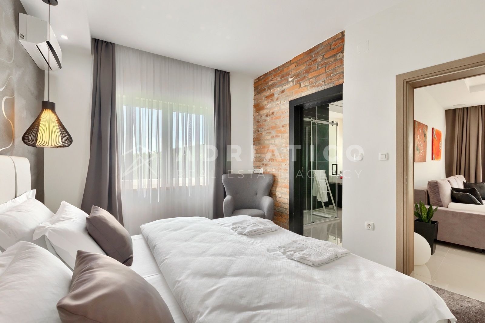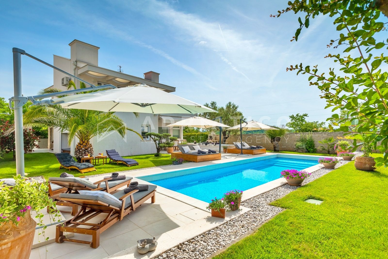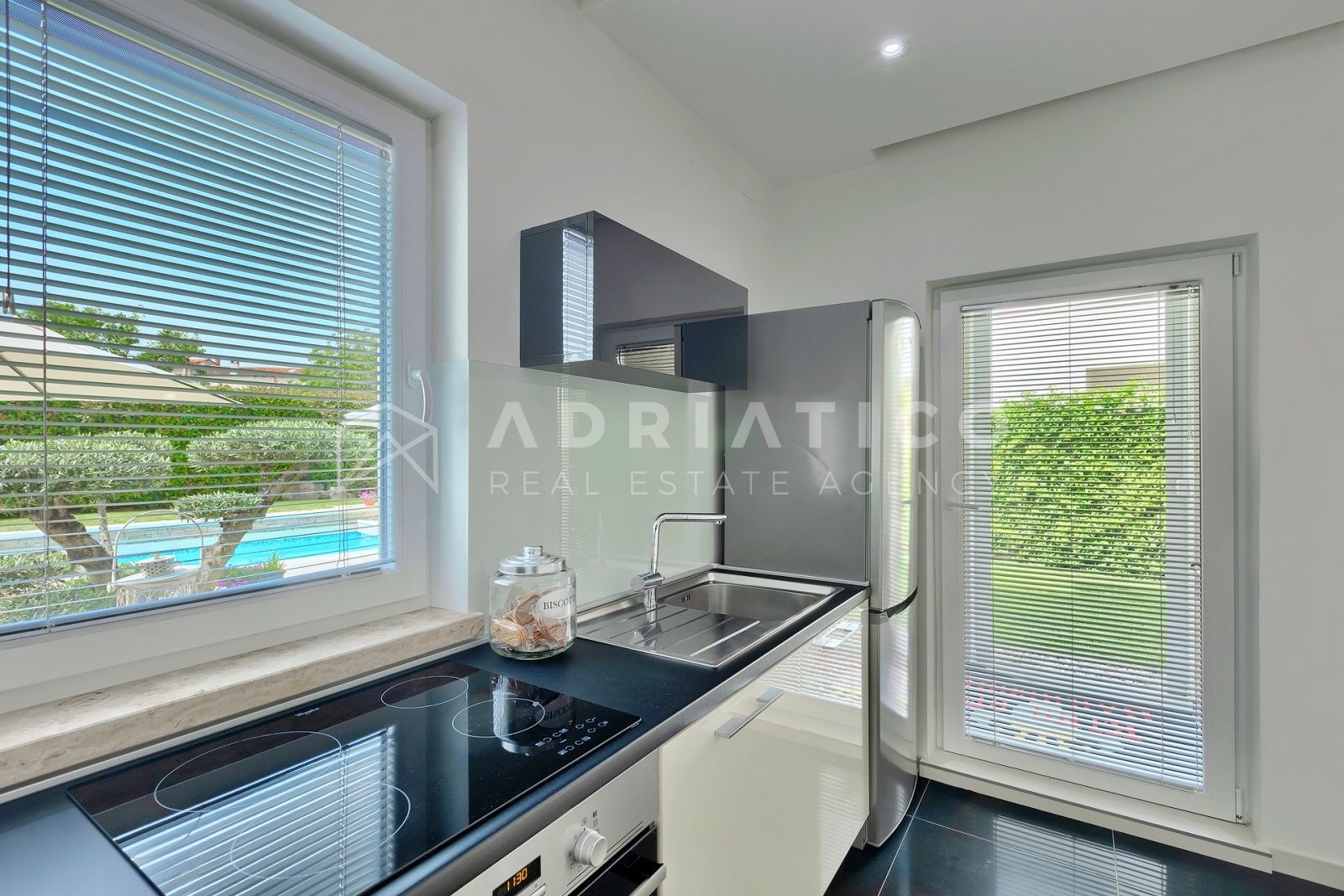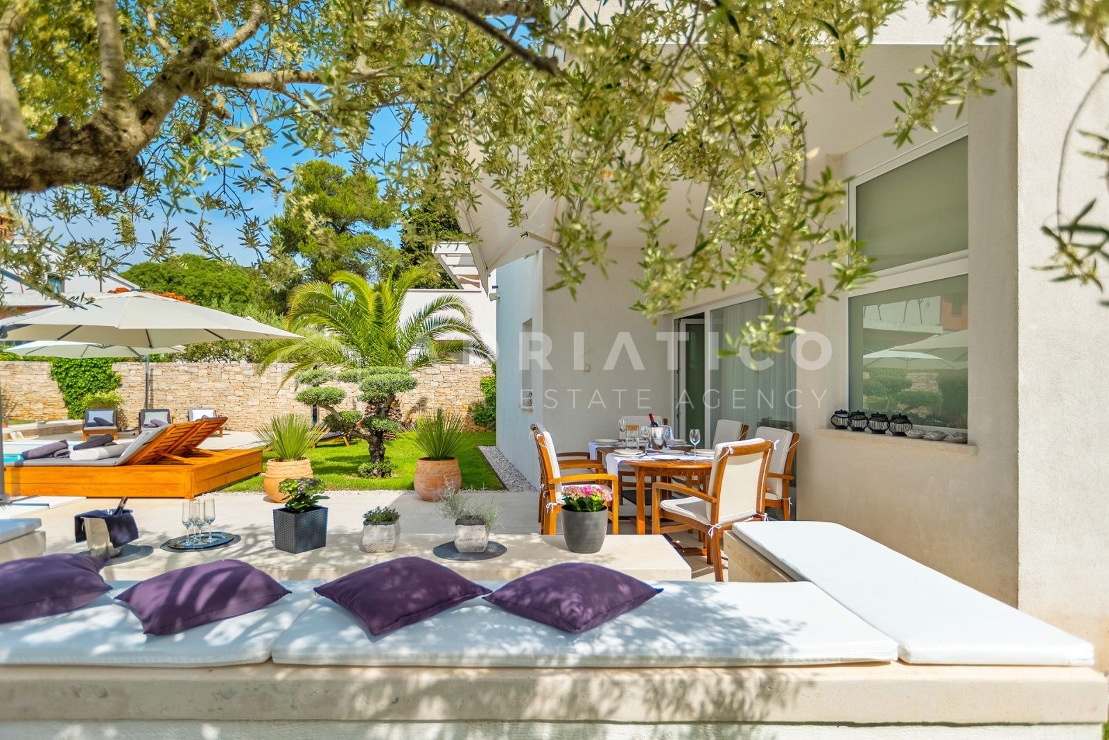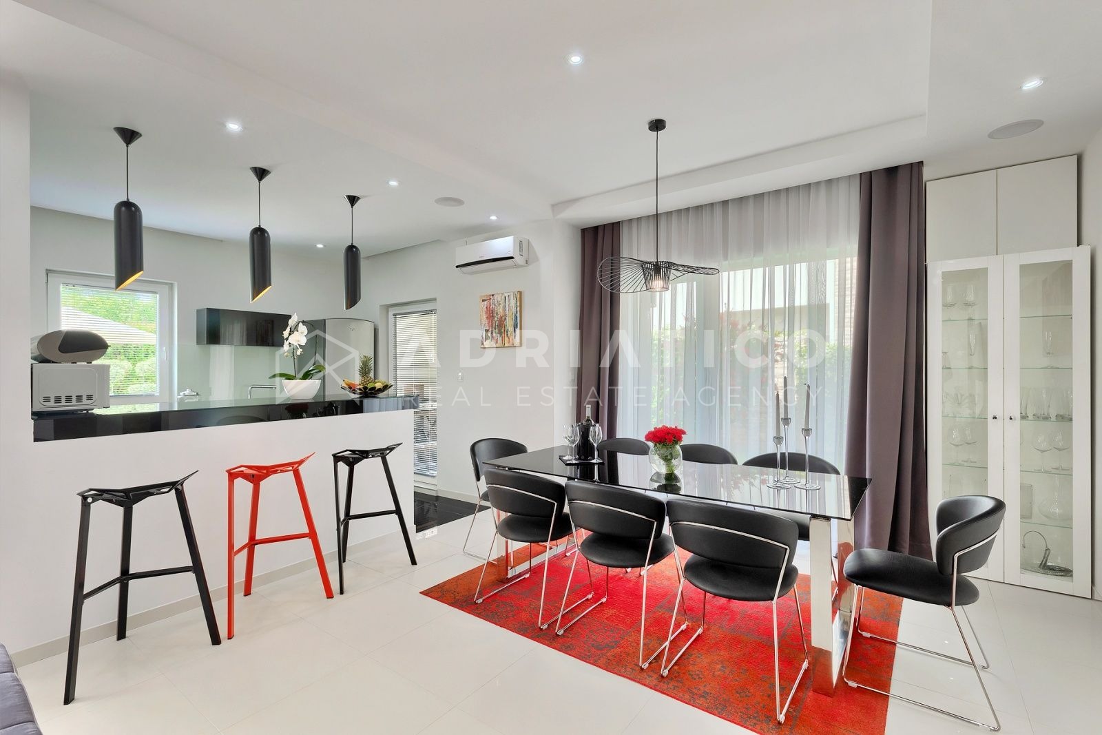 This modern detached house is located in the quiet surroundings of Rovinjski Selo and at the same time close to Rovinj, with quick access to beaches, shops and restaurants.