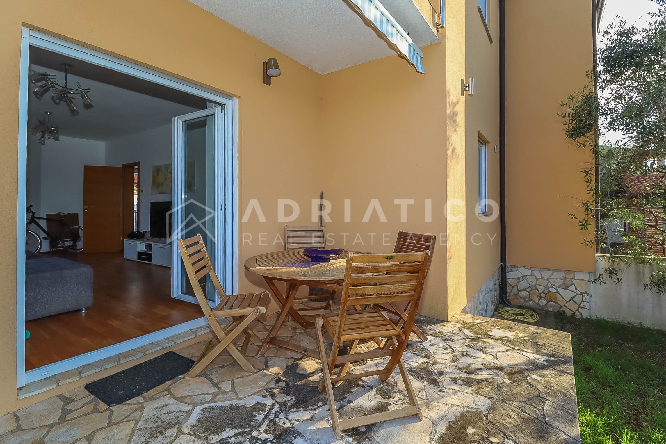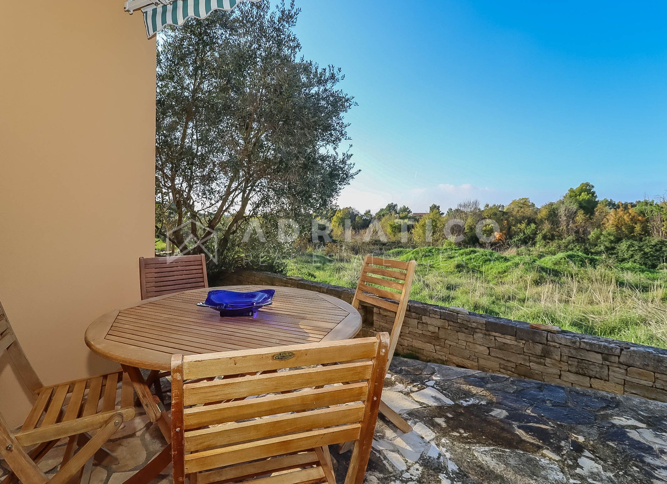 In un tranquillo insediamento vicino a Dignano, si propone una porzione di bifamiliare esposta a nord-ovest con circa 110 m² abitabili e 240 m² di giardino. Il piano terra offre un layout funzionale con ingresso, ripostiglio, bagno e zona living open-space con cucina e sala da pranzo, collegata alla terrazza coperta.