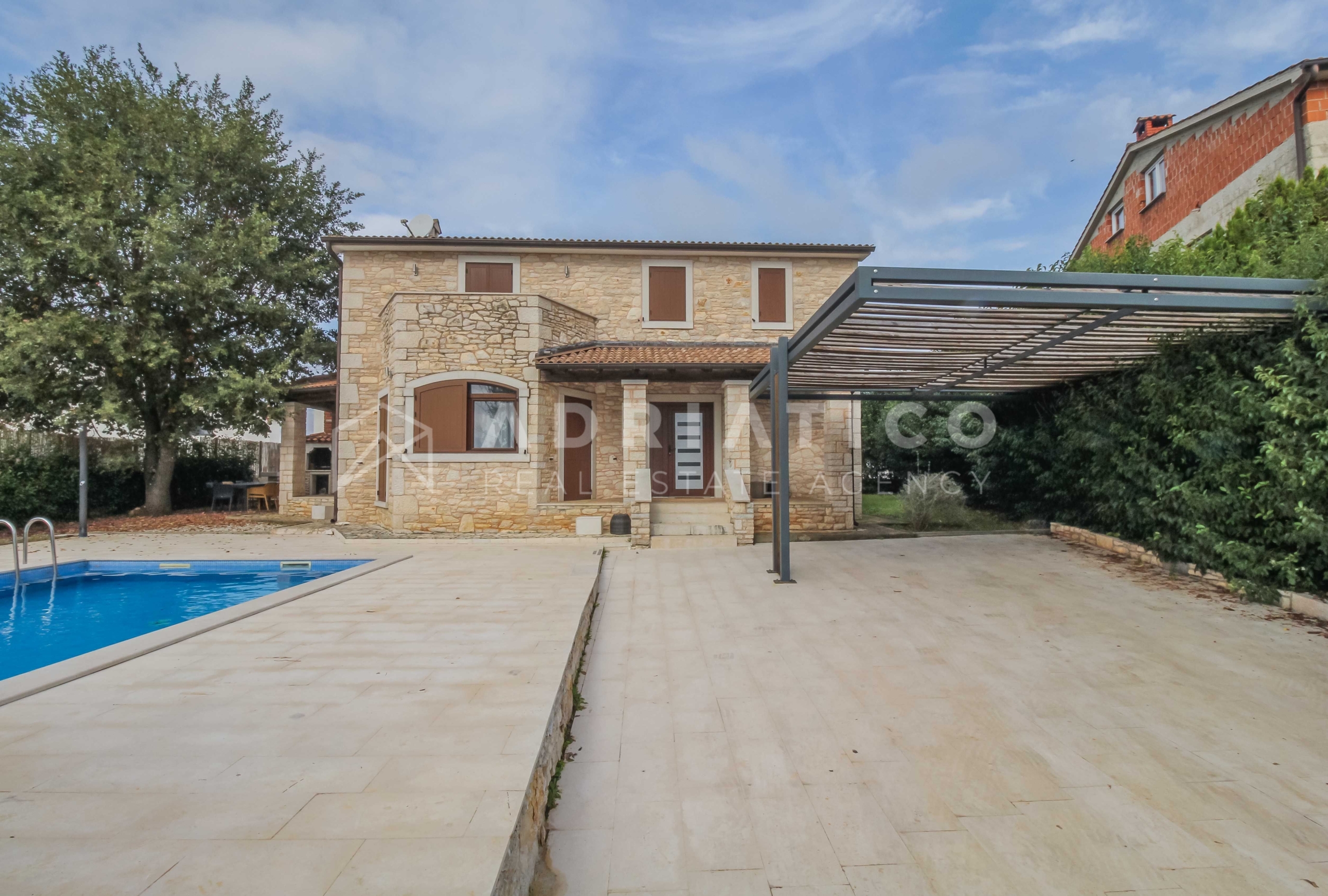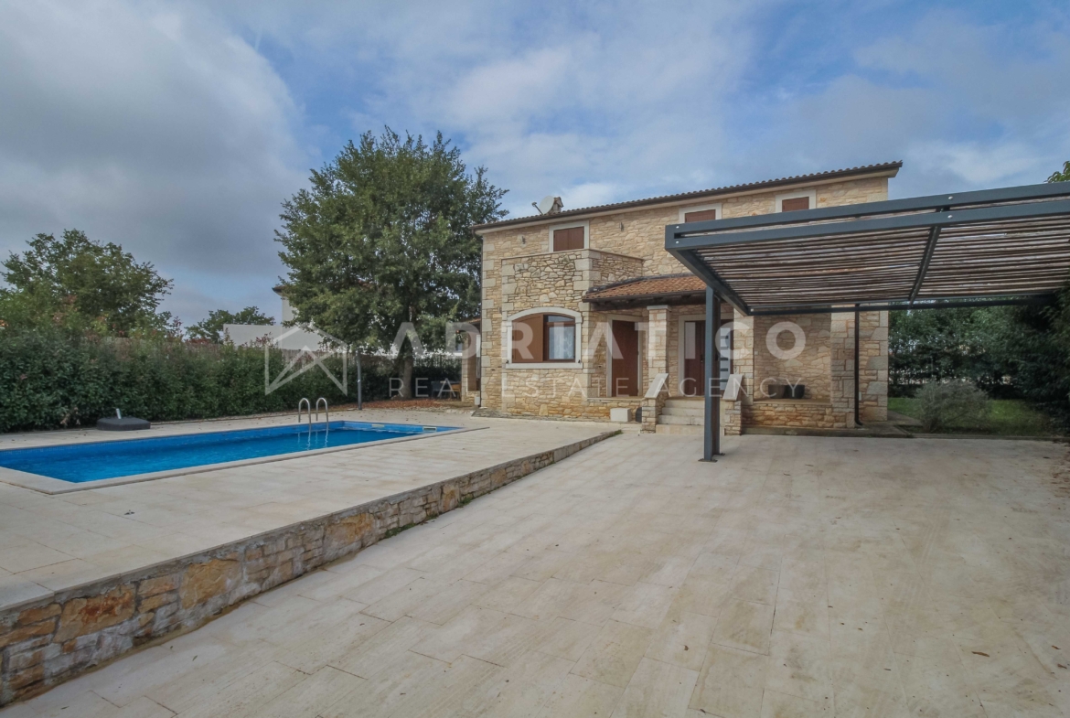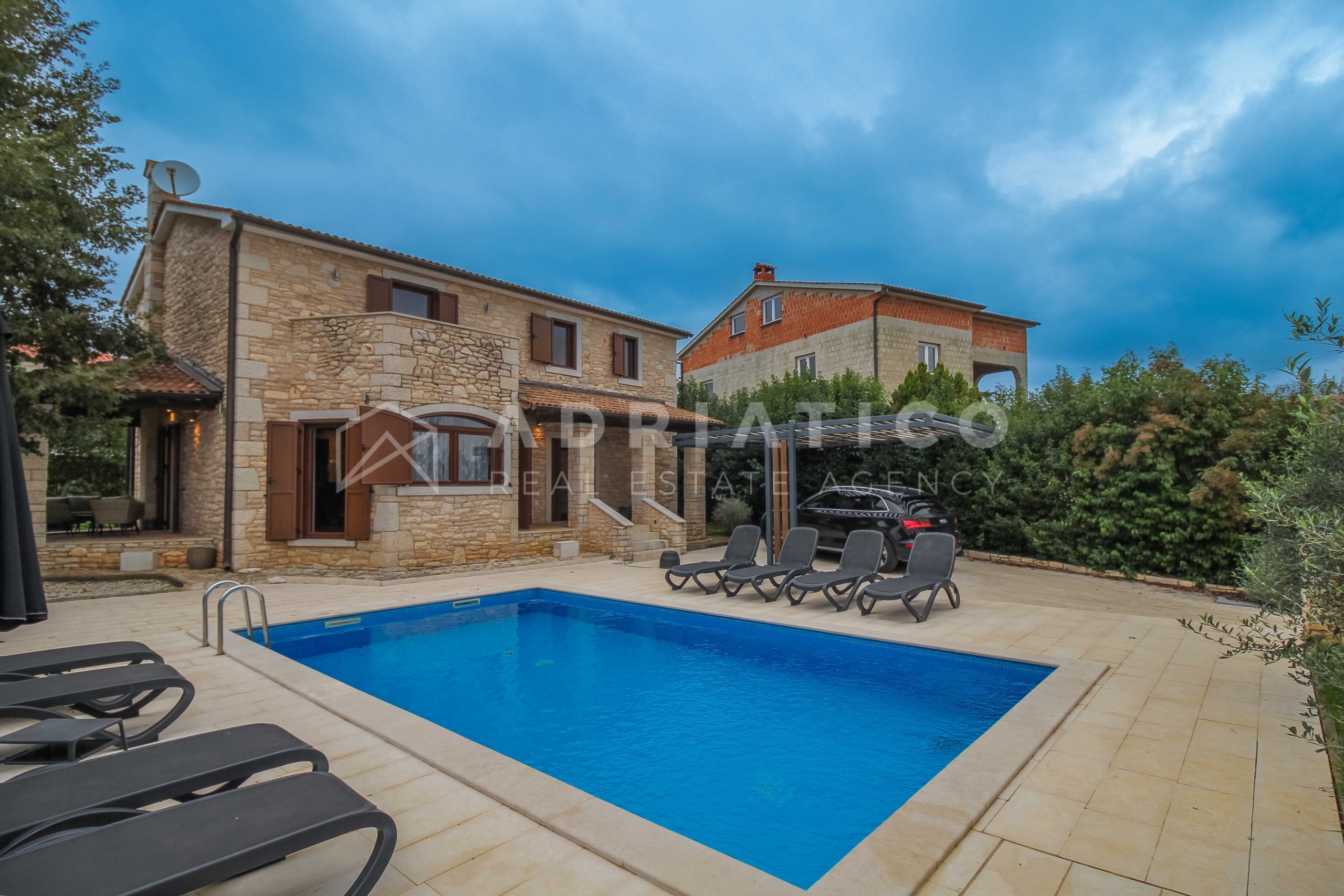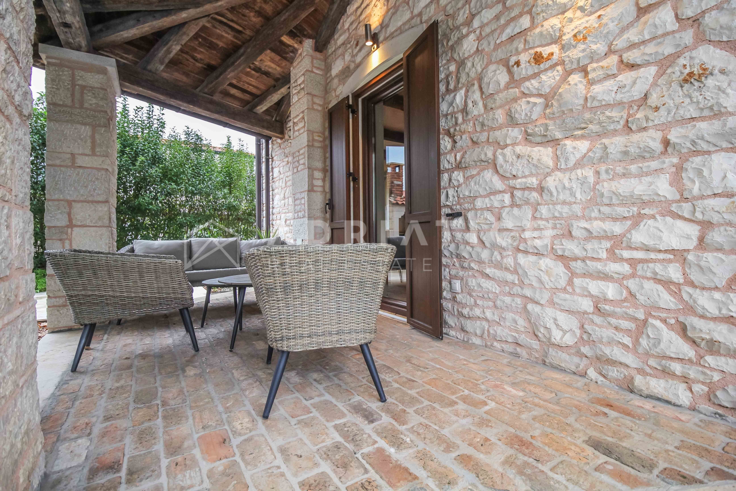 Questa bella casa in pietra con piscina si trova in una posizione tranquilla ai margini di una zona di costruzione, garantendo ulteriore privacy e tranquillità. La casa è completamente recintata e offre uno spazio sicuro per rilassarsi e godersi la vita all’aria aperta.