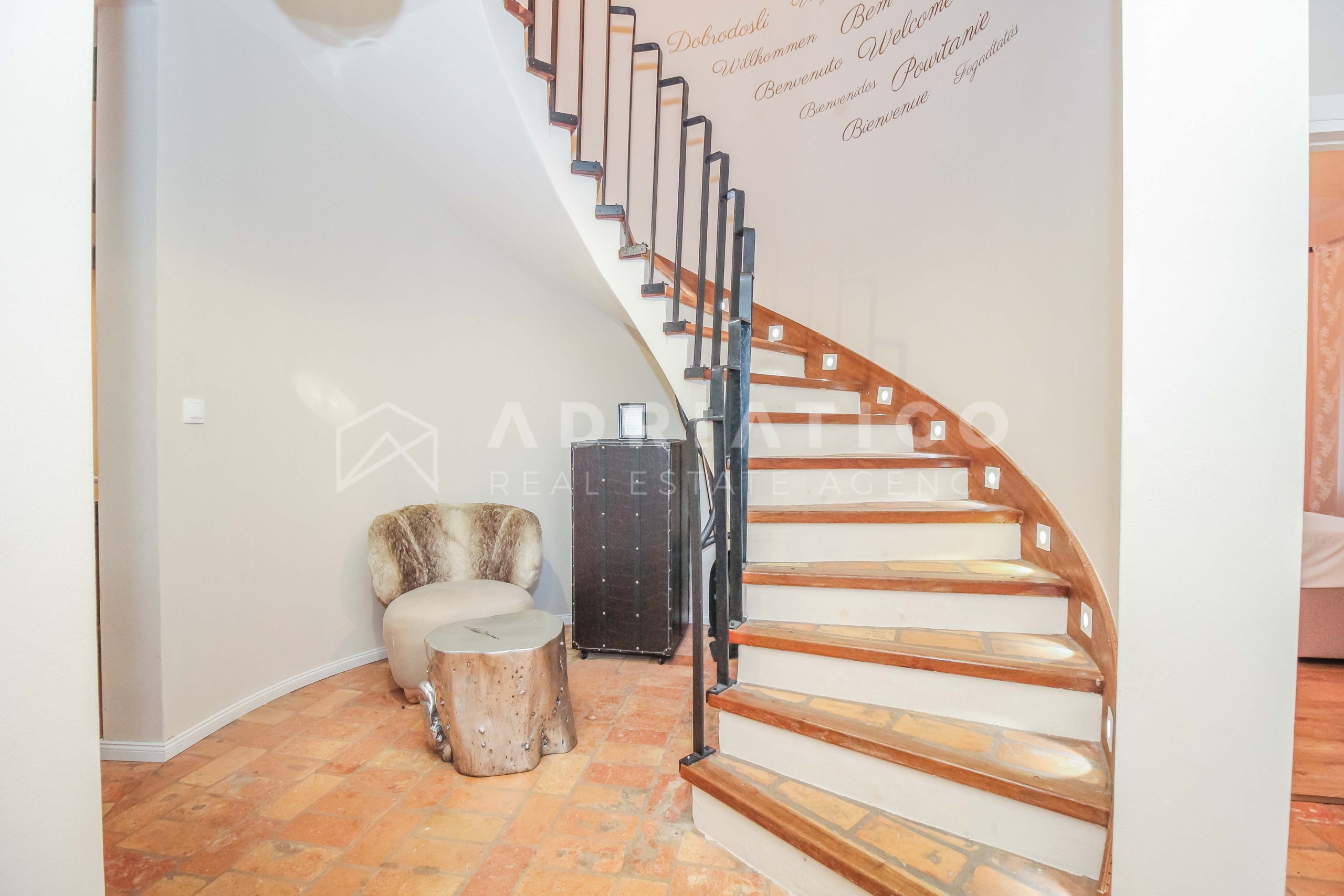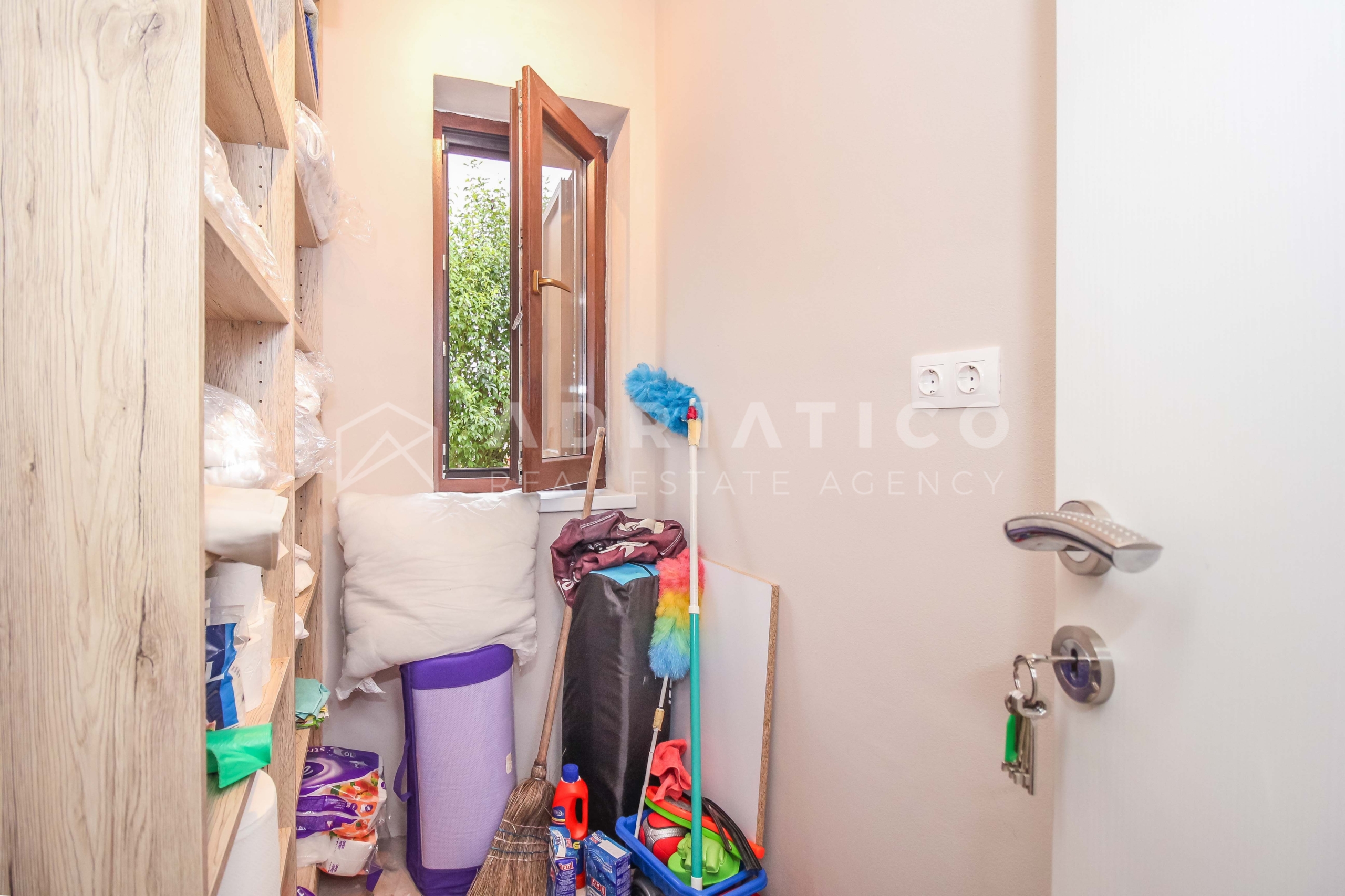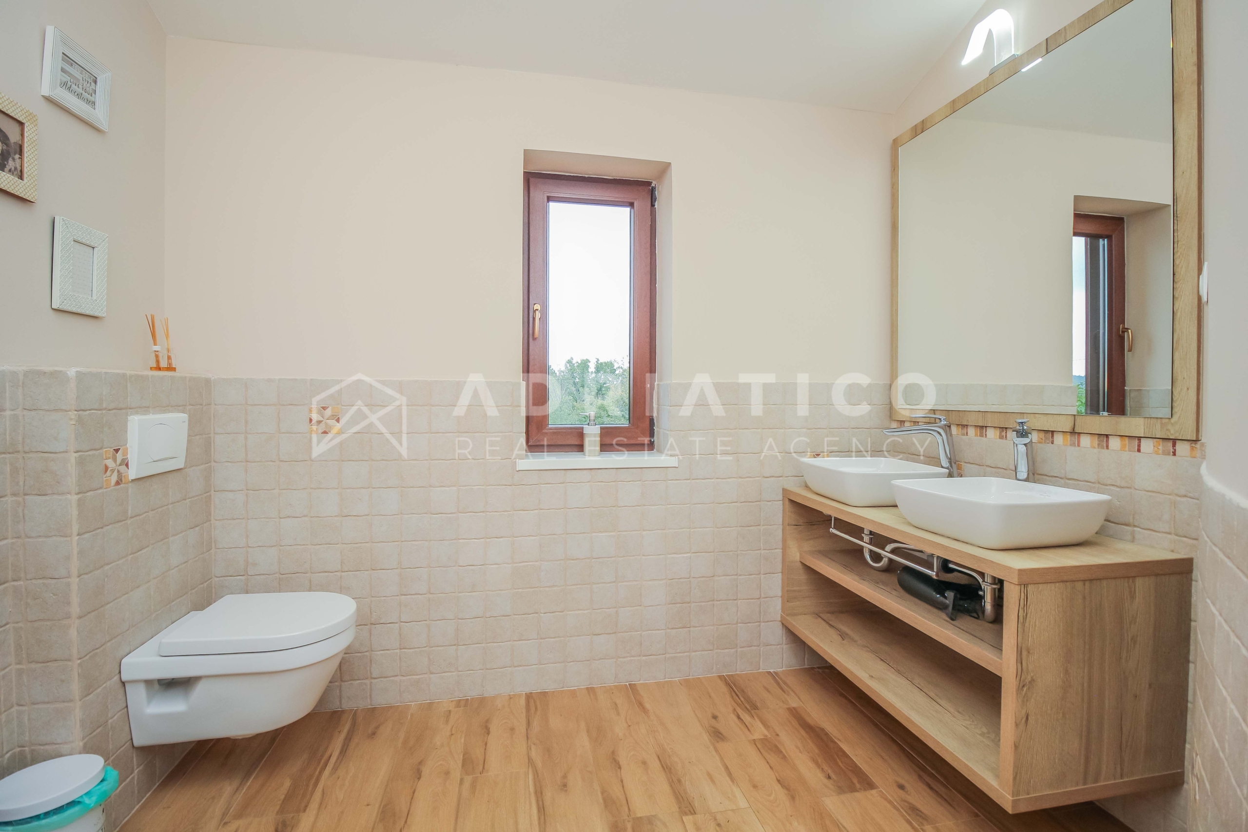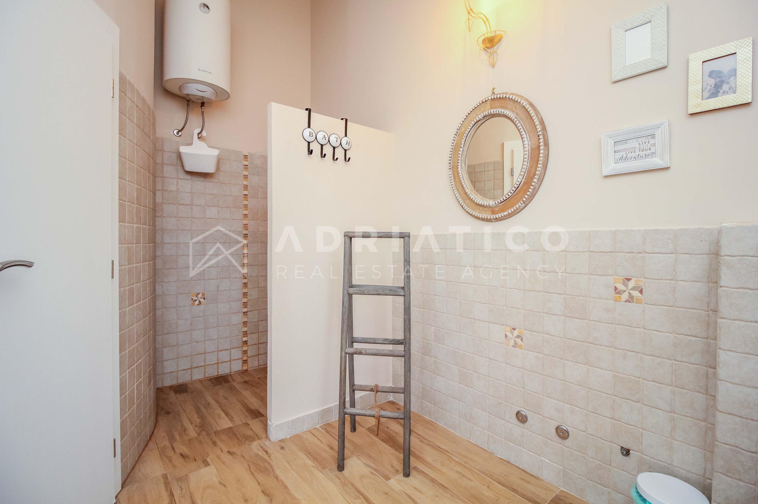 Al piano terra della casa si trovano un ampio soggiorno, una moderna cucina con sala da pranzo, una pratica dispensa, una camera da letto, un bagno e un WC per gli ospiti separato. Al piano superiore ci sono altre tre camere da letto: due condividono un bagno, mentre la terza camera ha il proprio bagno privato, ideale per una famiglia più numerosa o per gli ospiti.