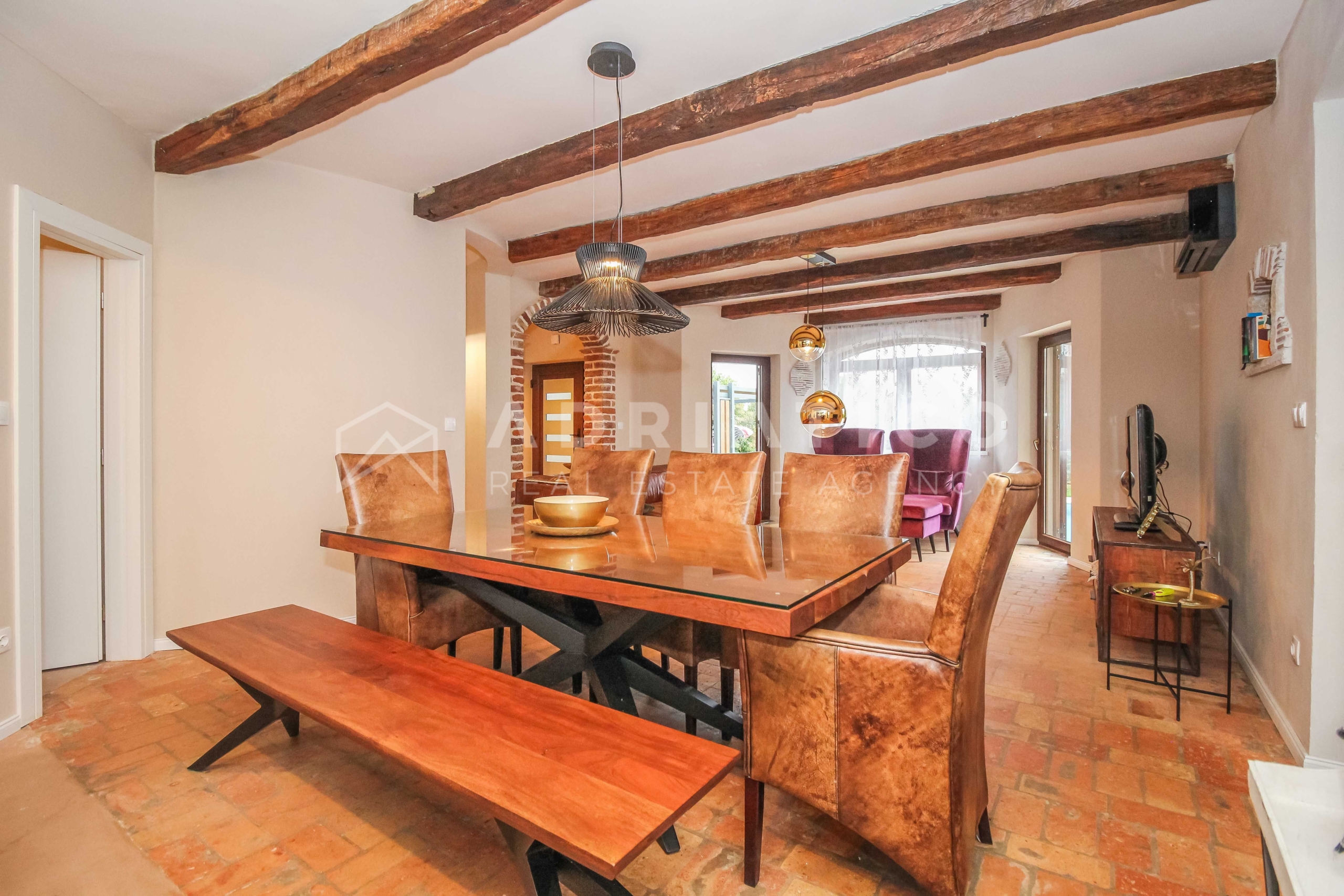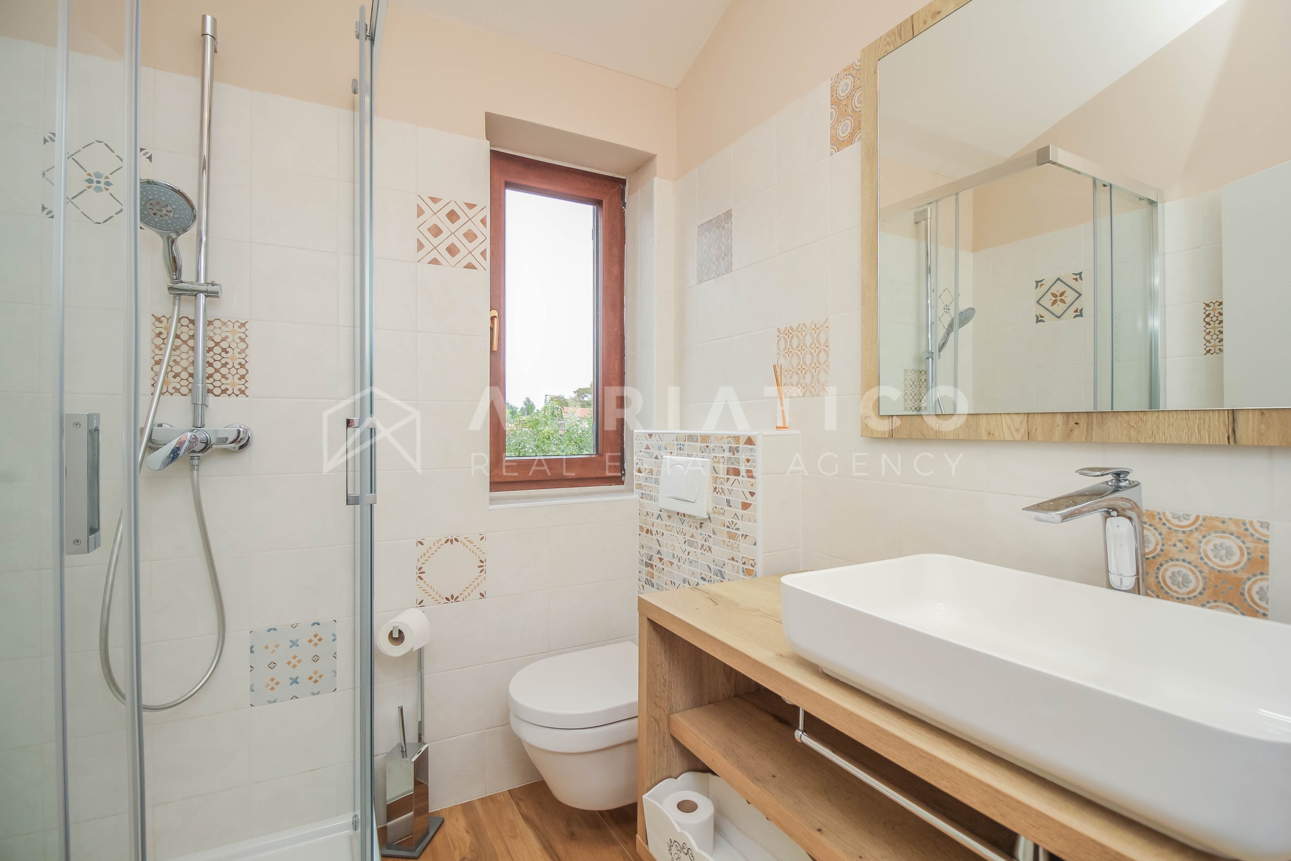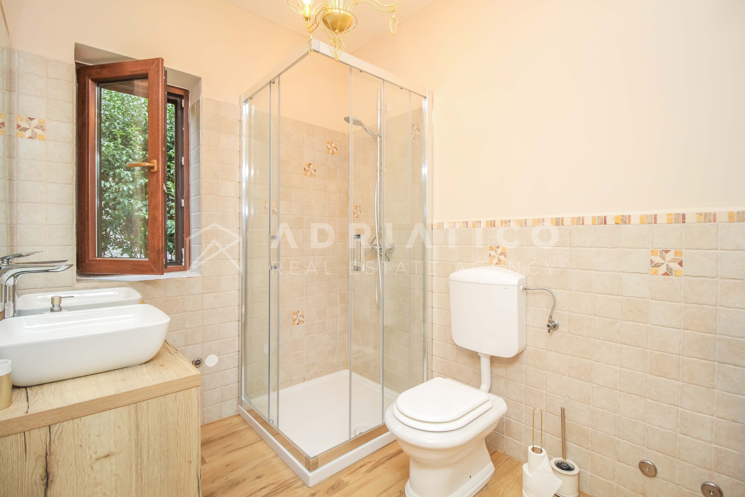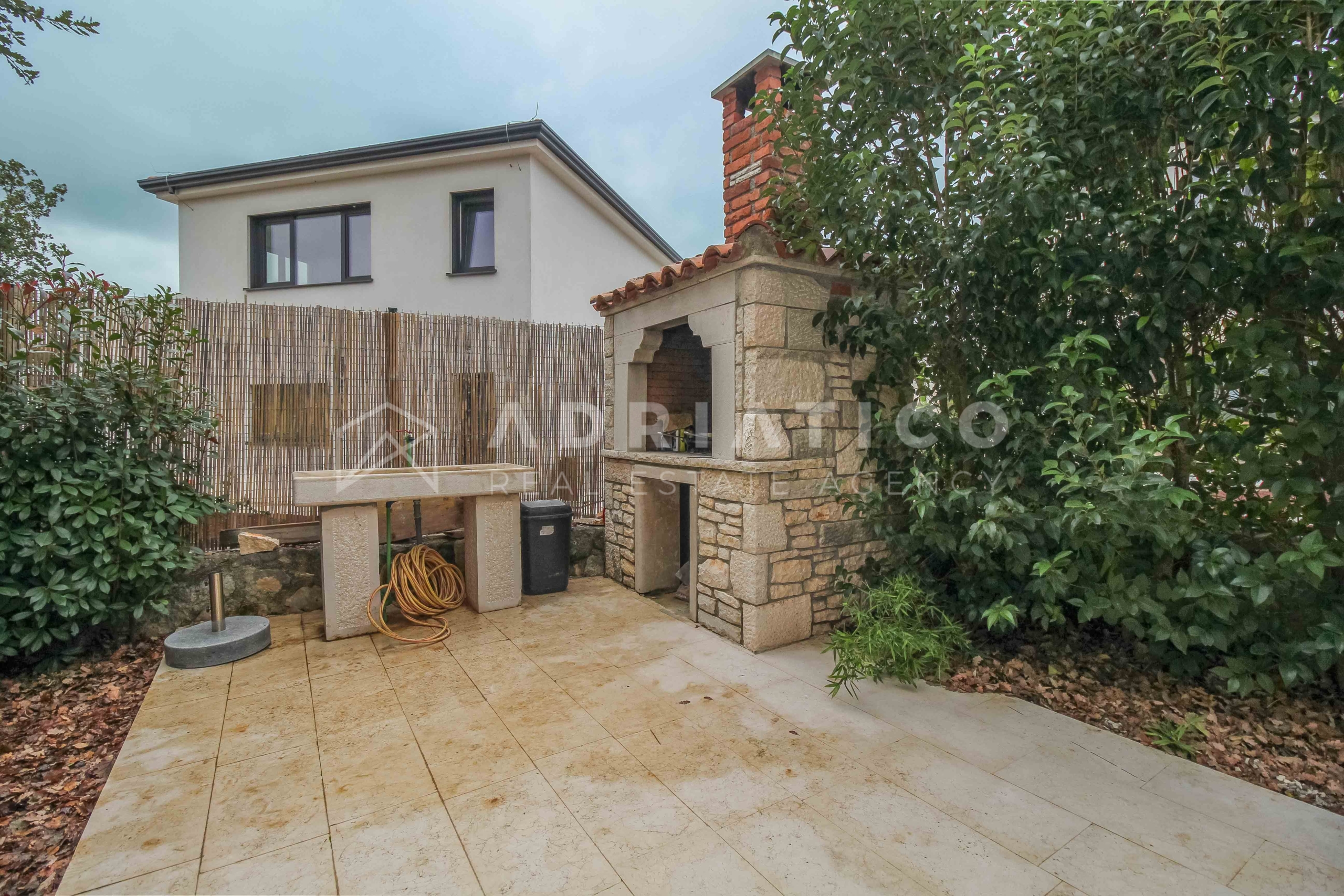 Al piano terra della casa si trovano un ampio soggiorno, una moderna cucina con sala da pranzo, una pratica dispensa, una camera da letto, un bagno e un WC per gli ospiti separato. Al piano superiore ci sono altre tre camere da letto: due condividono un bagno, mentre la terza camera ha il proprio bagno privato, ideale per una famiglia più numerosa o per gli ospiti.