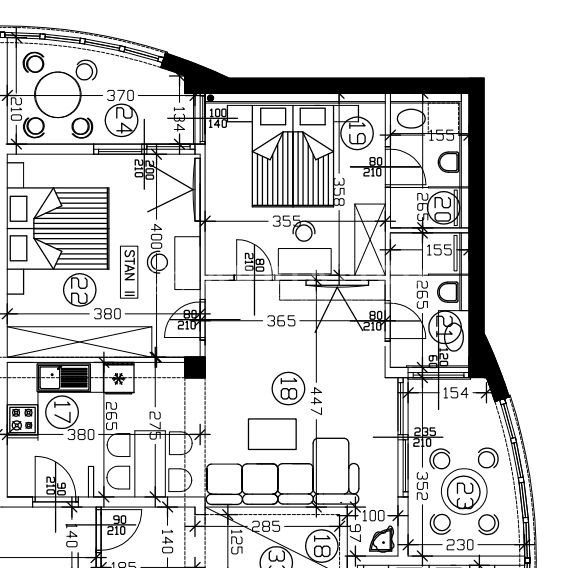 L’appartamento si trova al secondo piano di un edificio residenziale-commerciale, con una superficie di 82,11 m², ed è composto da: