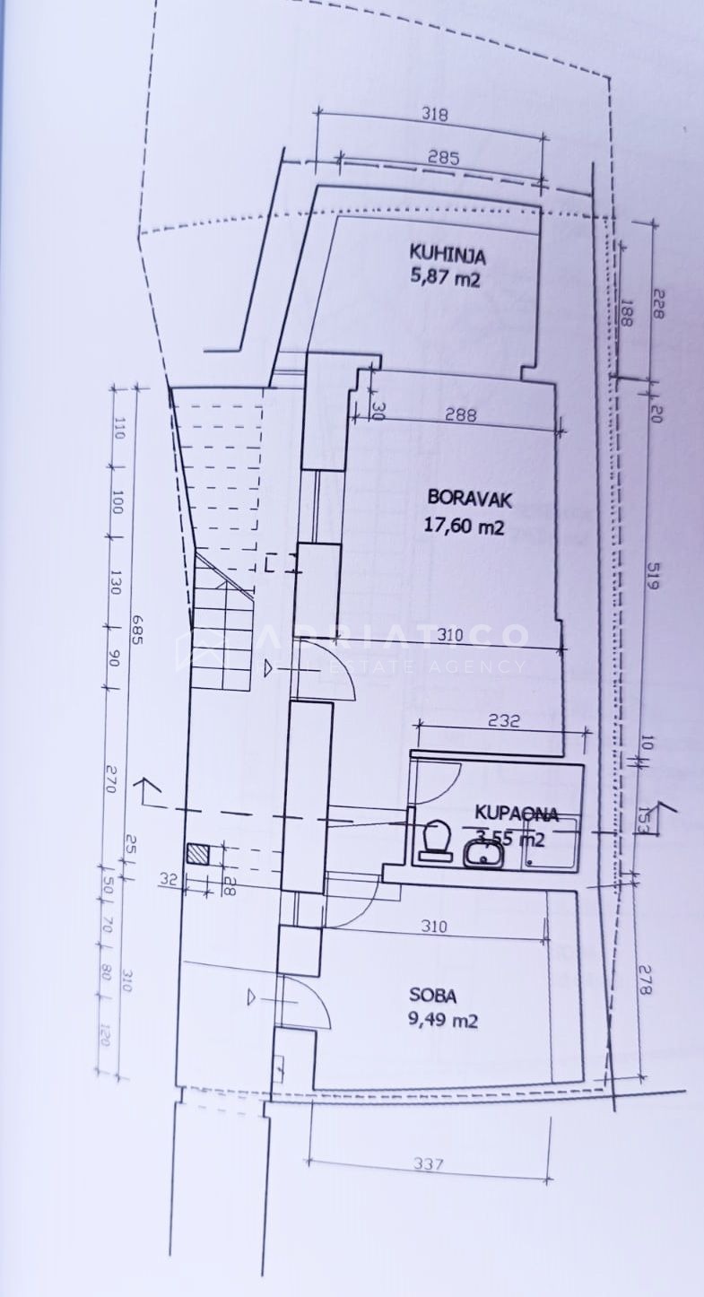 Questa interessante proprietà si trova in una posizione eccellente, a soli 100 metri dal mare, a 250 metri dal centro e vicino al parcheggio e a tutti i servizi che Rovigno offre.