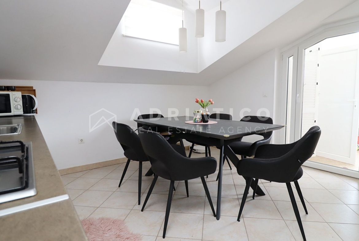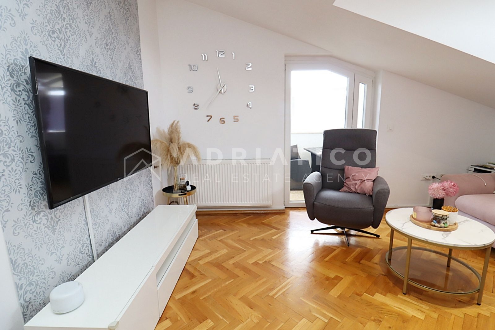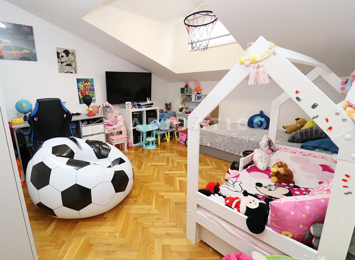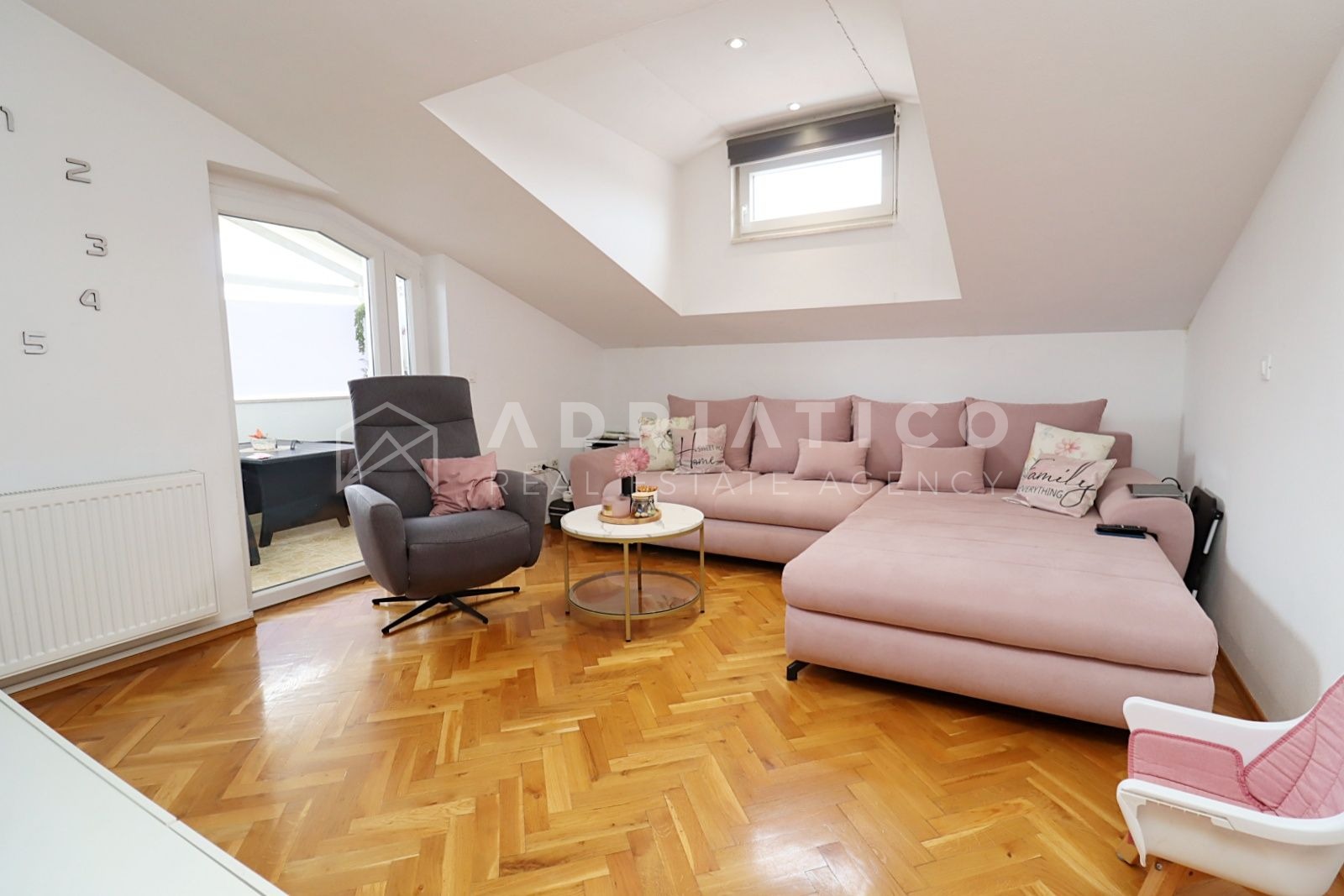 Appartamento spazioso e luminoso situato nella mansarda di un piccolo edificio residenziale con un totale di cinque unità, costruito nel 2010. L’appartamento ha una superficie abitabile di 74 m², con un valore aggiunto rappresentato dall’ampio terrazzo di 25 m², ideale per godersi la tranquillità e la privacy. Grazie all’orientamento a ovest, l’appartamento è illuminato dalla luce naturale per tutto il giorno.