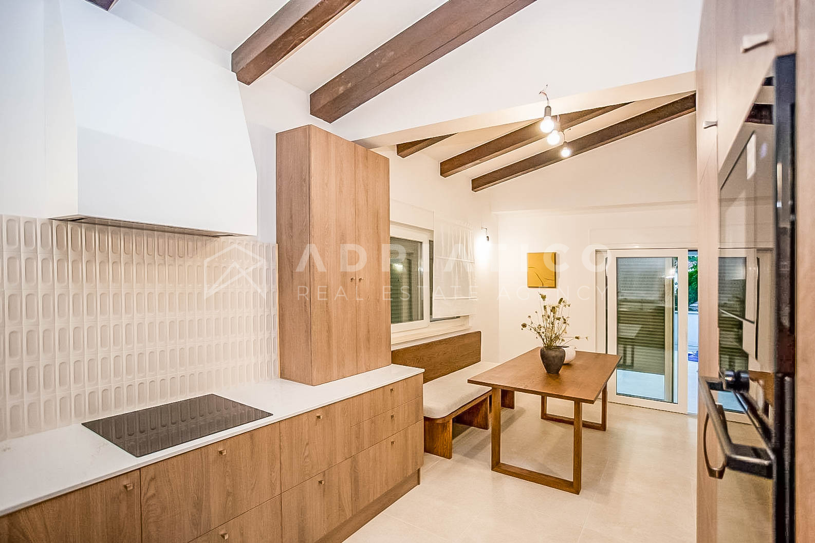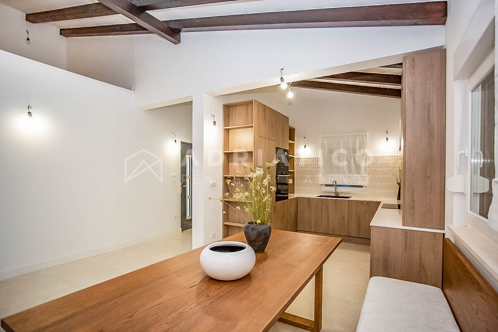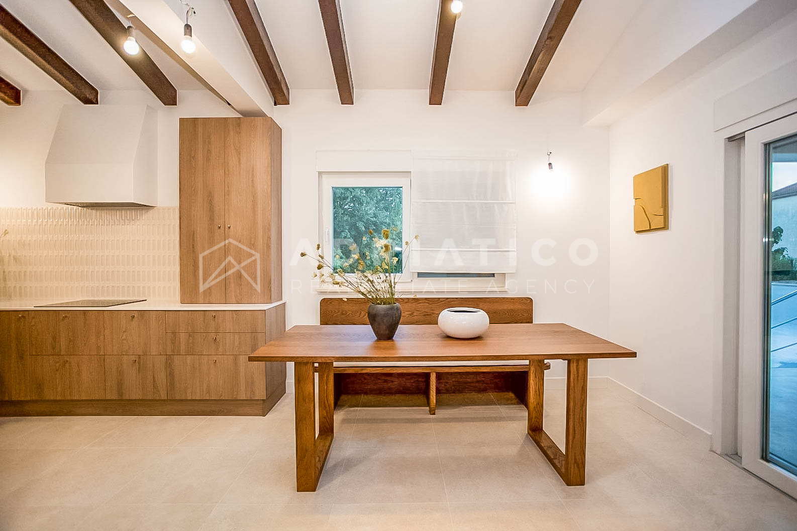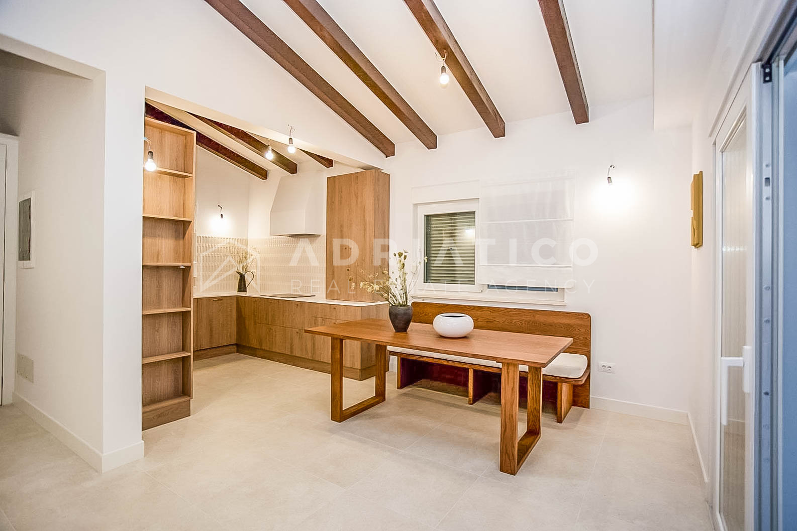 prostrani dnevni boravak povezan s potpuno opremljenom kuhinjom i blagovaonicom;