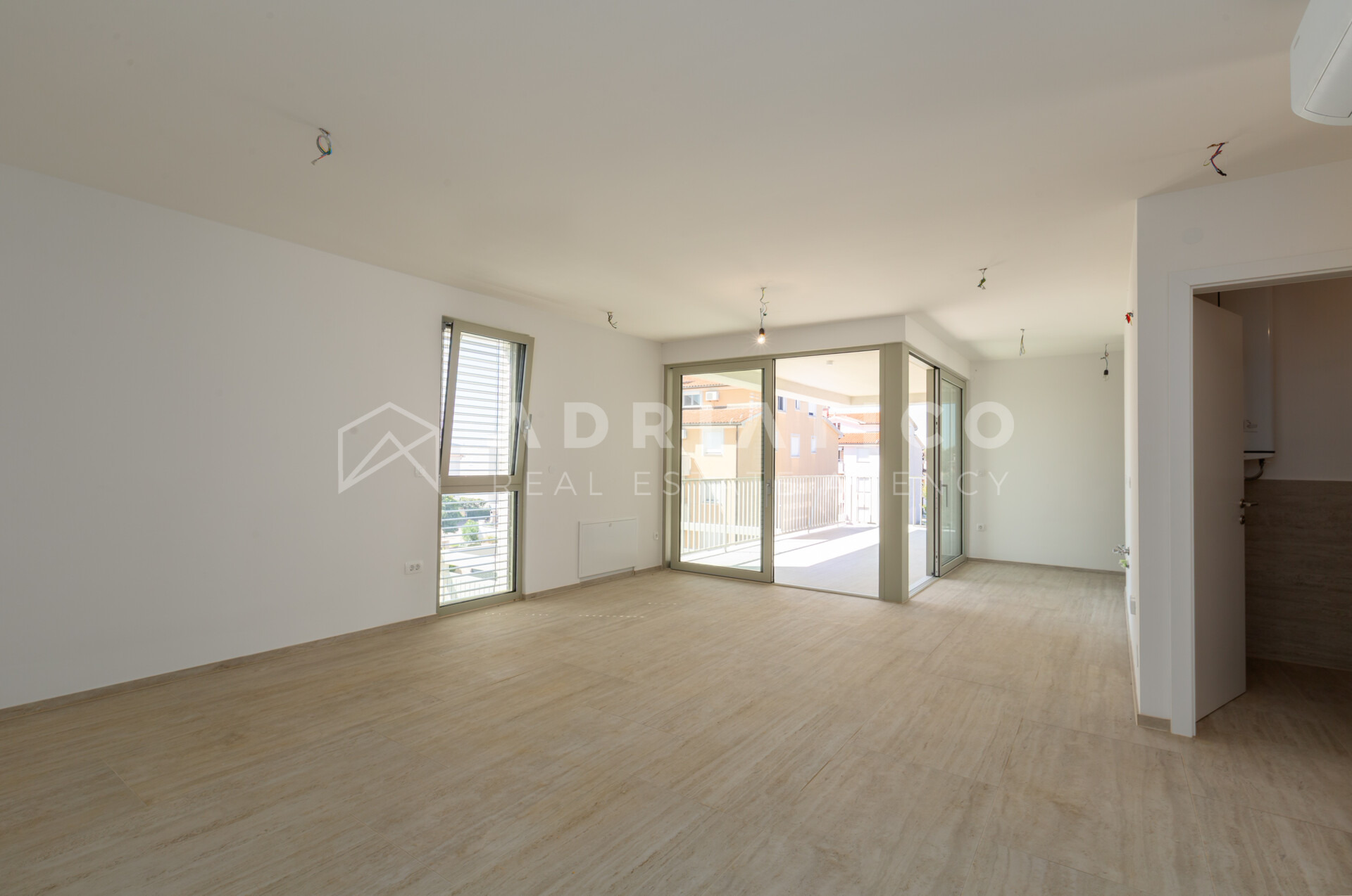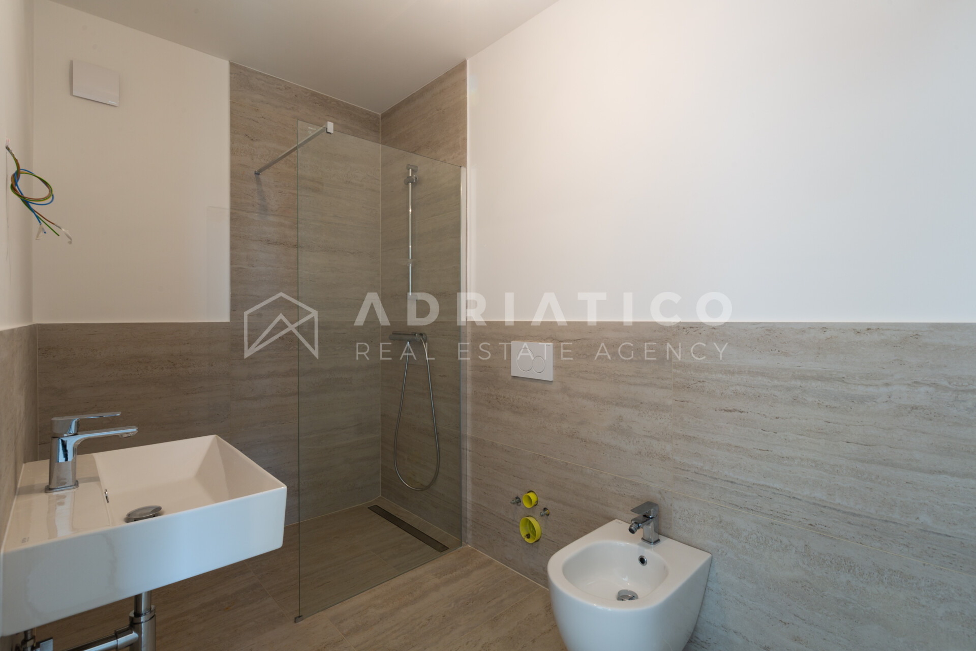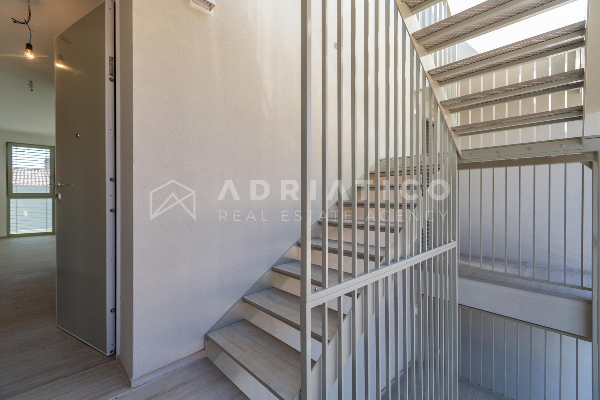 Prodaje se moderan stan u novogradnji, smješten svega 300 metara od mora i uređene plaže. Sa 108 m² stambene površine, stan nudi iznimno funkcionalan raspored koji uključuje četiri prostrane spavaće sobe, svijetao dnevni boravak i dvije kupaone. Posebnu vrijednost ovoj nekretnini daje impresivna krovna terasa od 112,5 m² s koje se pruža prekrasan, otvoren pogled na more, idealan za opuštanje, druženja i uživanje tijekom cijele godine.