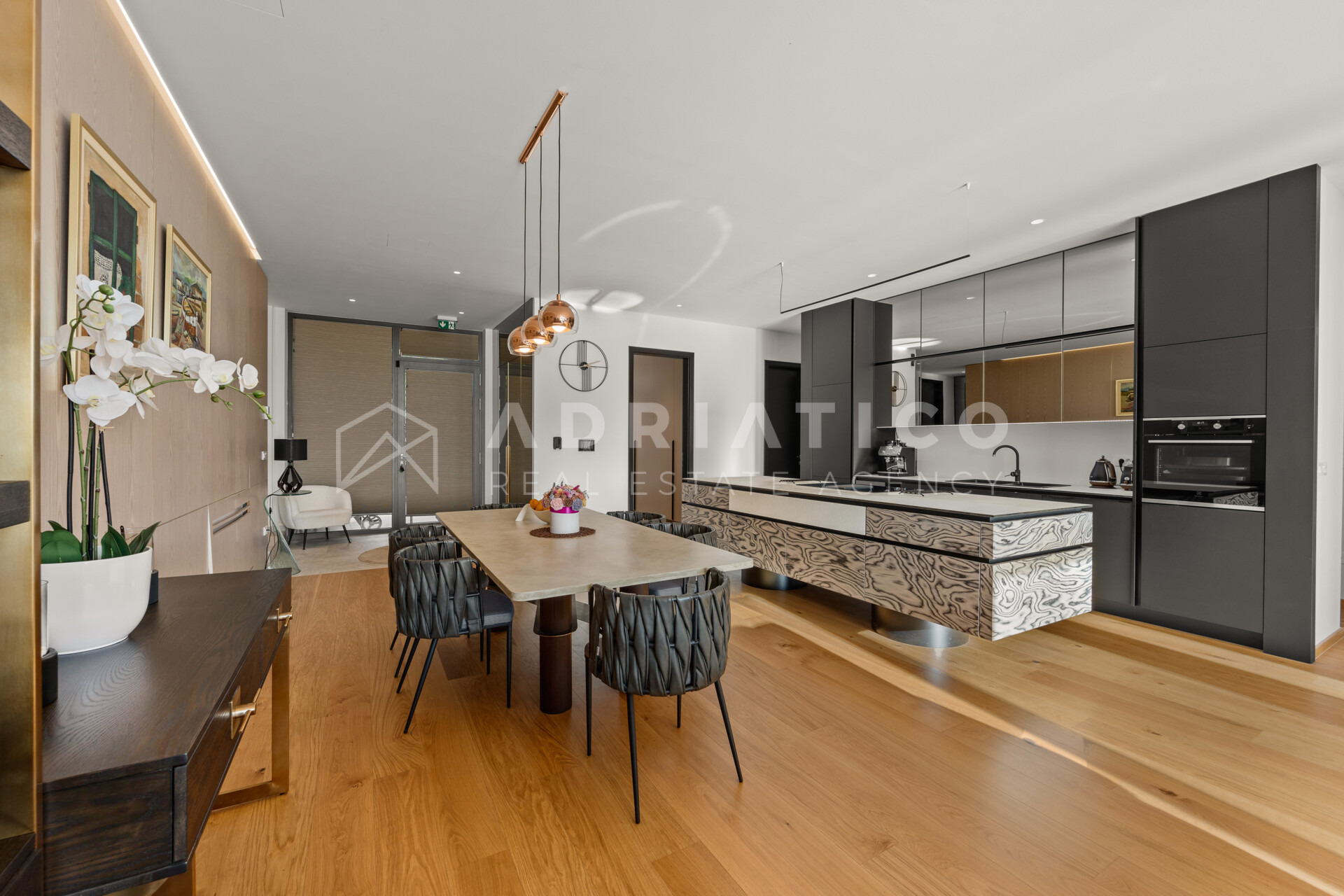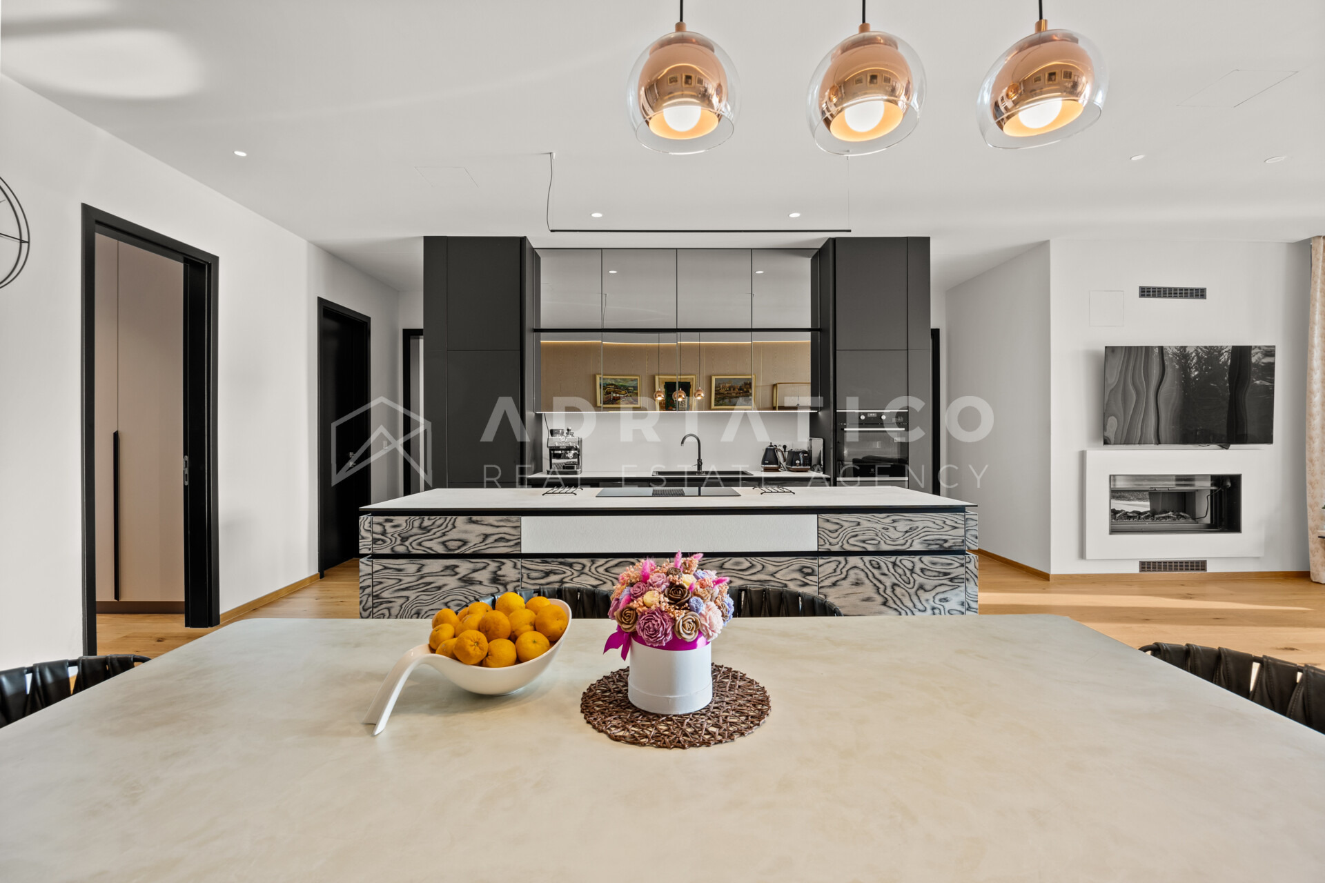 Sav namještaj i kućanski aparati su visokokvalitetni i pažljivo birani, što dodatno naglašava luksuzni karakter ove nekretnine.
