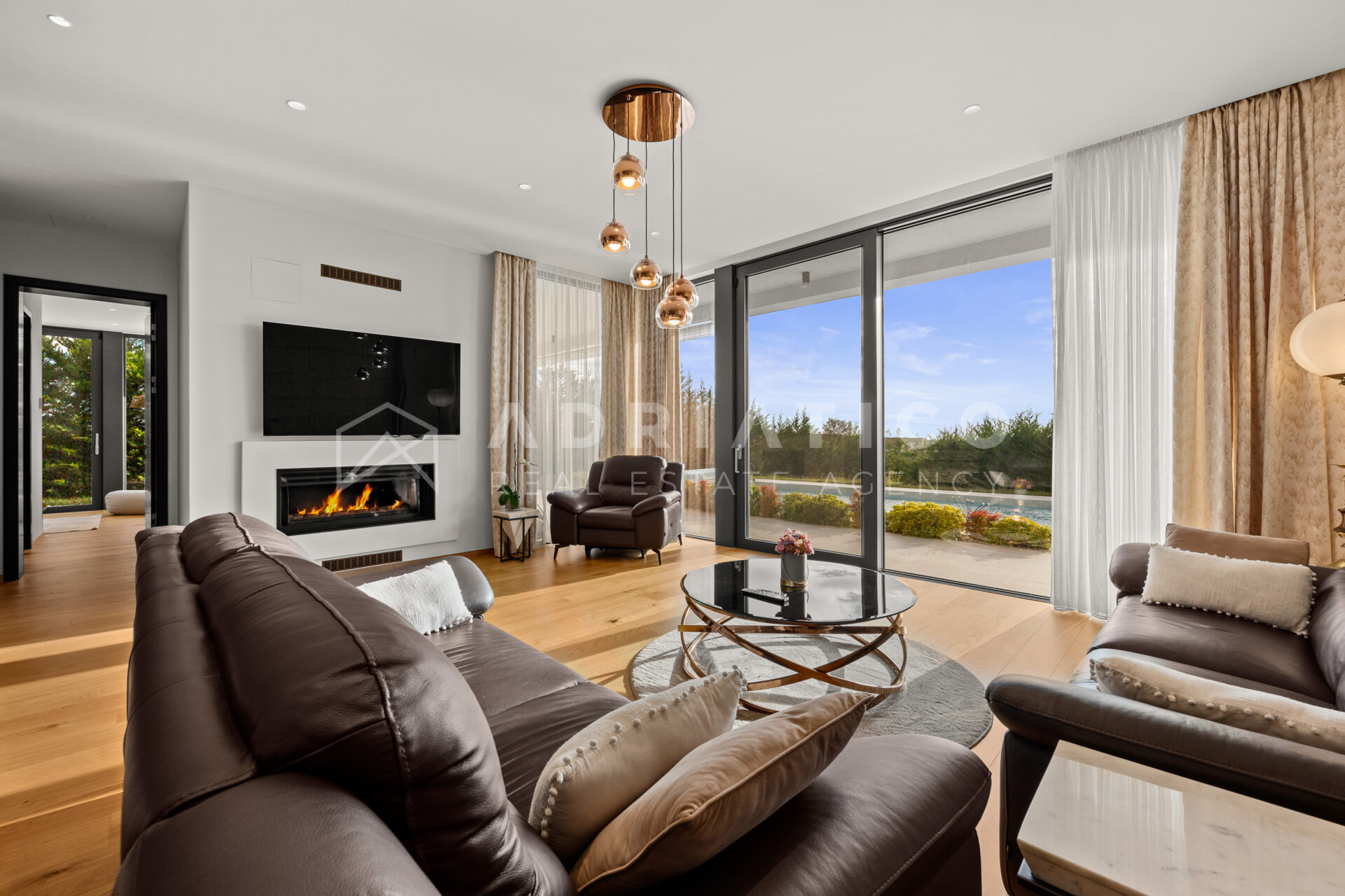 Vila je dizajnirana u suvremenom arhitektonskom stilu s naglaskom na prostranost, luksuz i prirodno svjetlo. Interijer je pažljivo osmišljen kako bi pružio maksimalnu udobnost i funkcionalnost.
