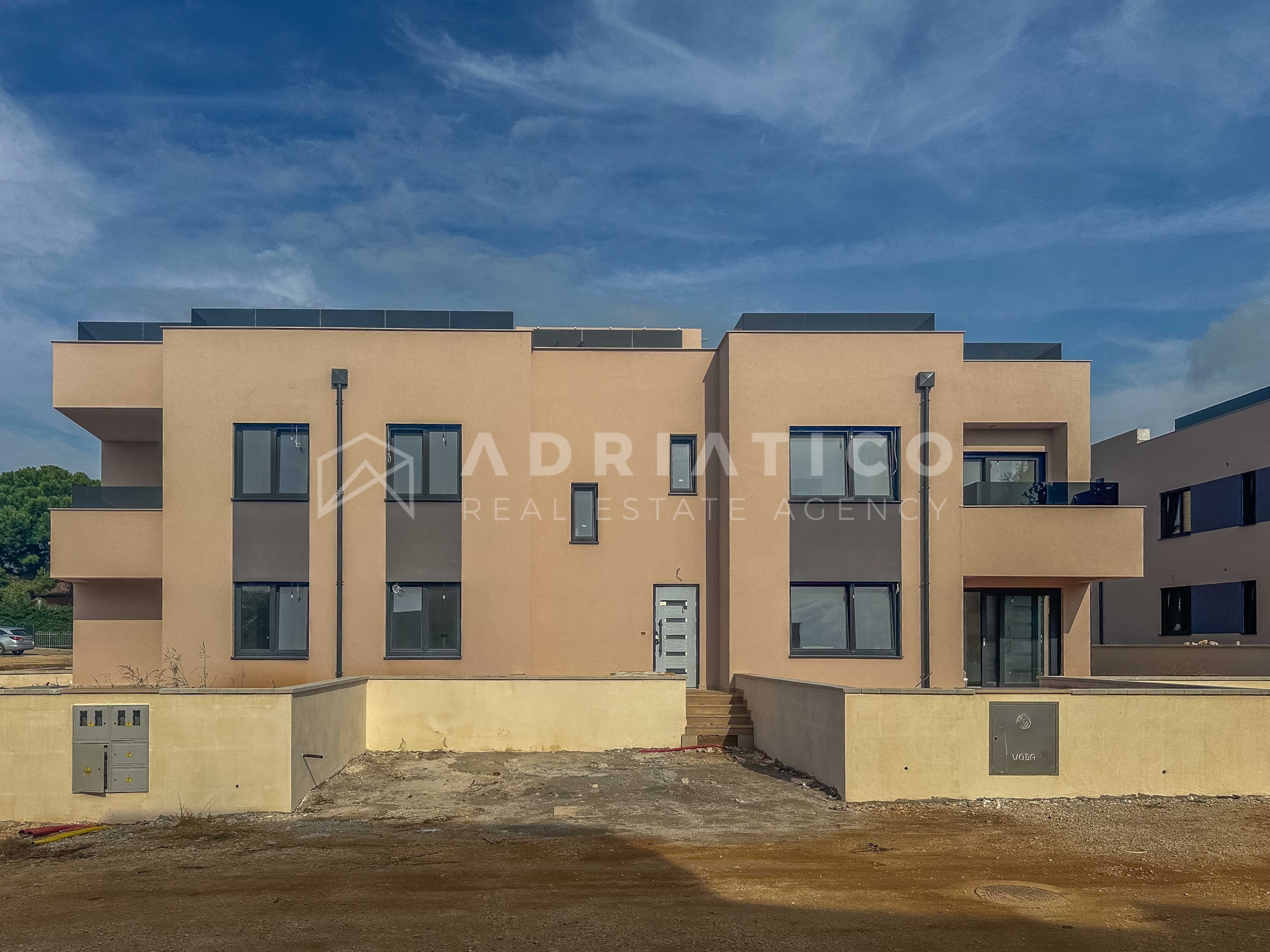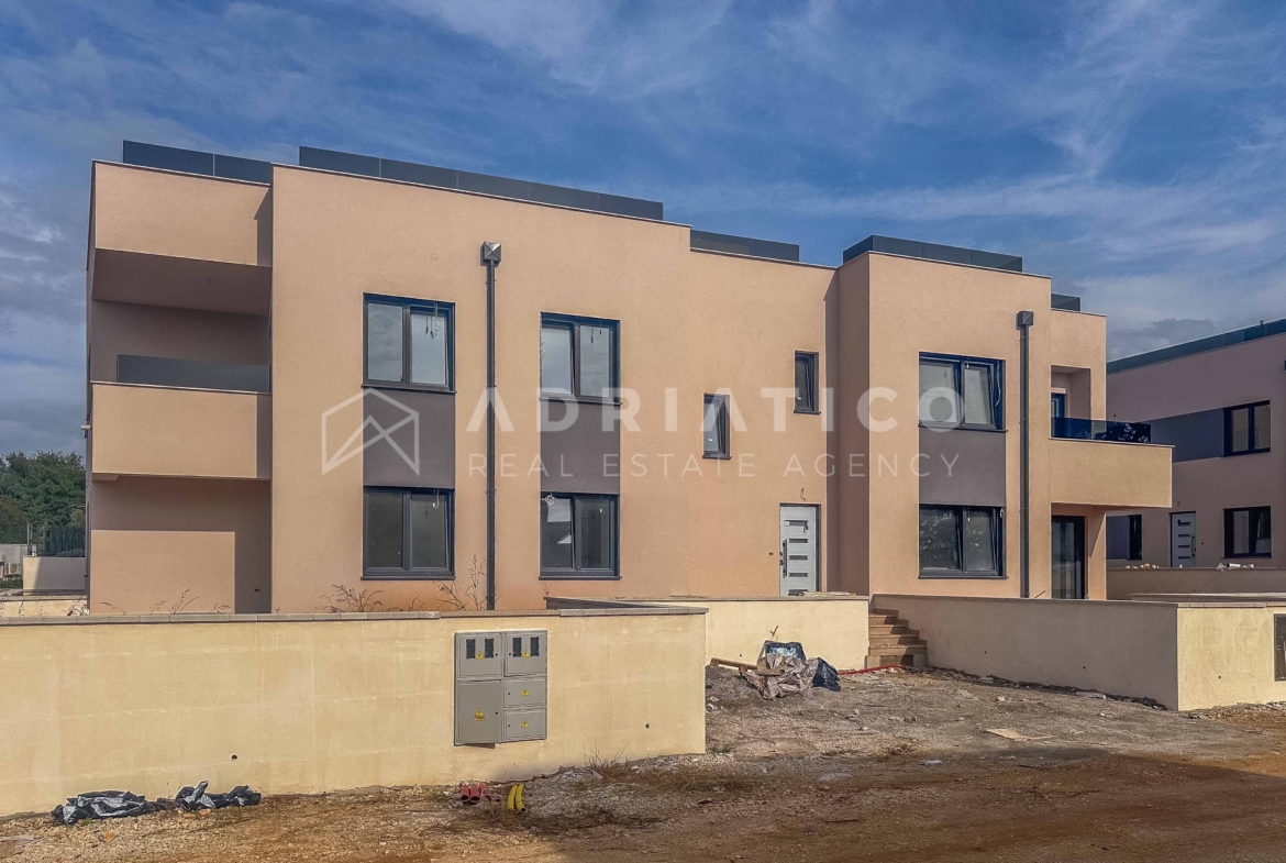 Prodaje se prostrani i luksuzno opremljen stan u prizemlju moderne zgrade s četiri stambene jedinice. Smješten u mirnom i atraktivnom dijelu, ovaj stan nudi idealan spoj udobnosti, privatnosti i funkcionalnosti. Sastoji se od dnevnog boravka s blagovaonicom i kuhinjom koji imaju izlaz na balkon, tri prostrane spavaće sobe, dvije moderne kupaonice te pripadajućeg spremišta. Posebnu vrijednost čini privatno dvorište površine 99,82 m², savršeno za opuštanje i uživanje na otvorenom.