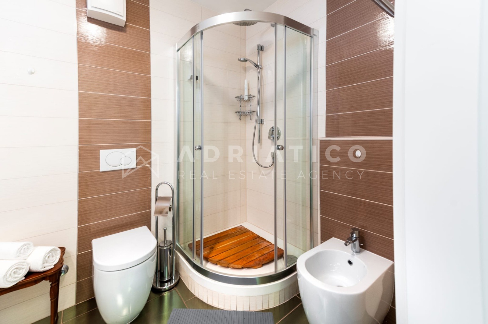 Jedan stan ima kupaonicu s kadom, dok drugi stan nudi tuš kabinu i podno grijanje, što osigurava višu razinu komfora tijekom cijele godine. Oba stana su potpuno namještena kvalitetnim namještajem po mjeri i opremljena Bosch uređajima. Grijanje i hlađenje osigurano je putem klima uređaja.