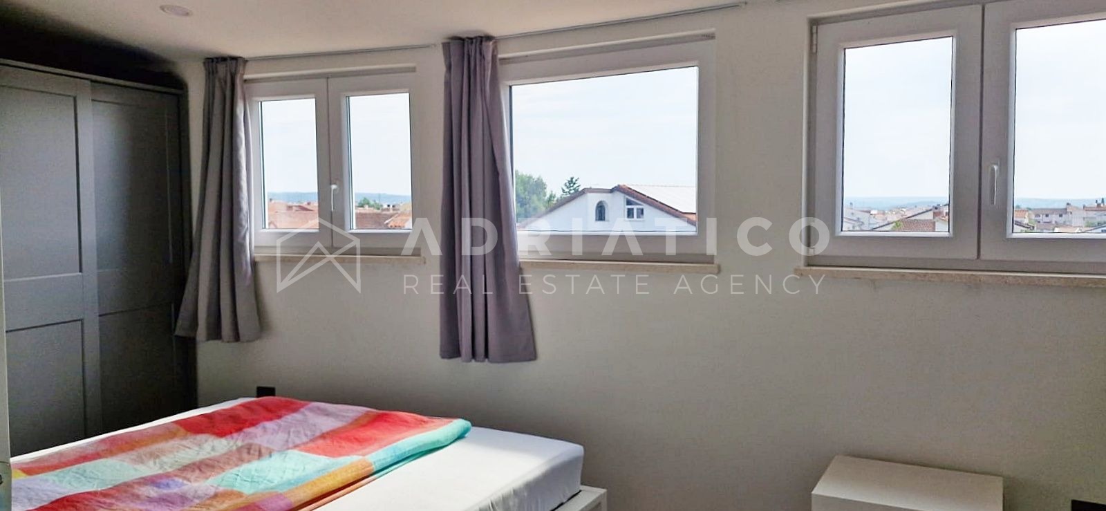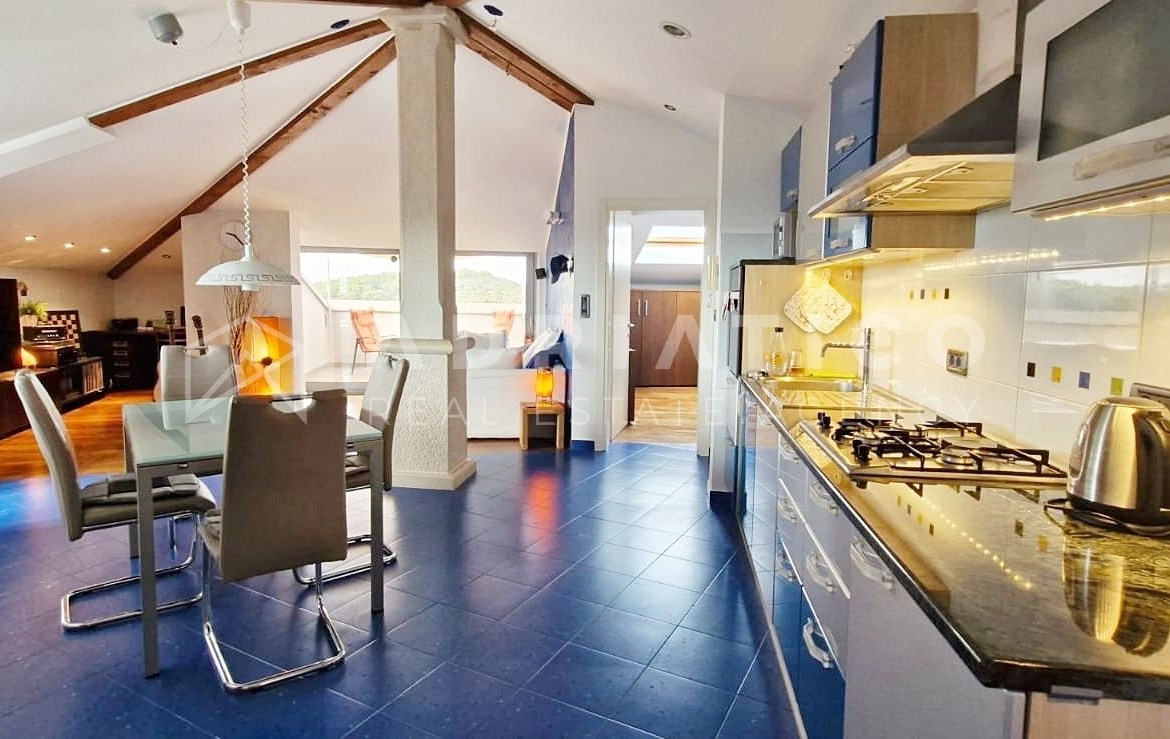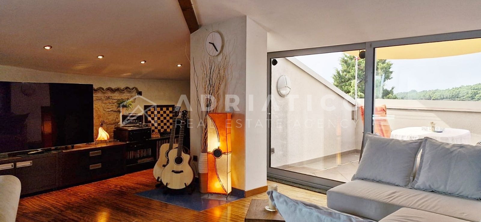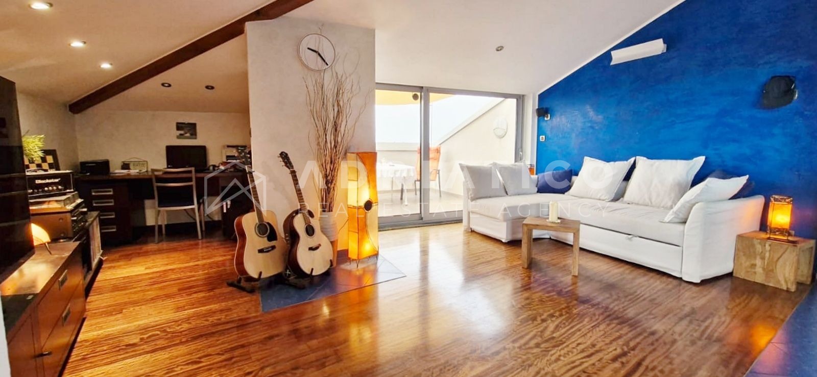 Na samo 10tak min hoda do plaže nalazi se ovaj svijetao i ugodan stan površine 90,60 m², smješten u potkrovlju suvremene zgrade u jednom od najpoželjnijih dijelova Rovinja.