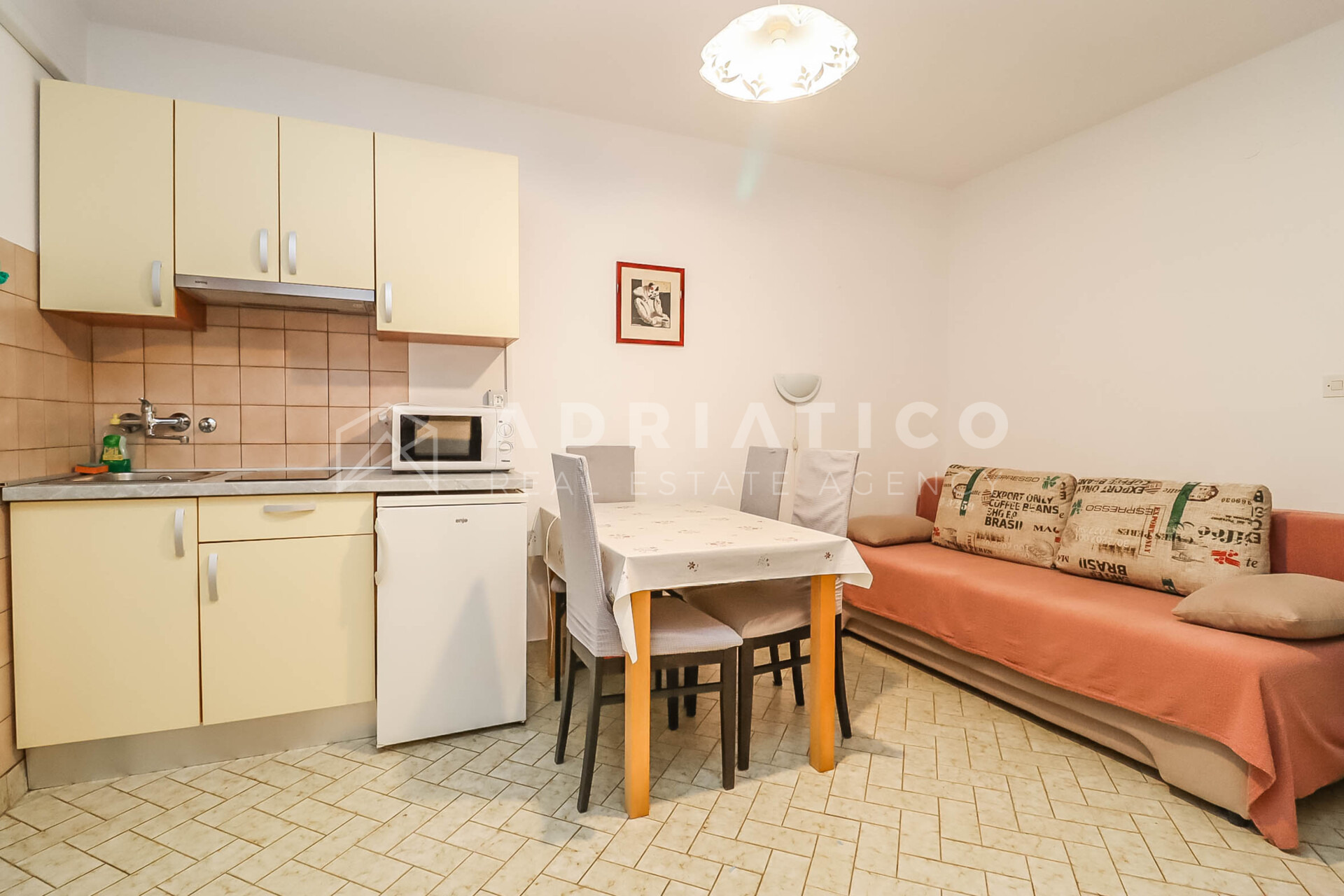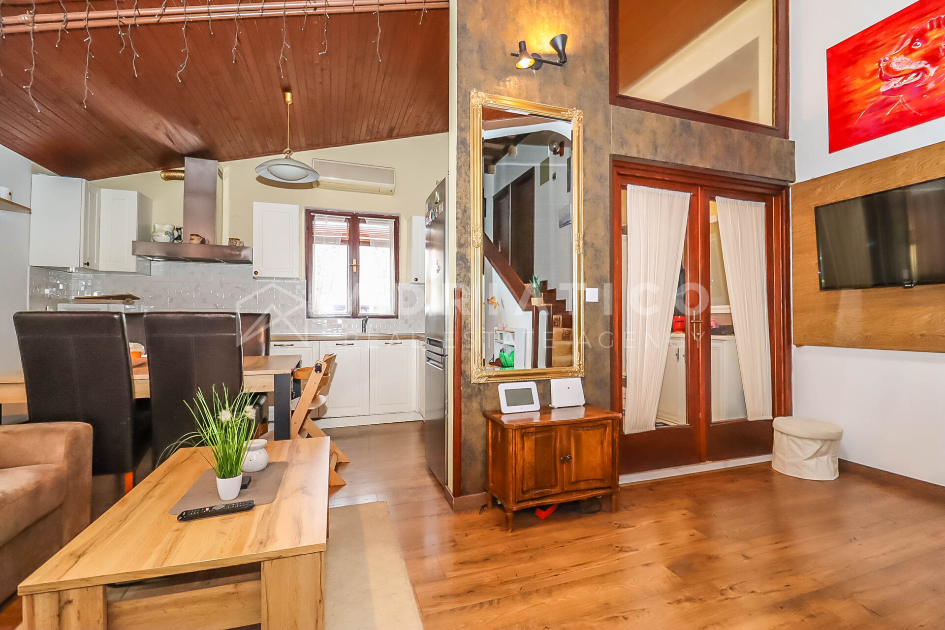 Manji stan u prizemlju s galerijom, s dnevnim boravkom, kuhinjom i blagovaonicom, kupaonicom, te spavaćom sobom u potkrovlju.