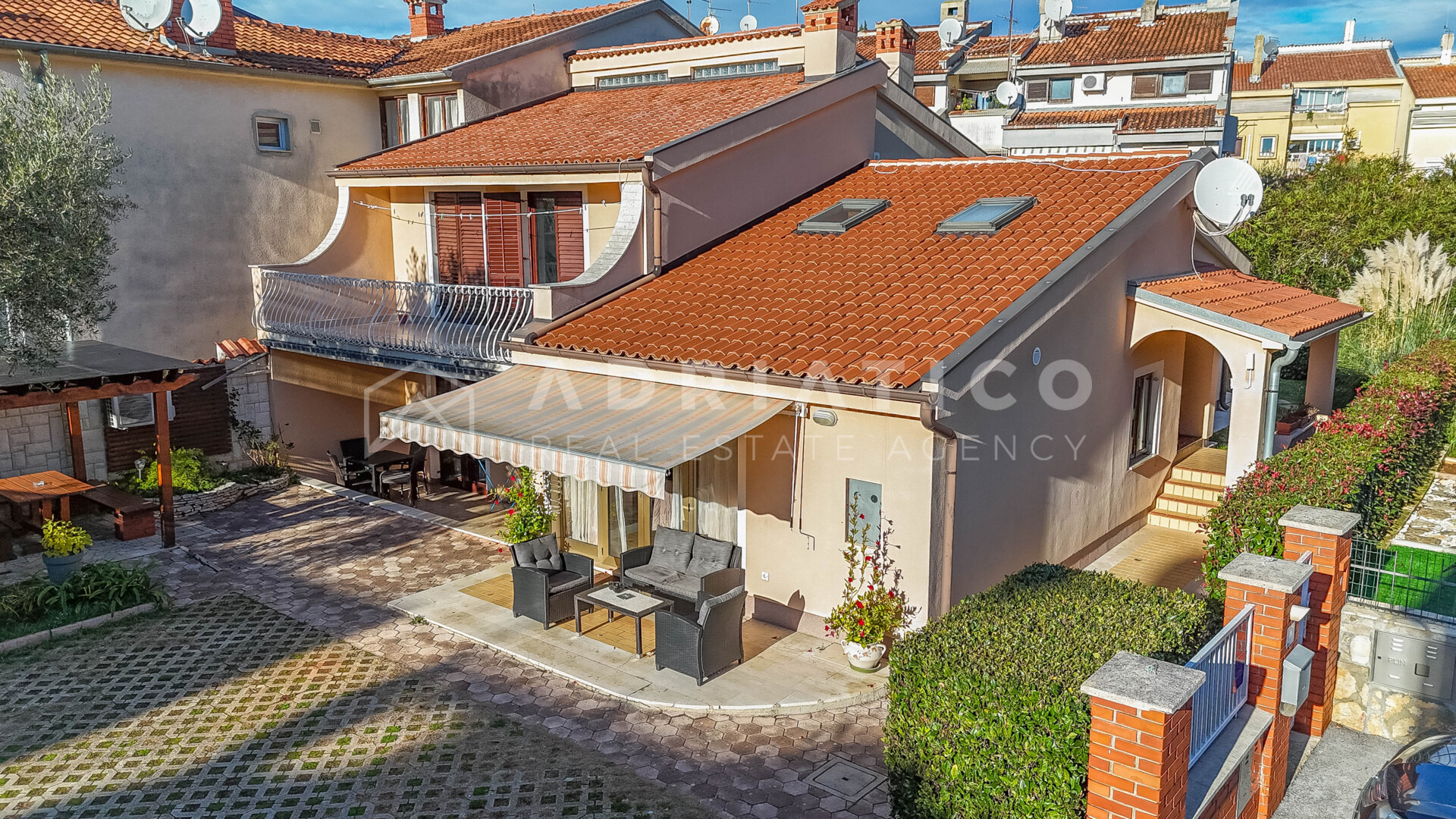 Ova prostrana i pažljivo održavana obiteljska kuća smještena je u mirnom i uređenom naselju nedaleko od uređenih plaža, a isto tako i blizu je centar Rovinja sa sa svim potrebnim sadržajima za svakodnevni život.