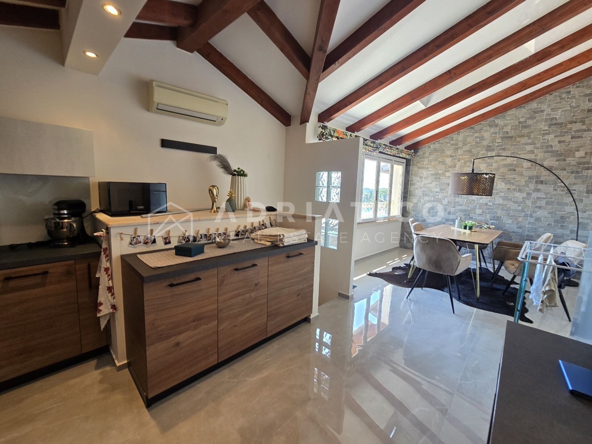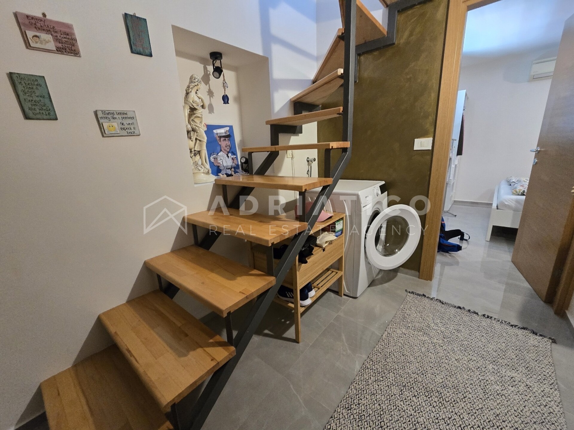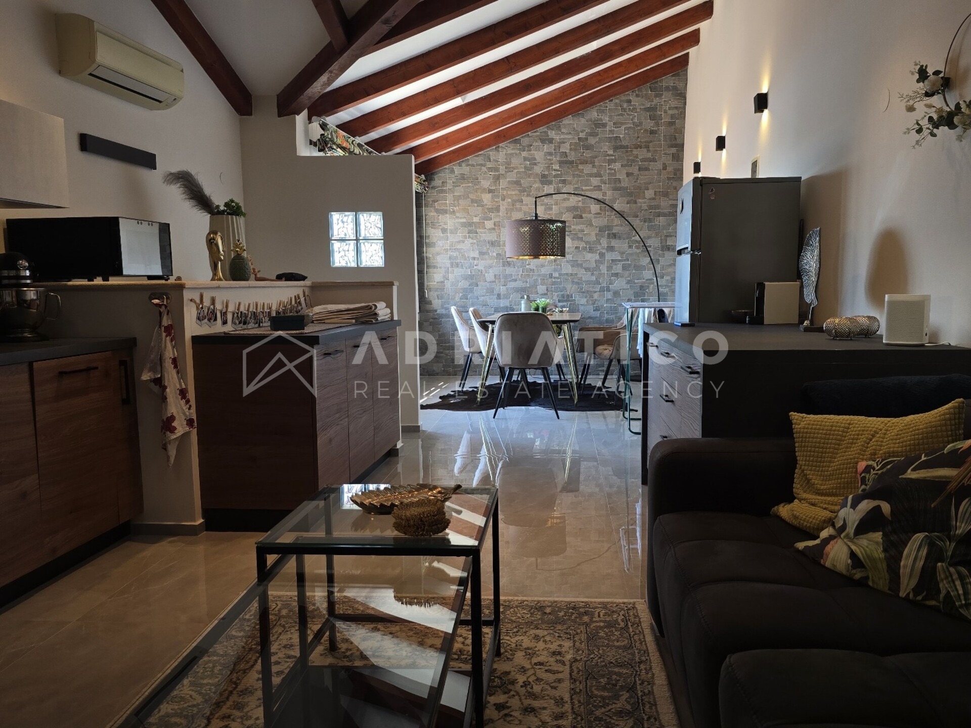 U samom srcu Rovinja, u povijesnoj jezgri starog grada, nalazi se rijetka prilika – luksuzni dvoetažni stan od 60 m² u kamenoj kući iz 16. stoljeća. Spoj je povijesnog šarma i suvremene elegancije, a do njega vode moderne spiralne drvene stepenice.