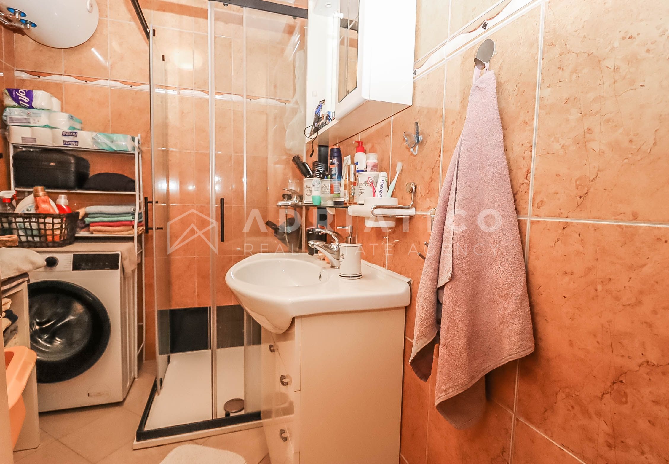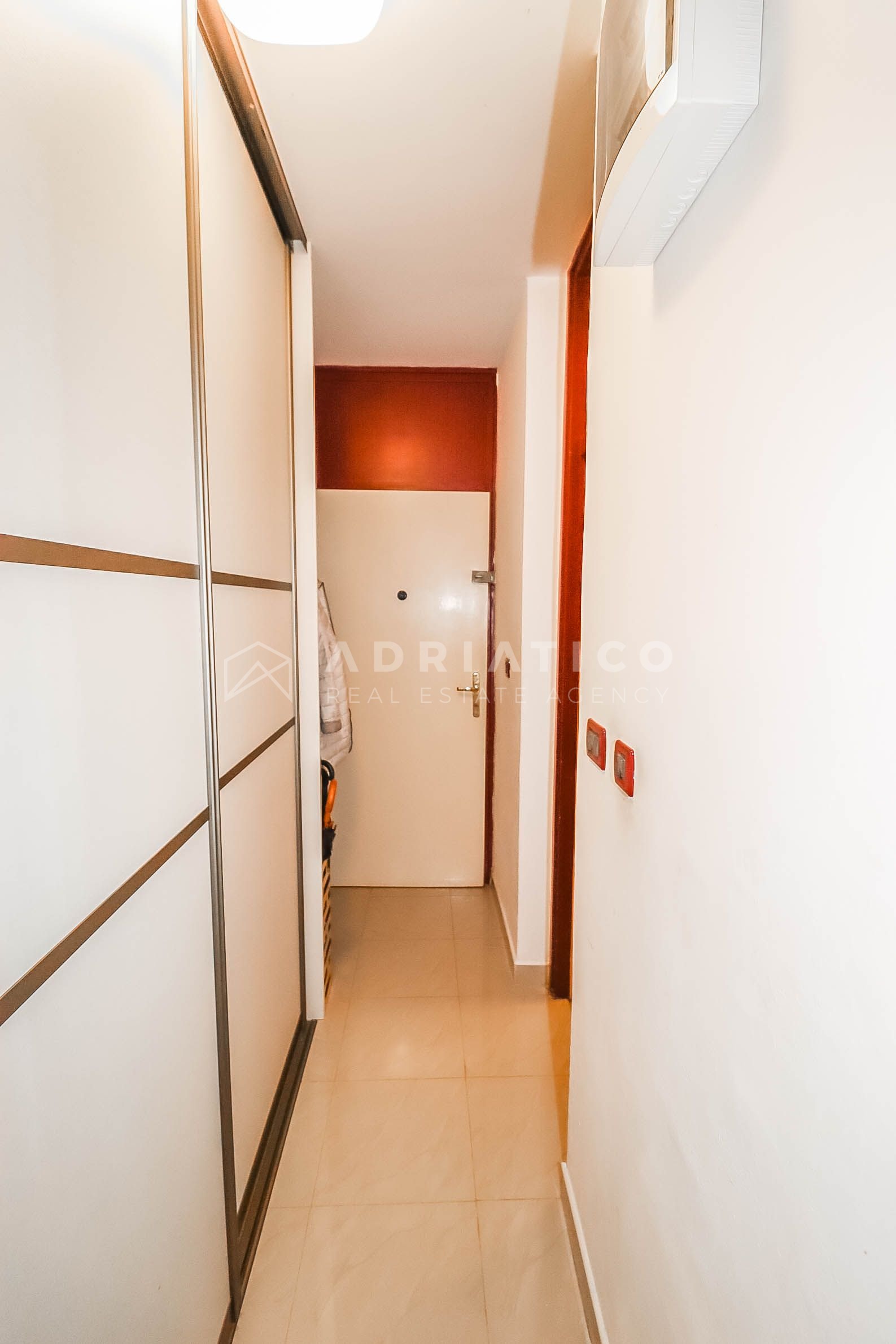 Stan se sastoji od ulaznog hodnika, svijetlog dnevnog boravka s izlazom na loggiu i pogledom na more, kuhinje, spavaće sobe i kupaonice, koja je djelomično renovirana 2023. godine.