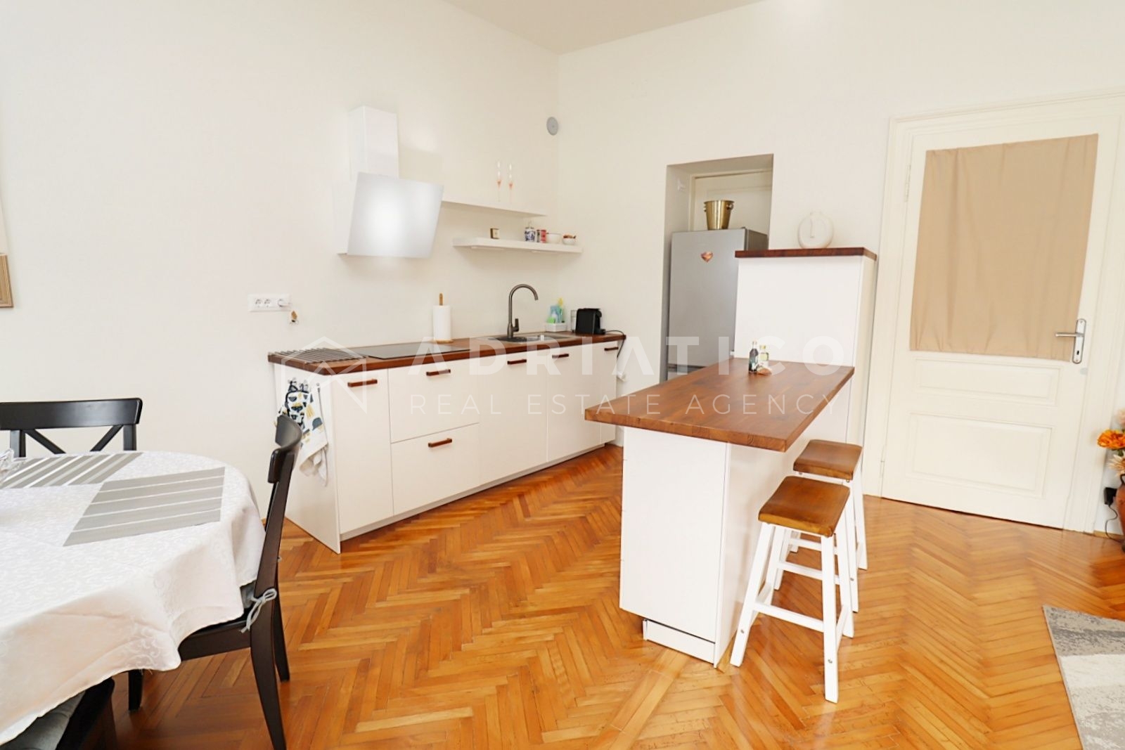 Prostor je uređen s posebnom pažnjom – spoj suvremenog dizajna i šarma starine stvara topao i elegantan ambijent koji odiše karakterom i stilom.