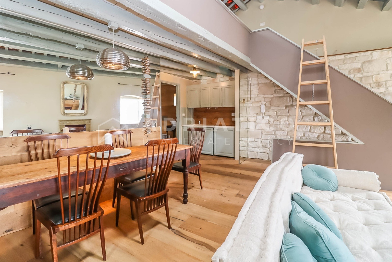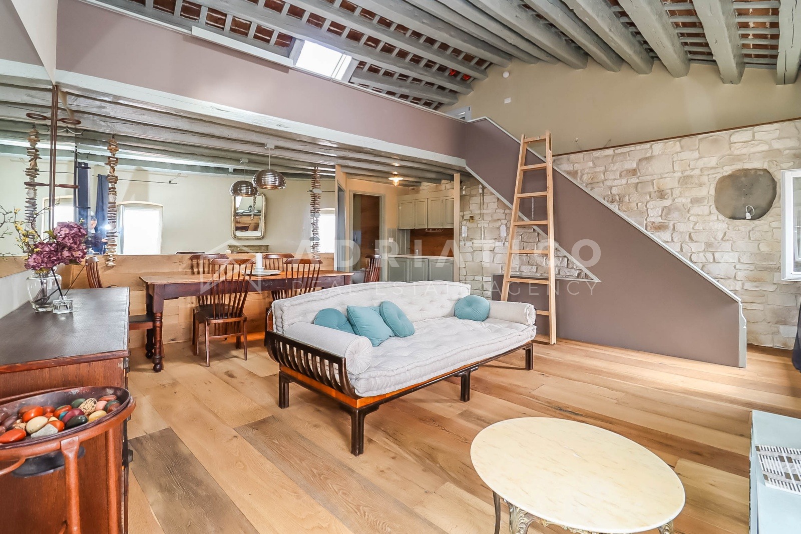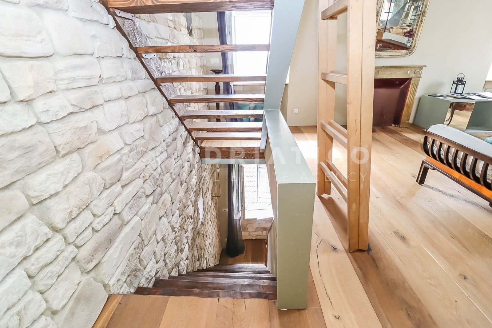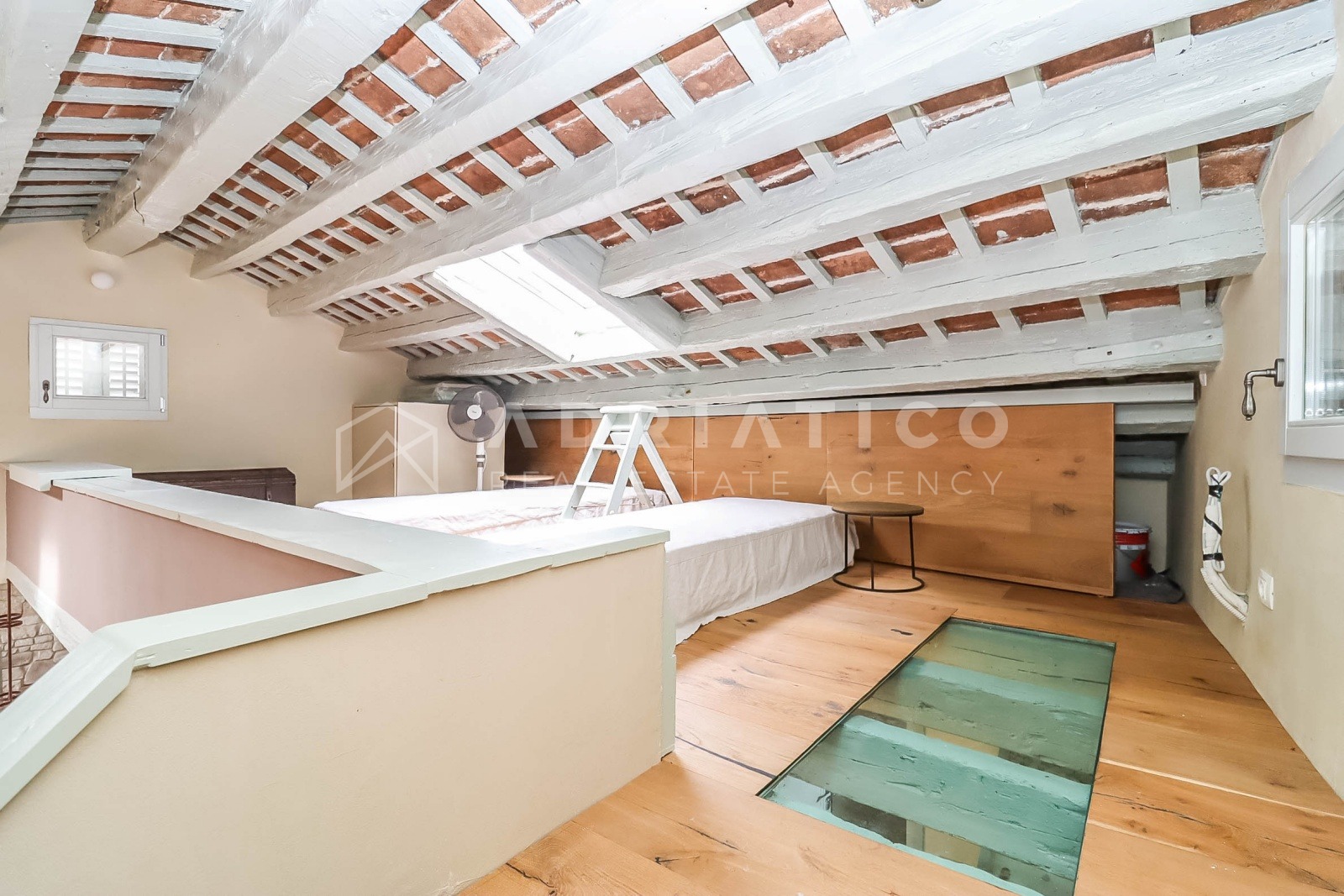 Poseban arhitektonski detalj predstavlja stakleni pod na galeriji, koji omogućuje dodatni prodor prirodne svjetlosti u kuhinjski prostor, dok dva krovna prozora dodatno osvjetljavaju cijeli stan i stvaraju iznimno ugodnu atmosferu.