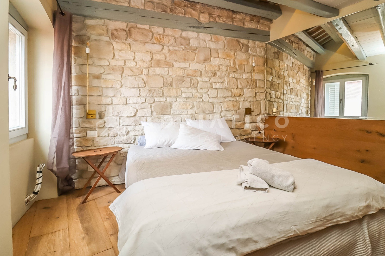 U samom srcu starog grada Rovinja, u jednoj od autentičnih kasnorenesansnih palača, smješten je ovaj iznimno šarmantan i potpuno renoviran stan koji spaja povijesni karakter starogradske arhitekture s vrhunskim suvremenim dizajnom i tehnologijom.
