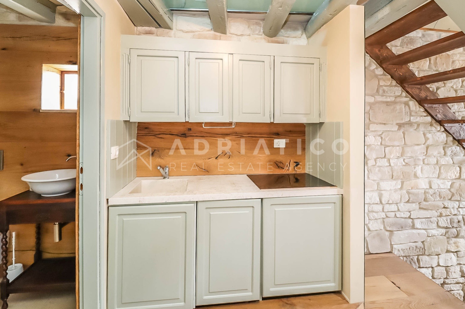 – istarski kamen u kupaonici, kuhinji i na prozorima;