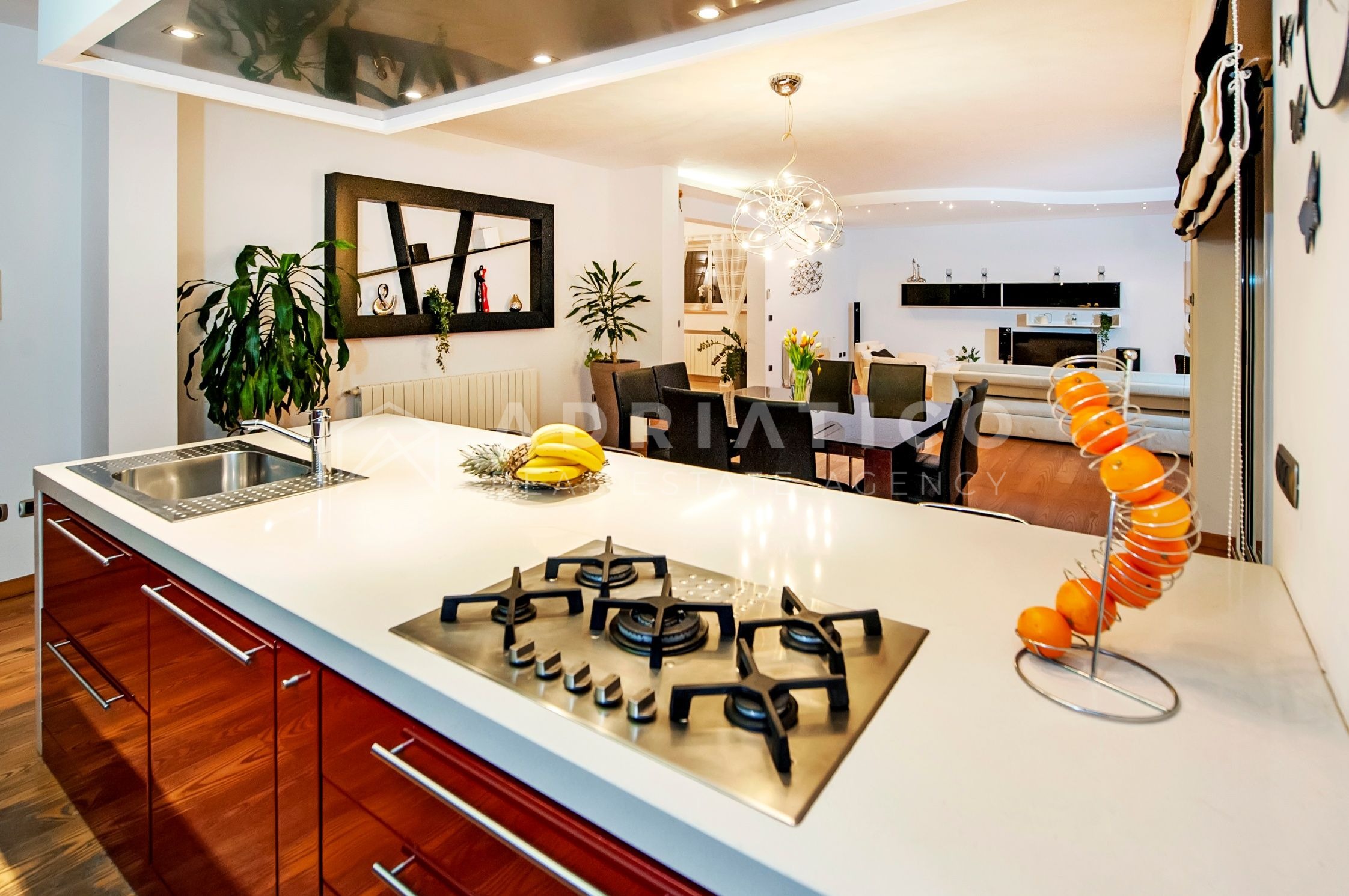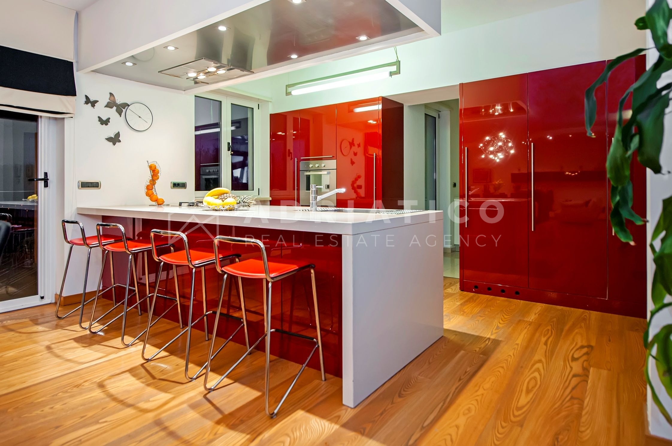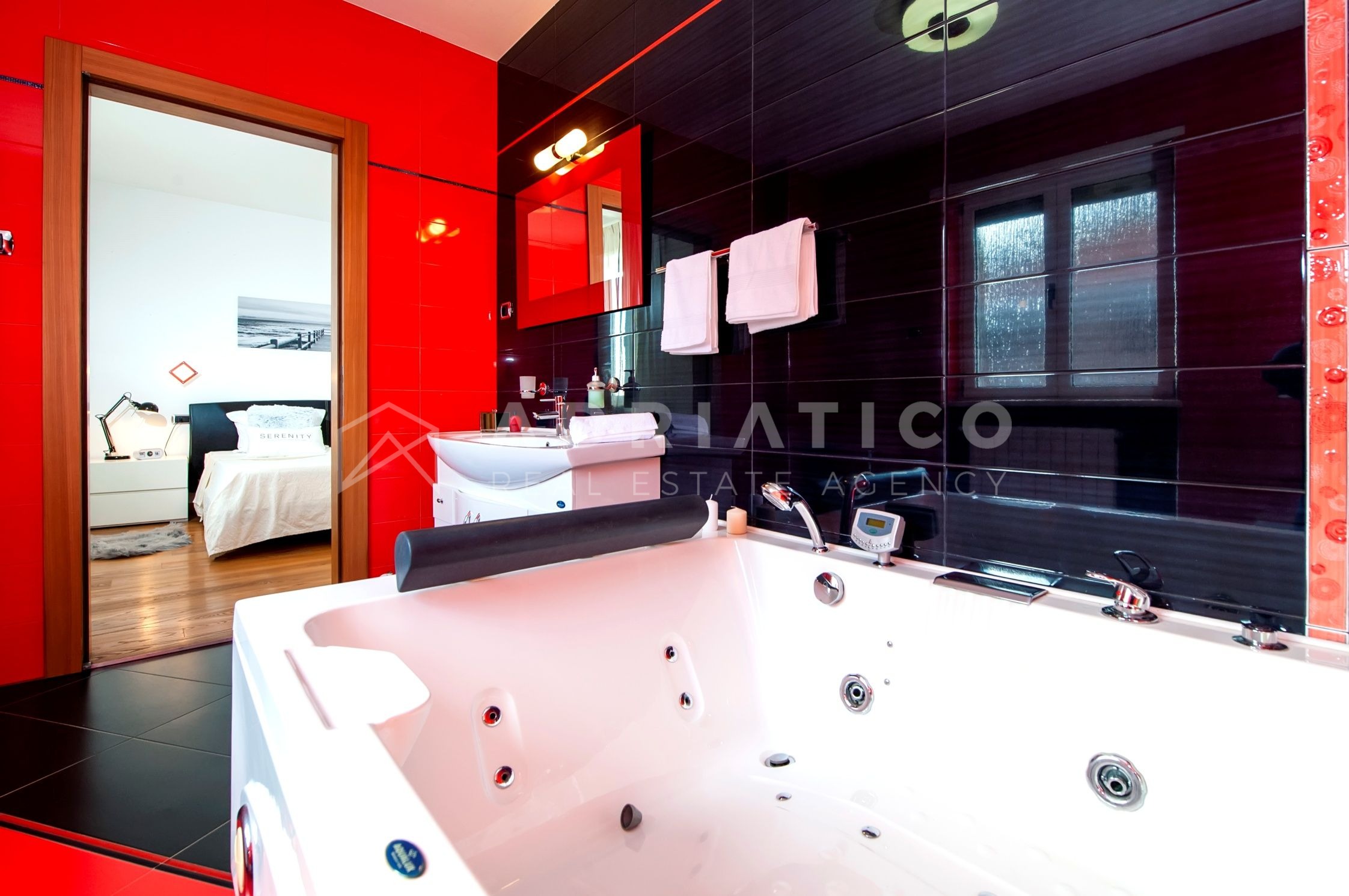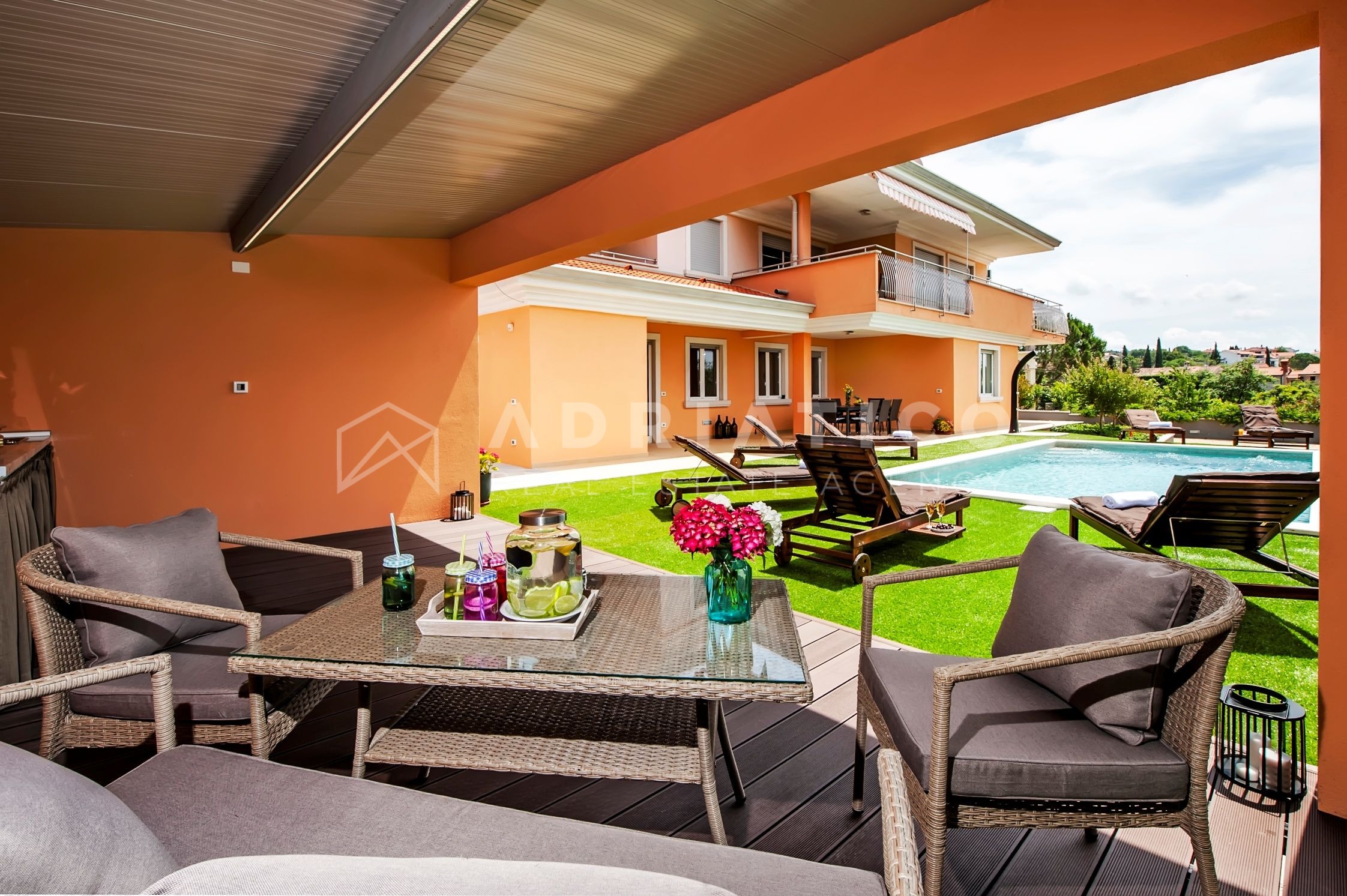U mirnom susjedstvu nedaleko Rovinja, na parceli od 1719m2 smjestila se ova raskošna villa sveukupne stambene površine 550m2.