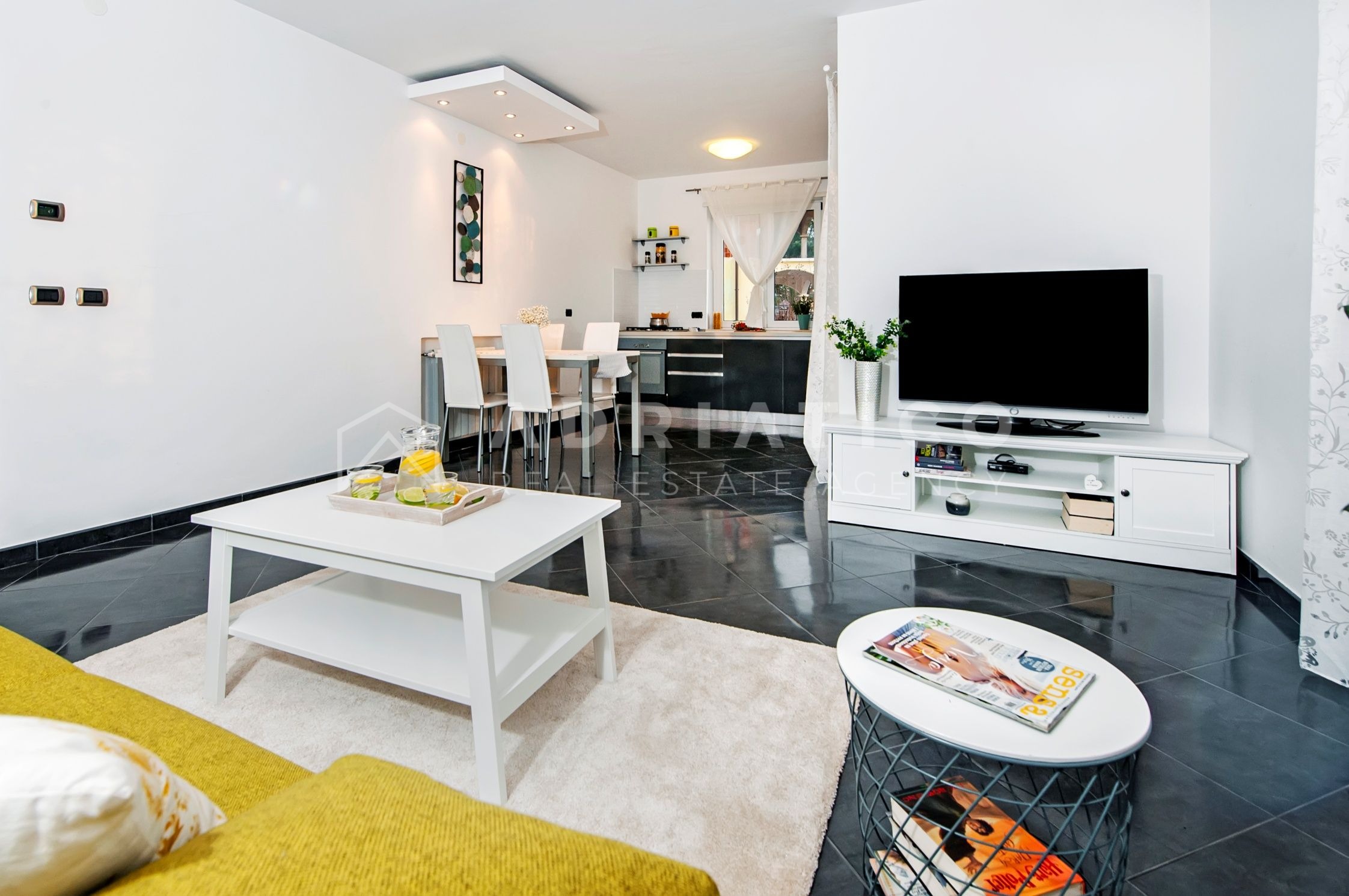 – prvi kat sastoji se od kuhinje, blagovaonice i dnevnog boravka kao open space iz kojeg se izlazi na veliku terasu, 3 spavaće sobe i 2 kupaonice.