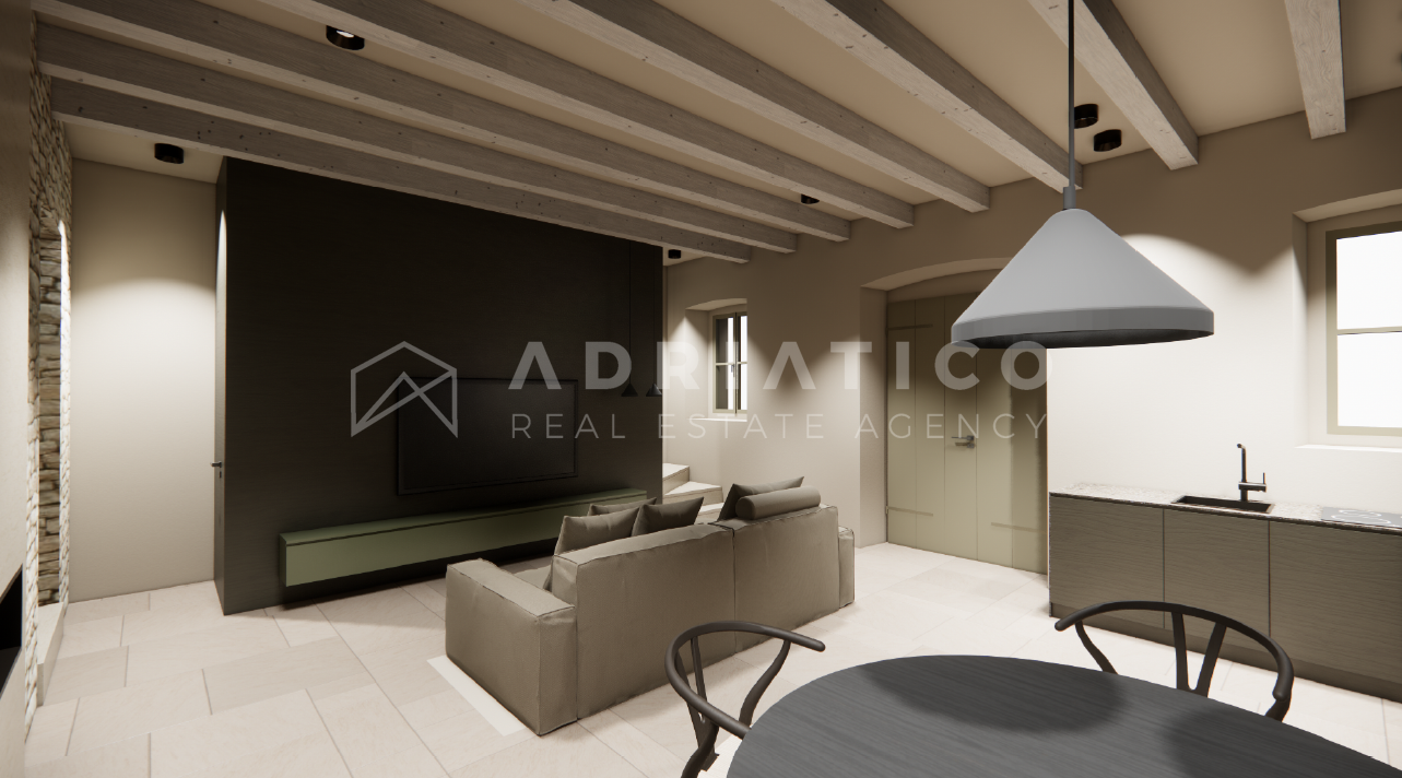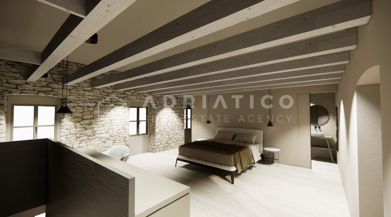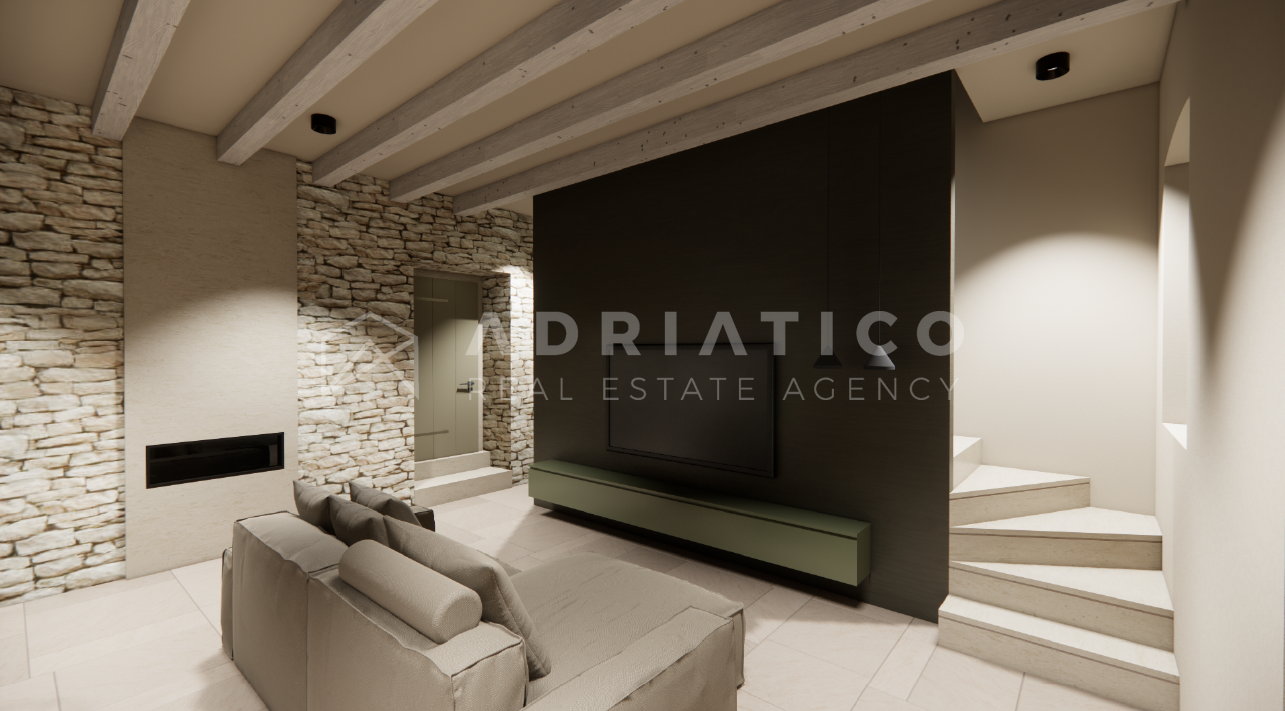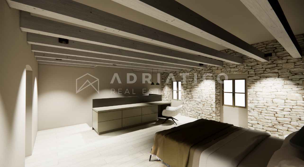 Nekretninu je potrebno adaptirati i izvesti instalacije, no već su napravljeni ključni radovi: novi krov, nova vanjska stolarija, fasada, betonska deka na prvom katu te čelične grede ispod krova. Odlična prilika za uređenje po vlastitim željama, bilo za turistički najam ili stanovanje.