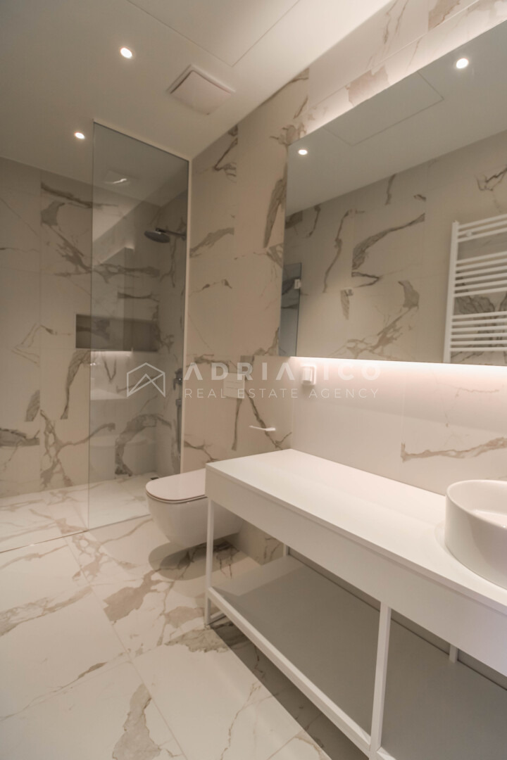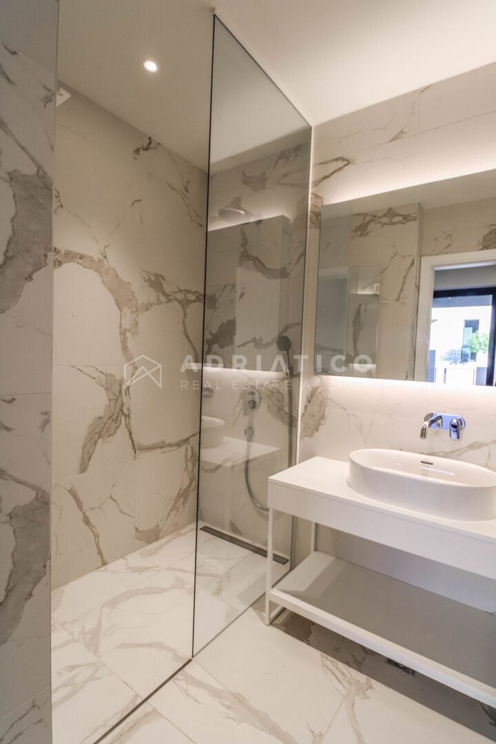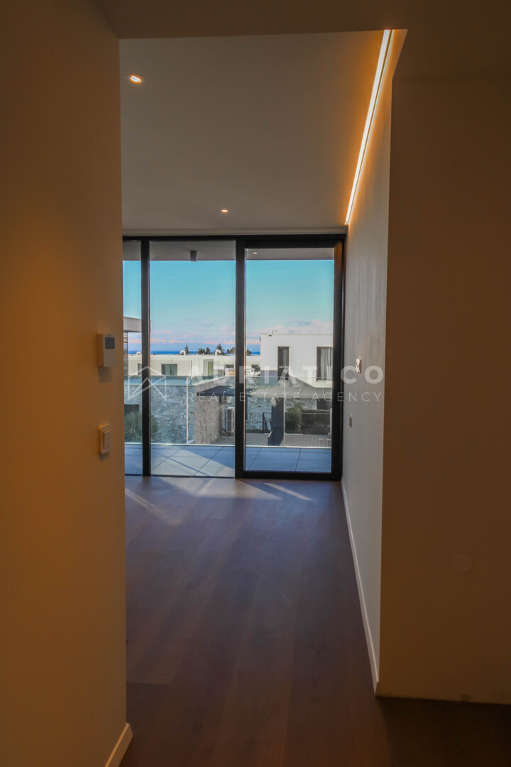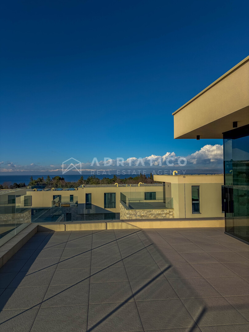 Unutrašnjost obuhvaća tri prostrane spavaće sobe, tri uređene kupaonice te dodatni gostinjski toalet. Raspored prostorija osigurava privatnost svakom članu kućanstva, dok je dnevni boravak koncipiran kao centralno mjesto okupljanja s izravnom vizualnom komunikacijom prema moru i vanjskom prostoru. Visoka razina opreme i suvremeni standardi gradnje zadovoljit će i najzahtjevnije kupce koji traže luksuznu nekretninu u Istri.