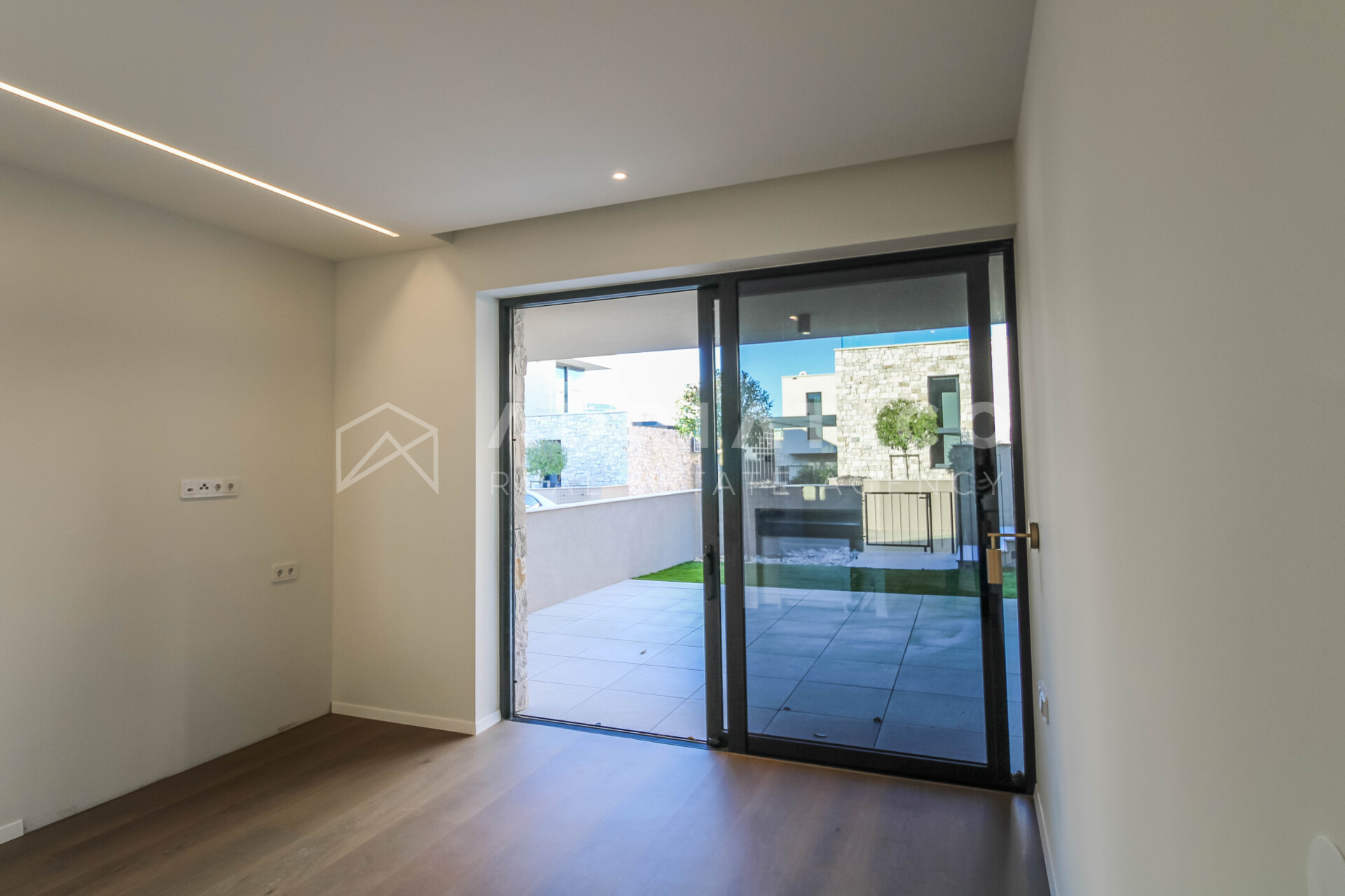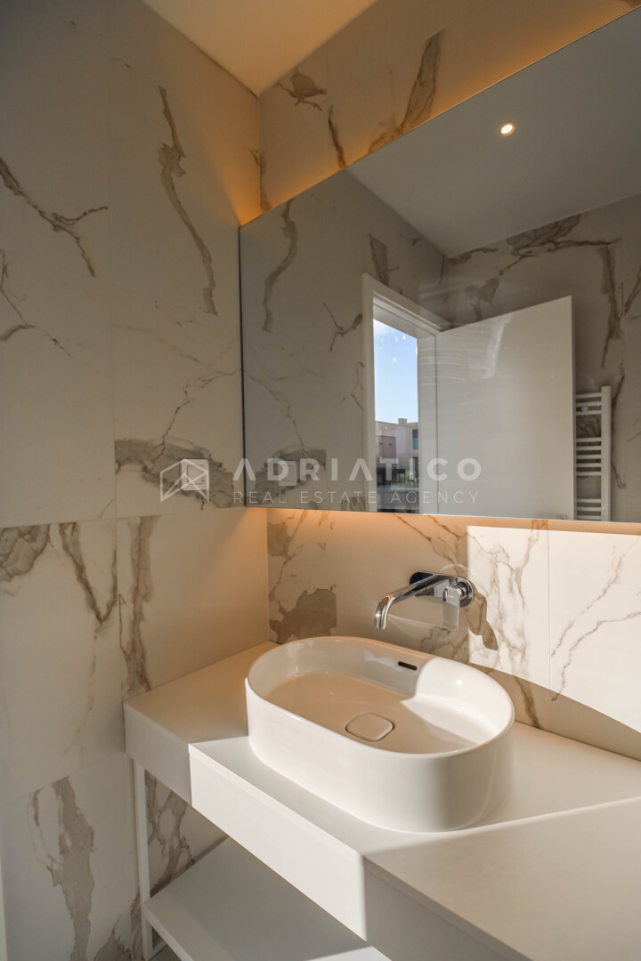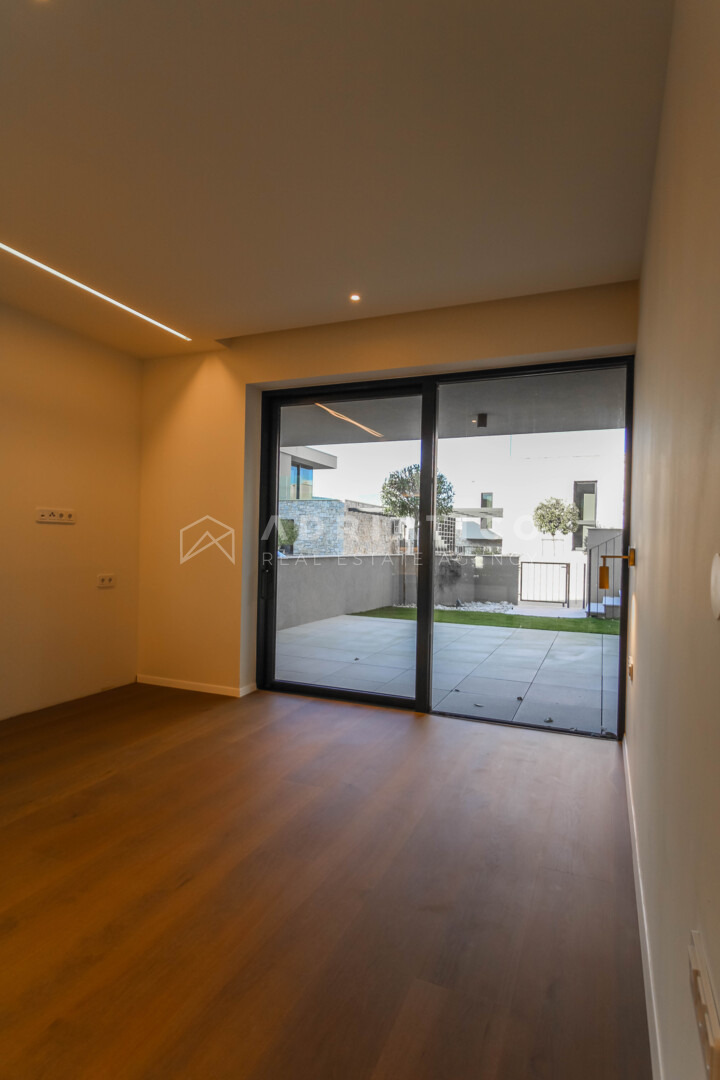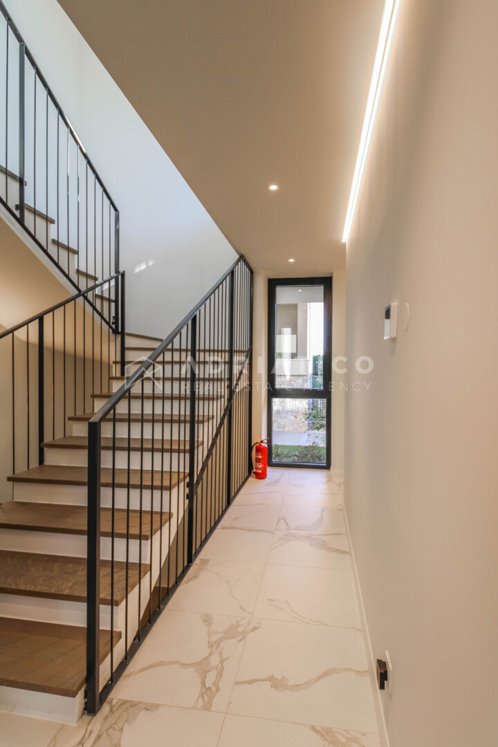 Unutrašnjost obuhvaća tri prostrane spavaće sobe, tri uređene kupaonice te dodatni gostinjski toalet. Raspored prostorija osigurava privatnost svakom članu kućanstva, dok je dnevni boravak koncipiran kao centralno mjesto okupljanja s izravnom vizualnom komunikacijom prema moru i vanjskom prostoru. Visoka razina opreme i suvremeni standardi gradnje zadovoljit će i najzahtjevnije kupce koji traže luksuznu nekretninu u Istri.