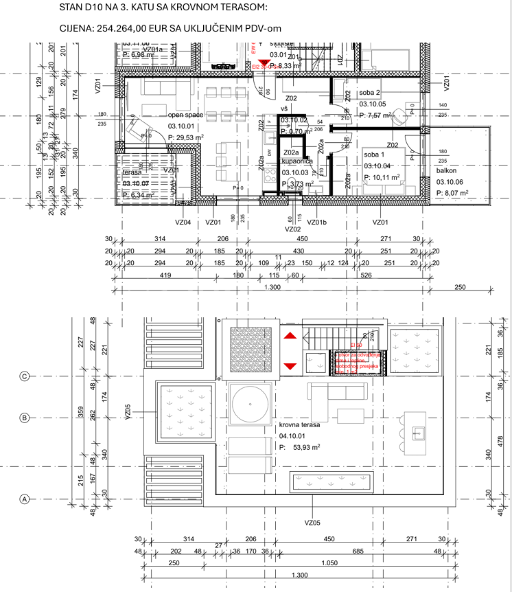 Posebna prednost ove nekretnine je velika privatna krovna terasa, idealna za opuštanje, druženja, sunčanje ili uređenje lounge zone s pogledom na okolinu. Ovakav dodatni vanjski prostor pruža osjećaj privatnosti i značajno povećava kvalitetu boravka u stanu.