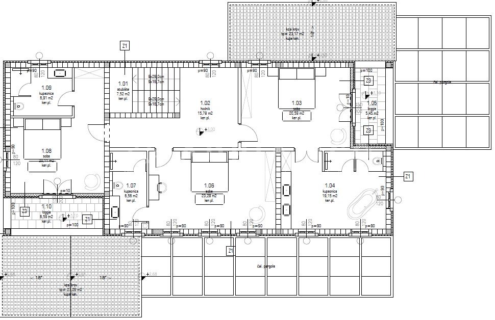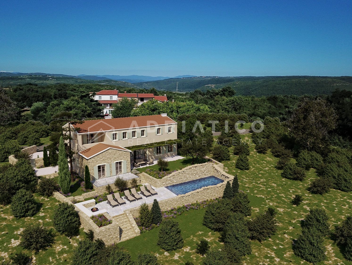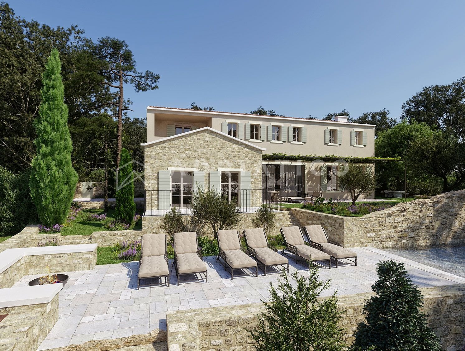 But the real gems are outside – everyone’s favorite summer kitchen, two terraces, a sun deck and a completely unique swimming pool. The pool was built on the foundations of the ruins of an old stone house, which makes it seem like it is part of nature, completely immersed in the environment.