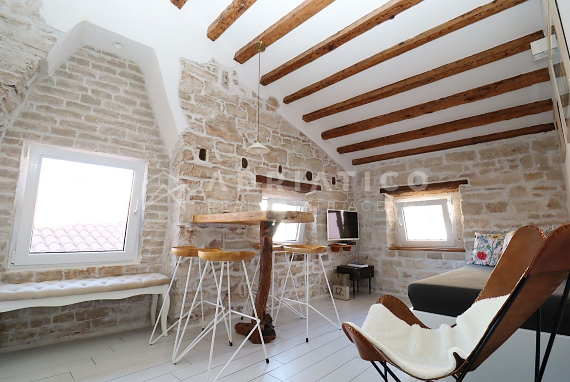 This unique apartment in Rovinj is located on the third floor of a residential building in the very center of the city, yet in a quiet street away from noise and crowds. The apartment consists of two separate units, making it highly attractive as an investment or for tourist rental.
