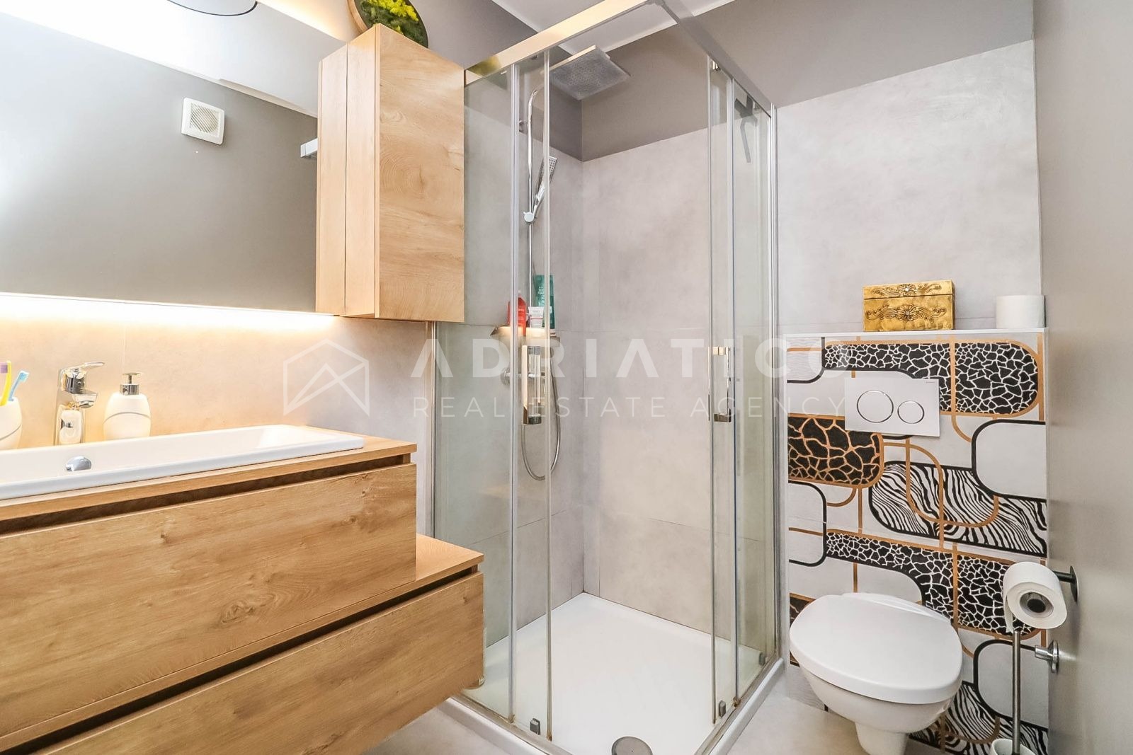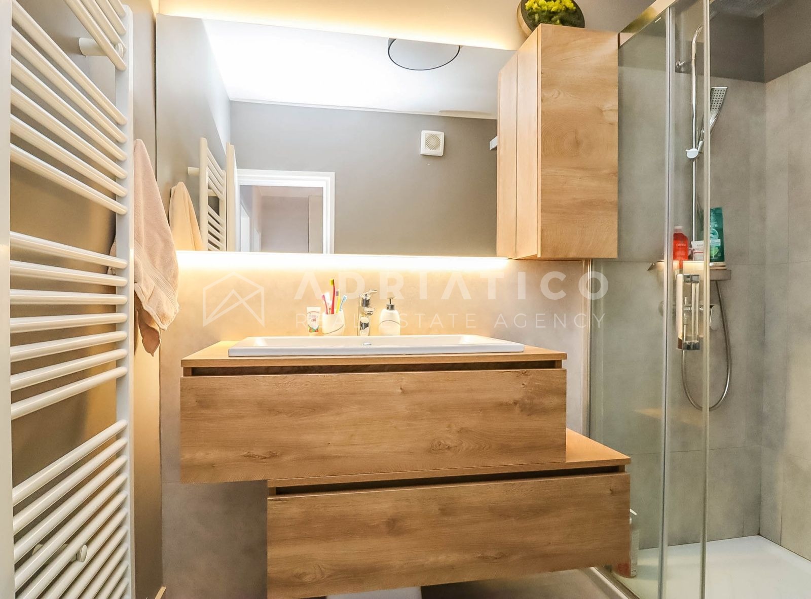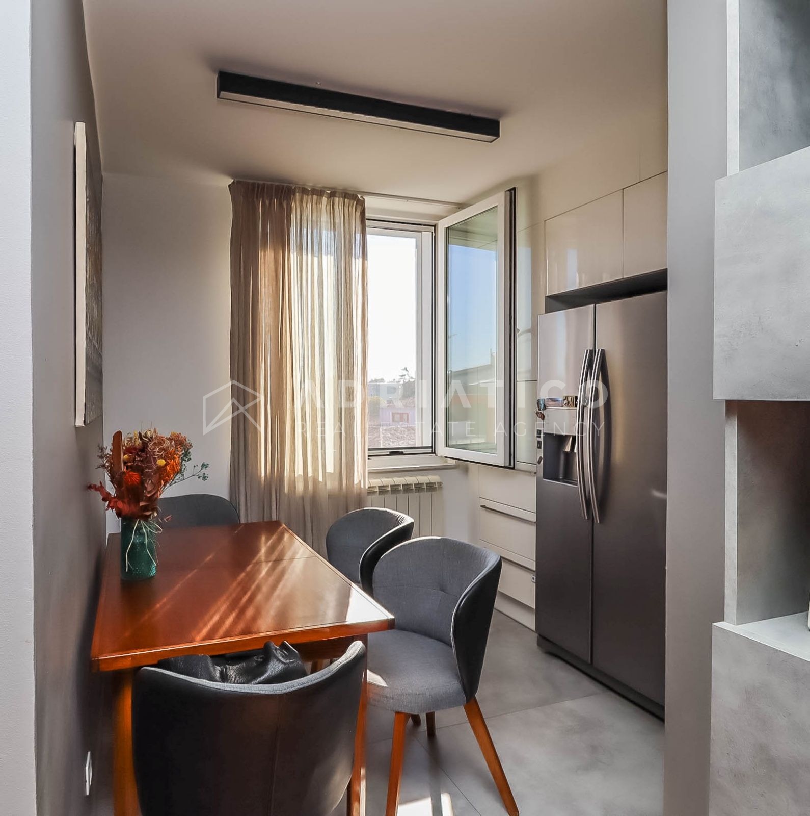 For sale: a beautifully designed, fully renovated and furnished family apartment of 78.38 m², located on the 4th floor of a residential building in Rovinj.