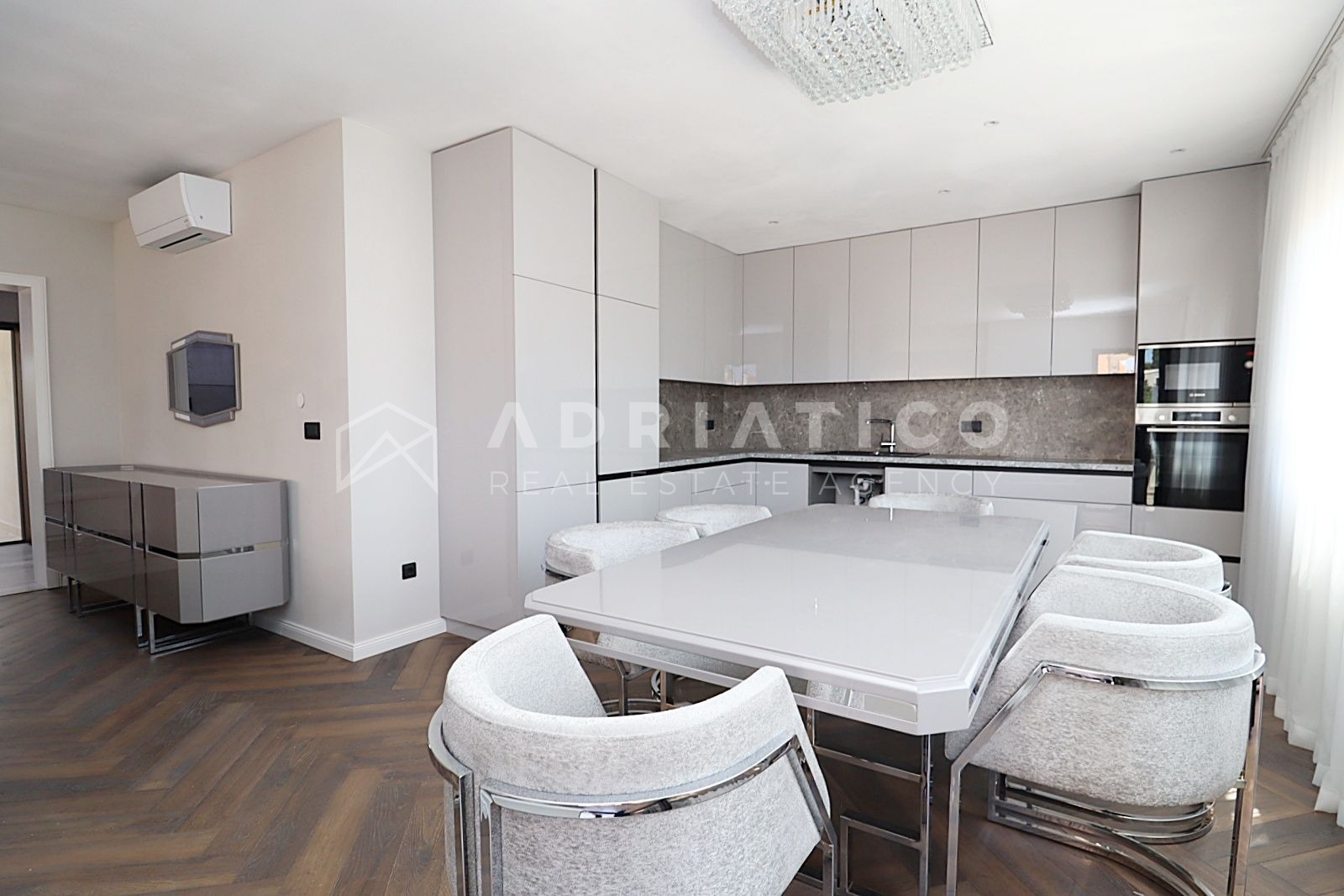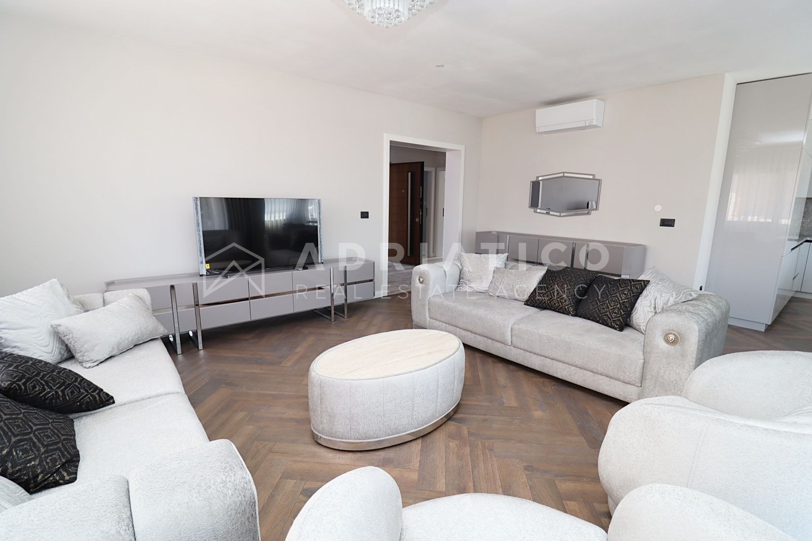 A spacious three-bedroom apartment is for sale, located on the first floor of a smaller residential building in Rovinj. This modern new build is in a prime location, just steps away from beaches, shops, restaurants, and cafés.